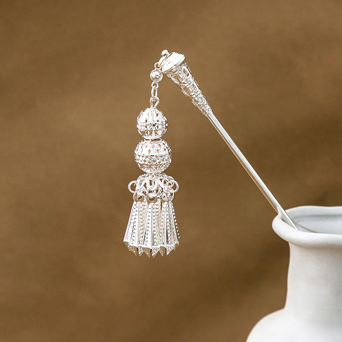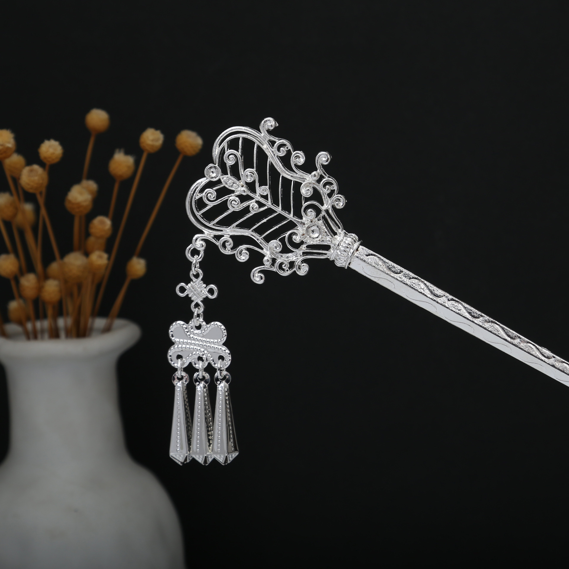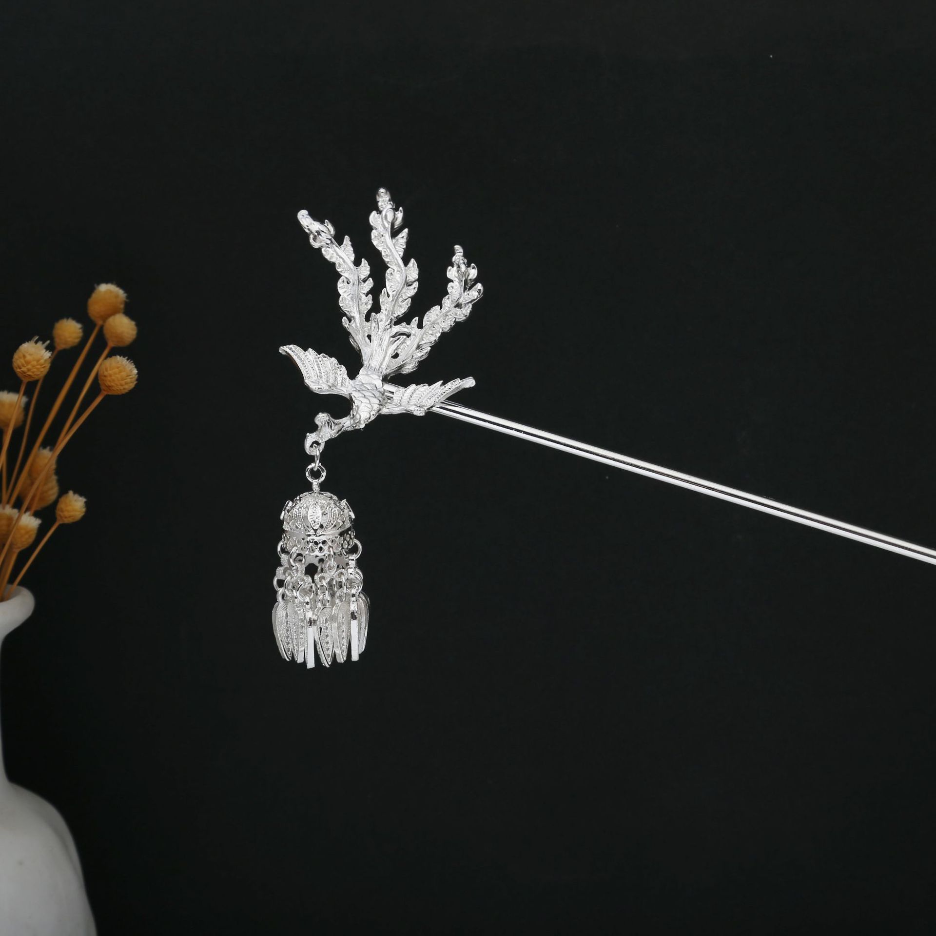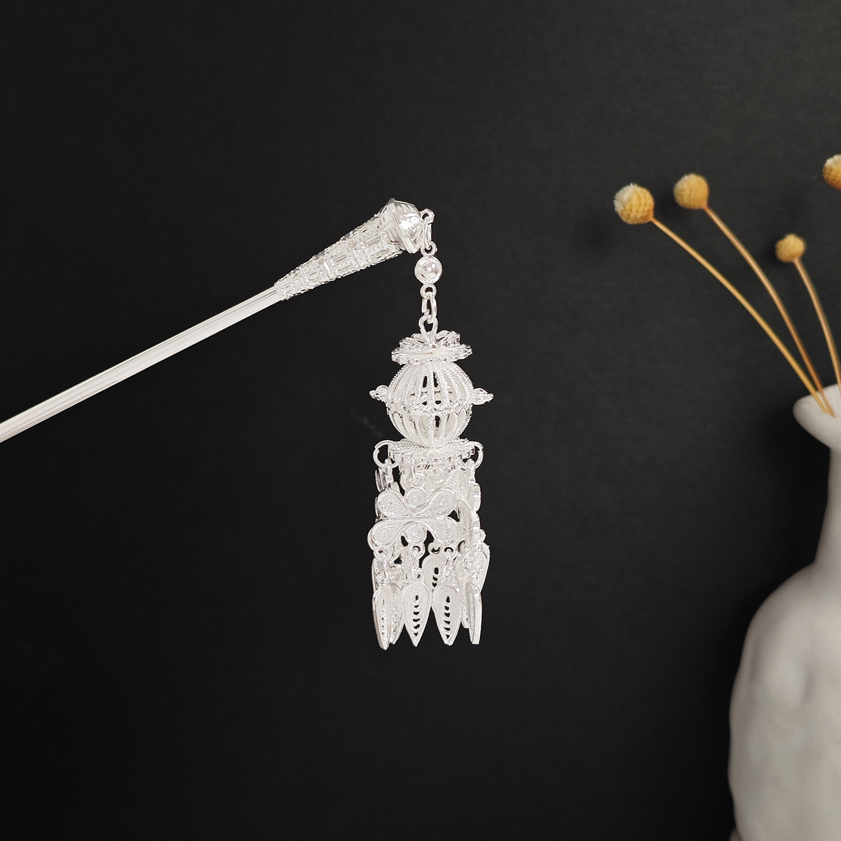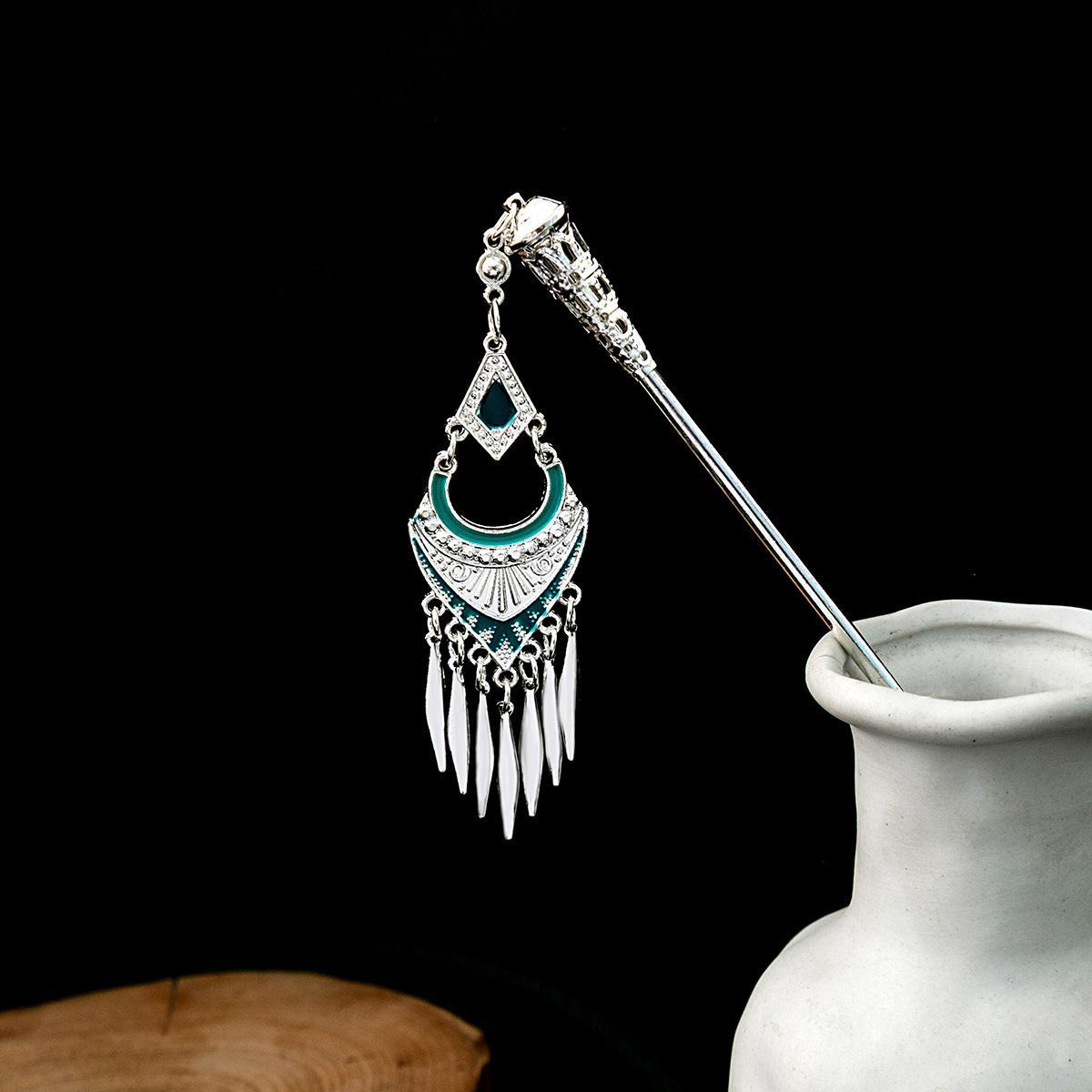 New Chinese-style Miao Silver Geometric Hollow Tassel Hairpin National Tide Drop-shaped Oil Drop Hair Hairpin Hanfu Disc Accessories for Women