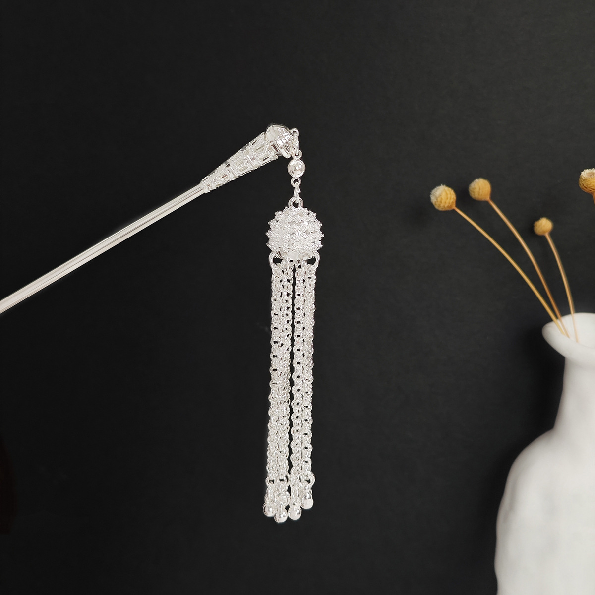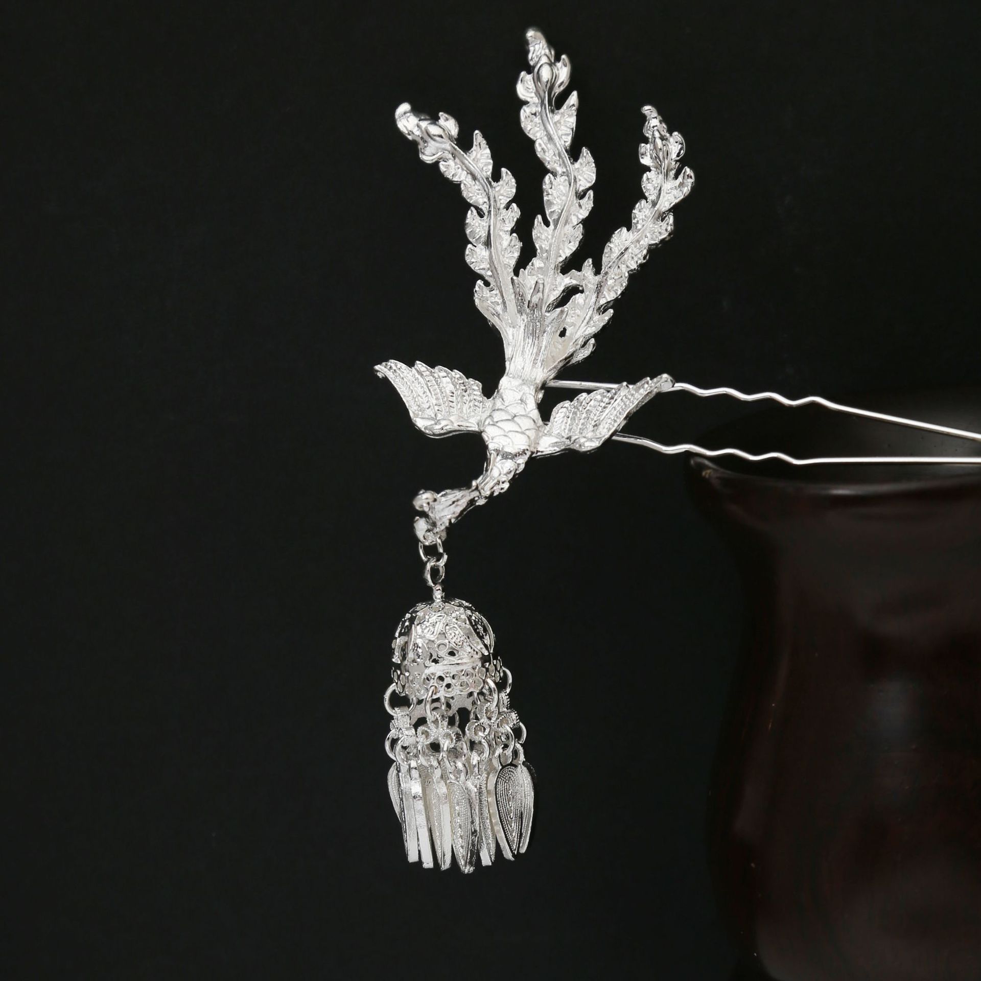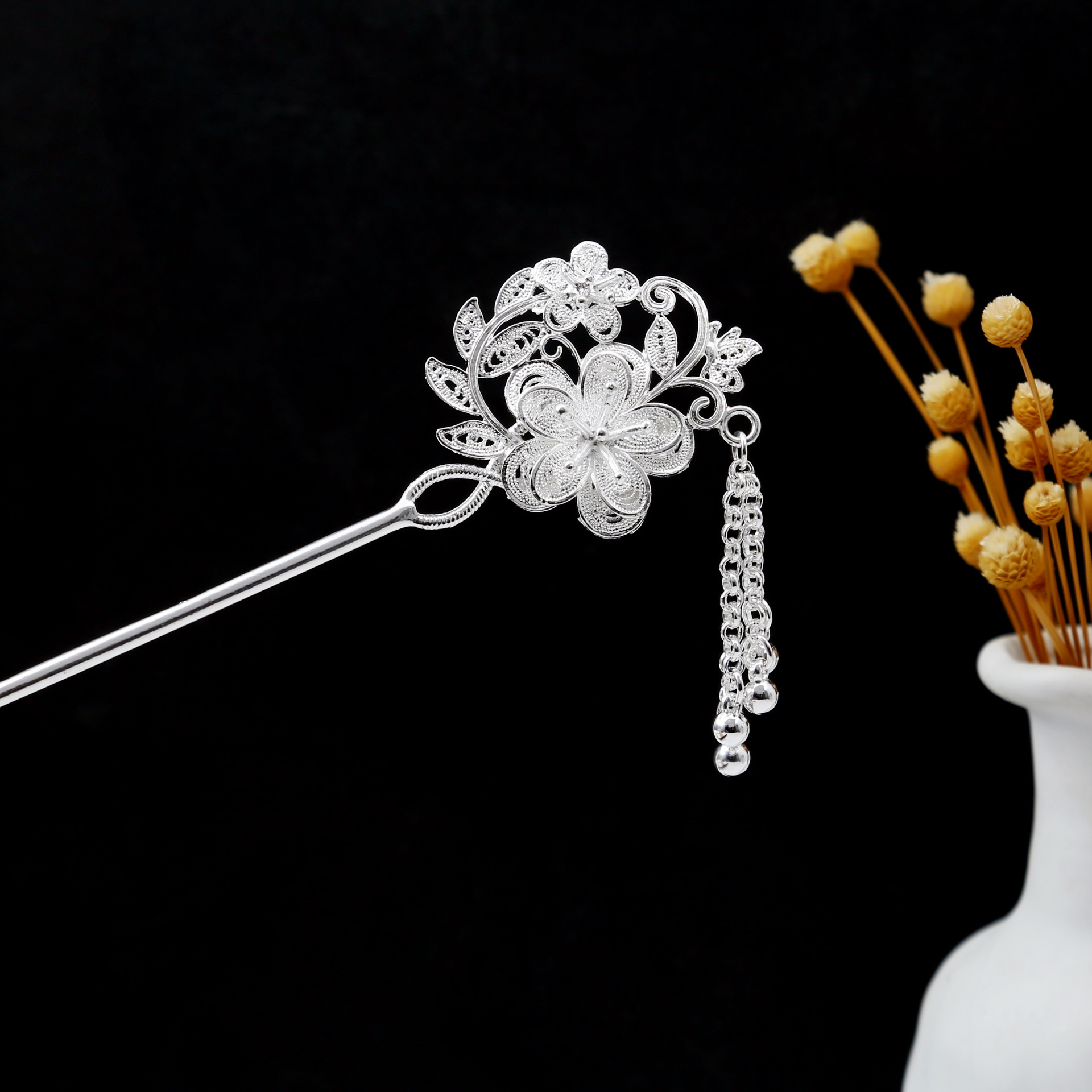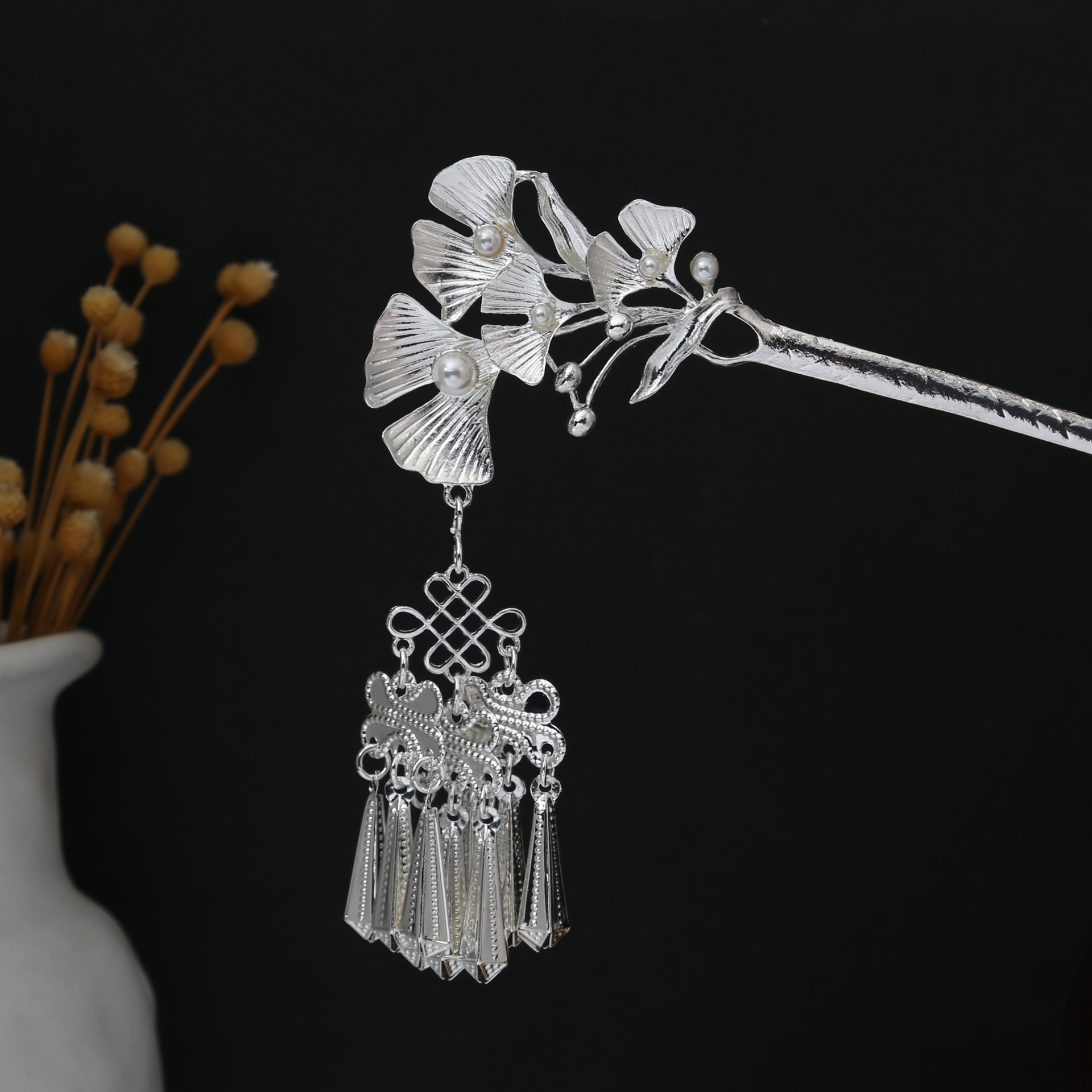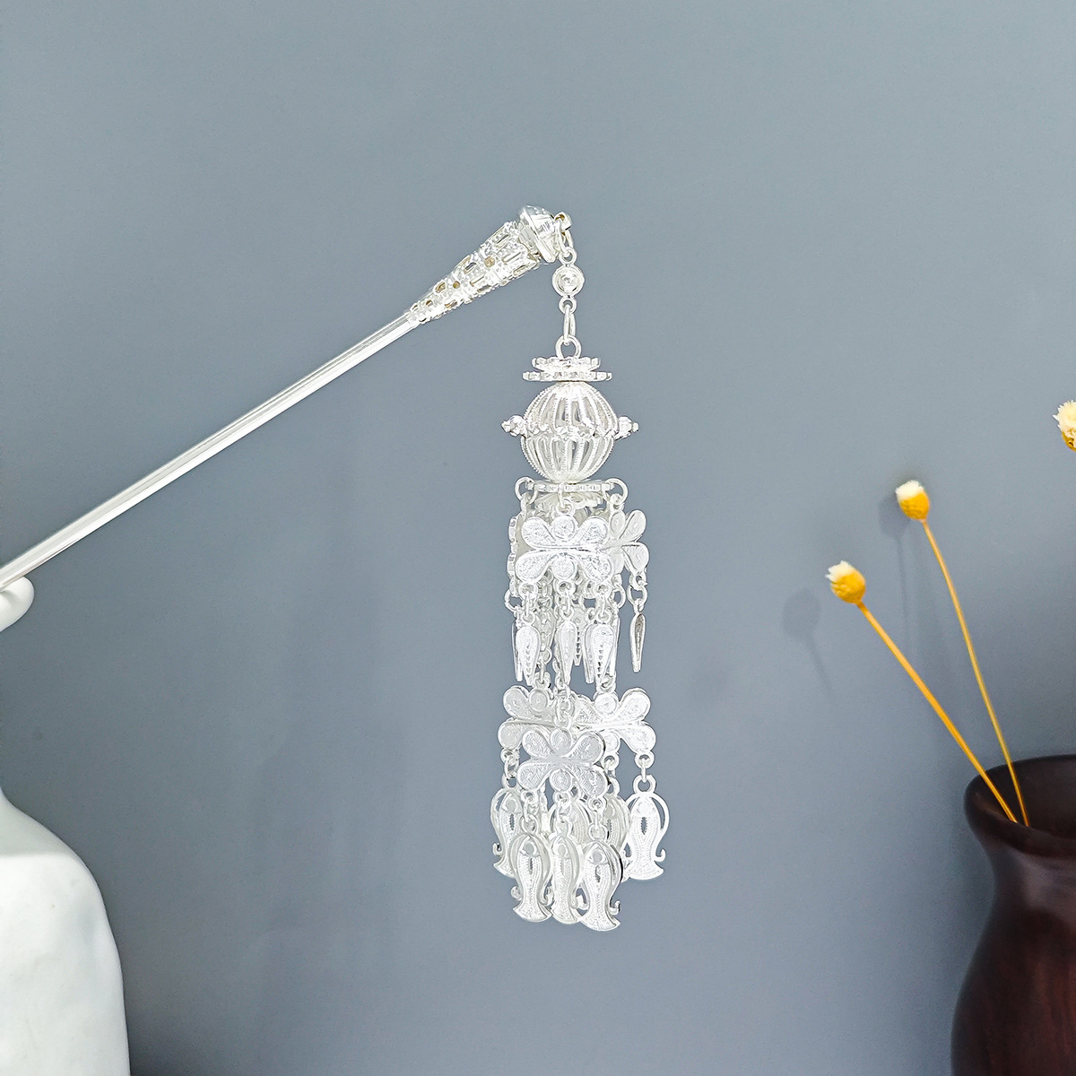 New Chinese-style Miao Silver Geometric Hollow Tassel Hairpin National Tide Drop-shaped Oil Drop Hair Hairpin Hanfu Disc Accessories for Women