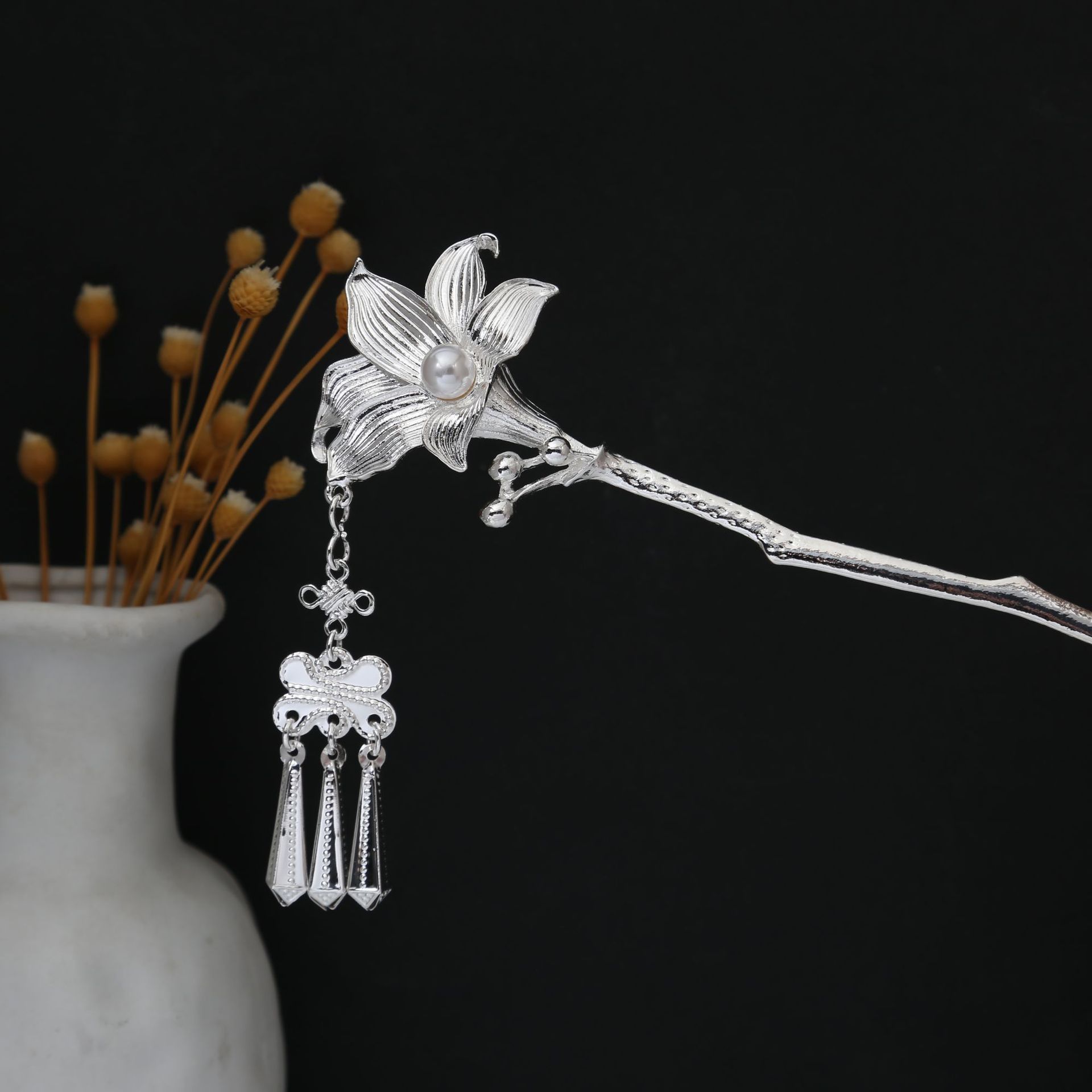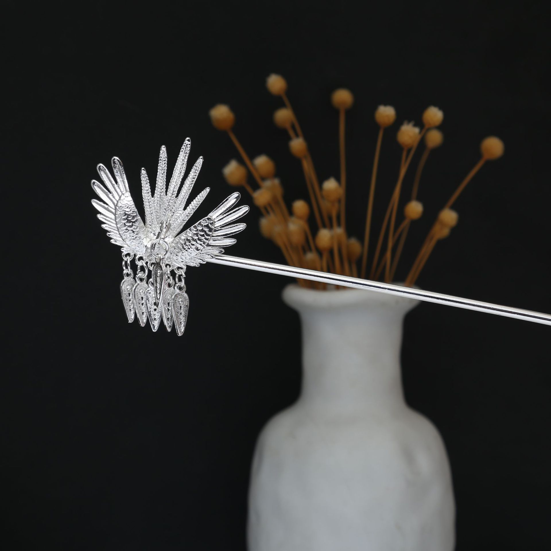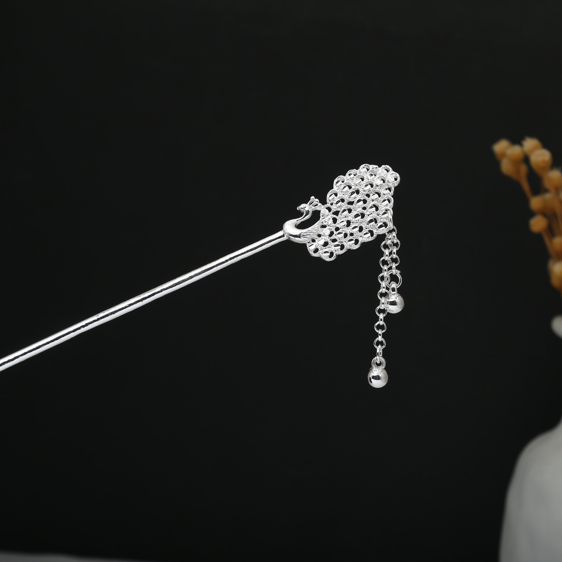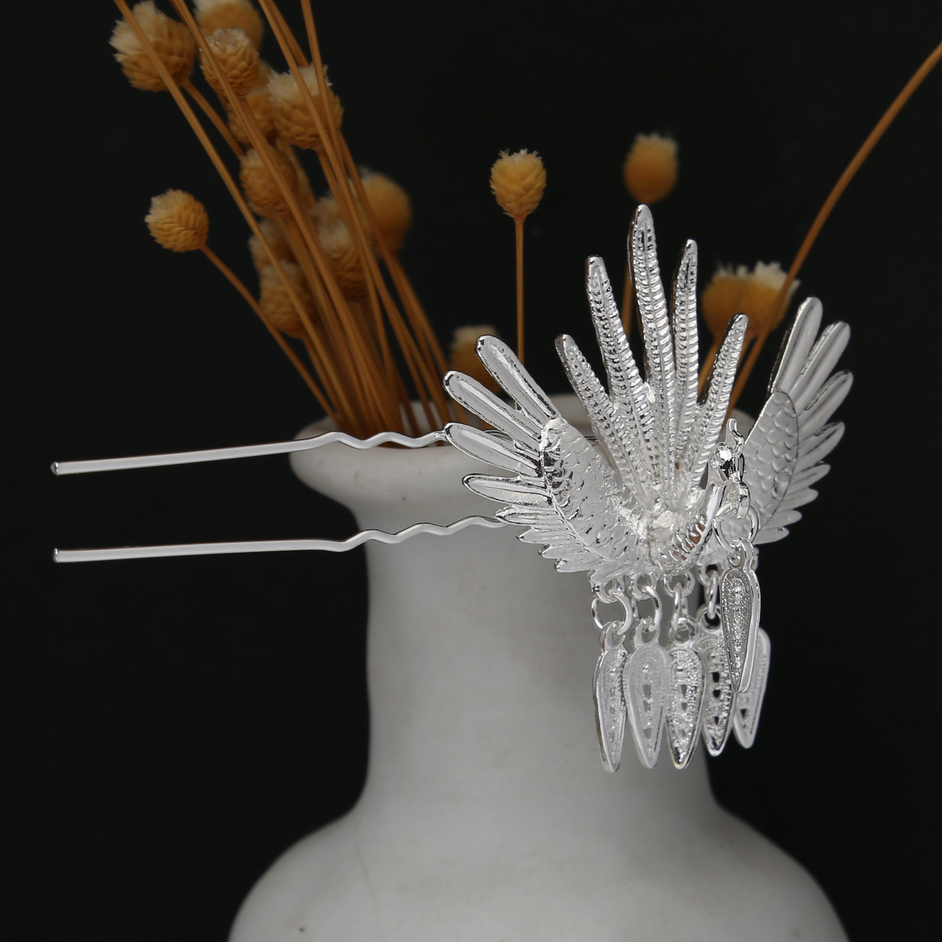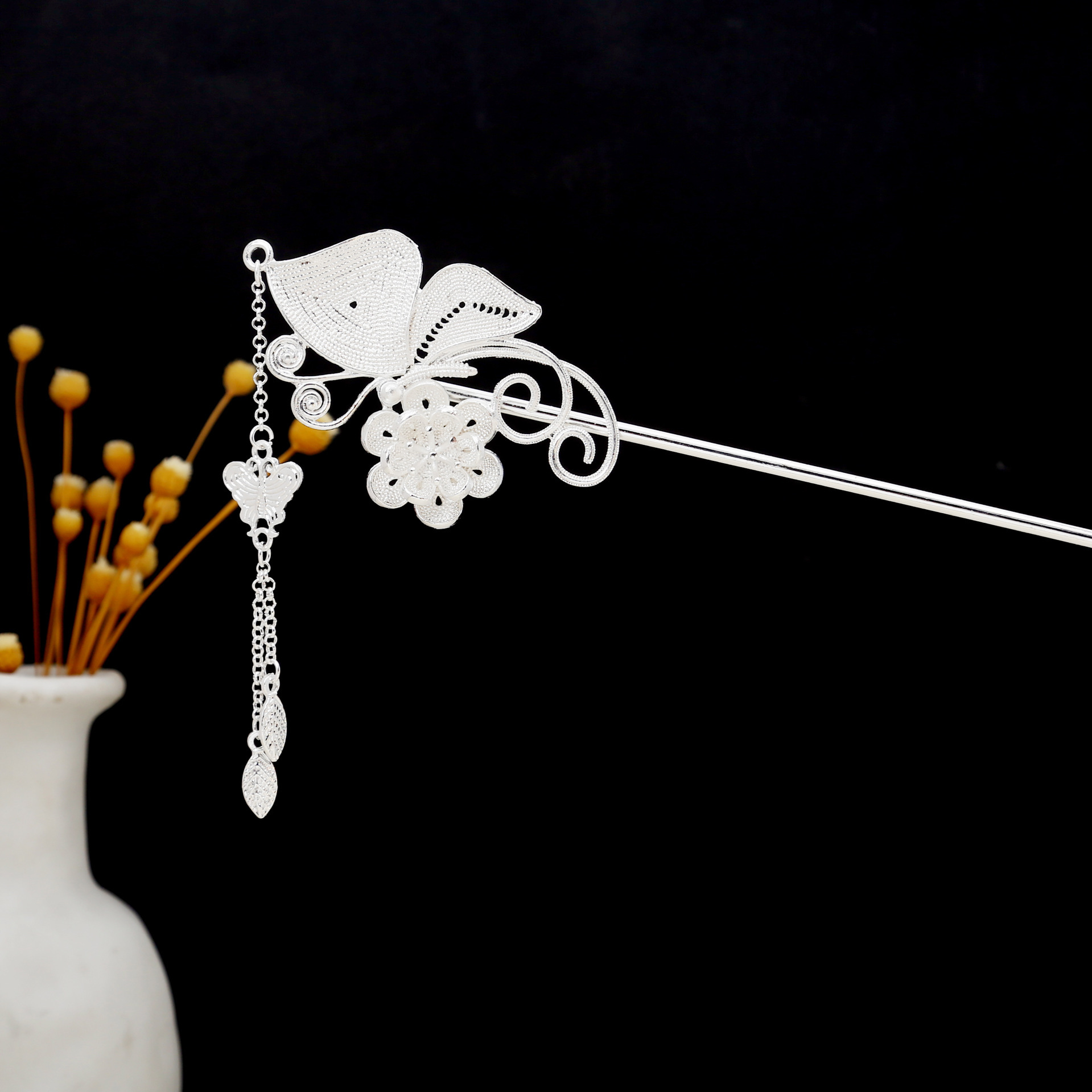 New Chinese-style Miao Silver Geometric Hollow Tassel Hairpin National Tide Drop-shaped Oil Drop Hair Hairpin Hanfu Disc Accessories for Women