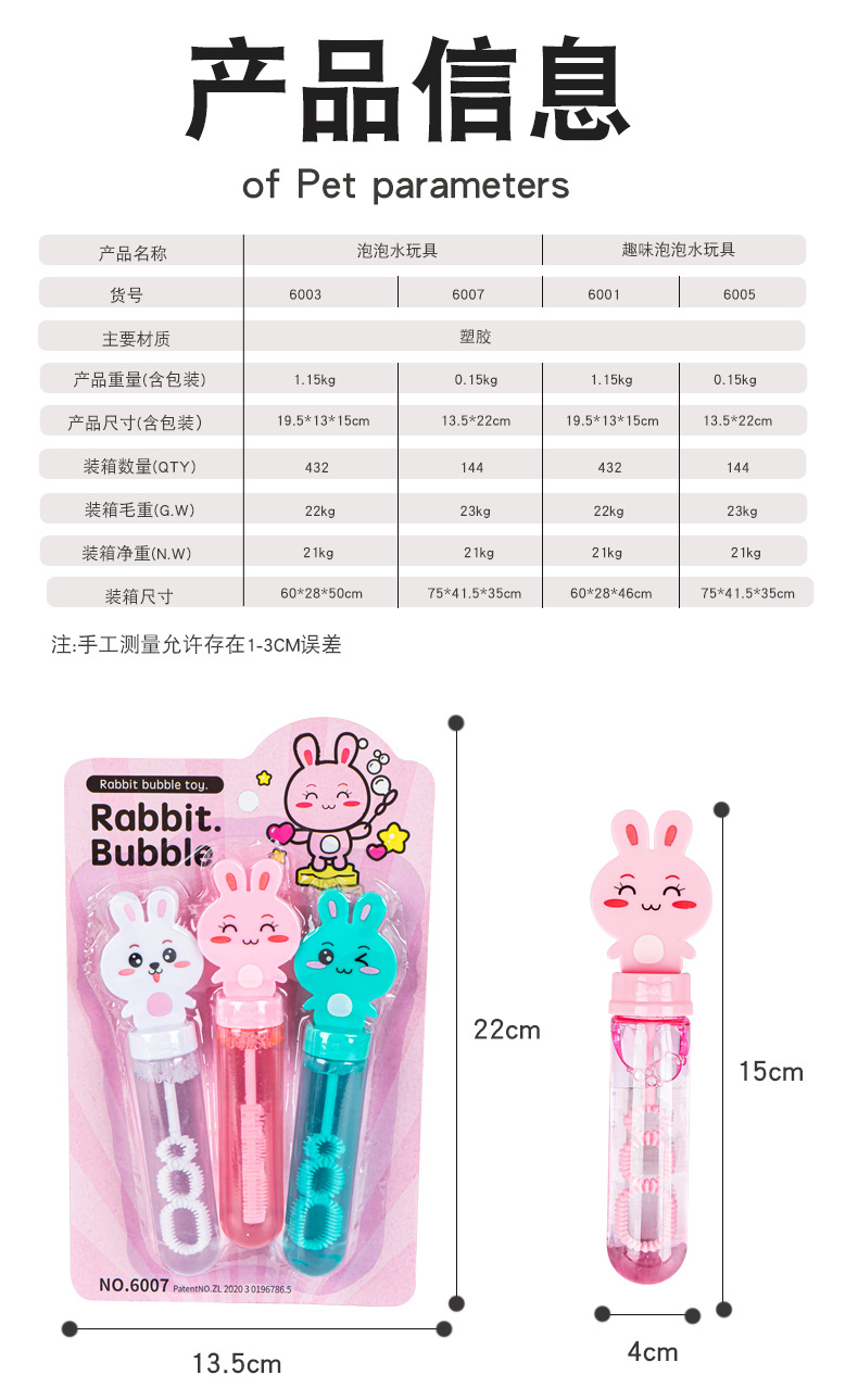 | Color | 8061 White Rabbit Bubble Stick | Color | 8009 black and white rabbit bubble stick [random 1]] |