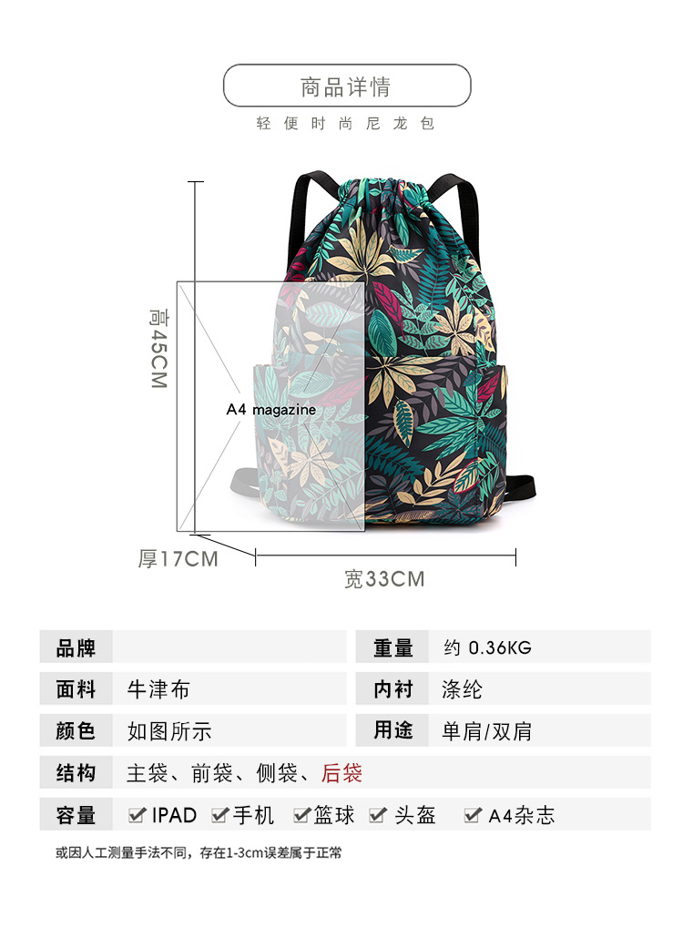 Customized Travel Bag Drawstring Backpack for Women, Simple Drawstring Storage Bag, Large Capacity Sports and Fitness Bag, Spring Bag