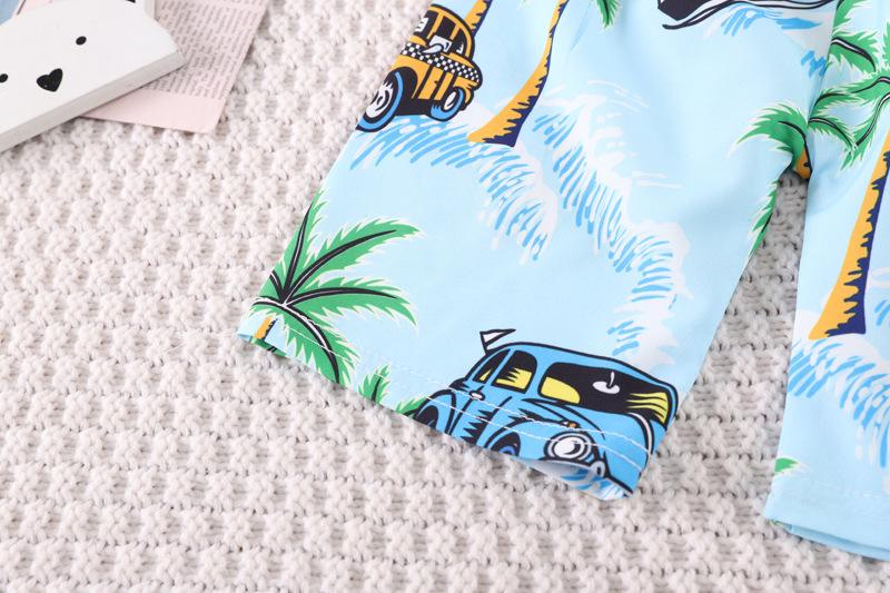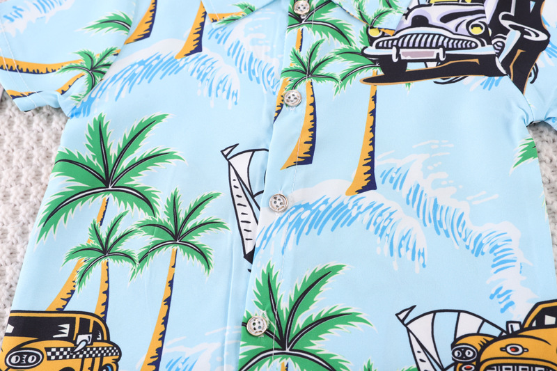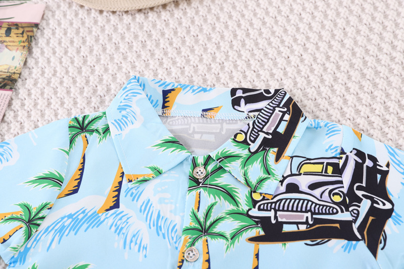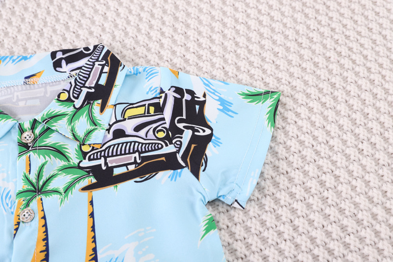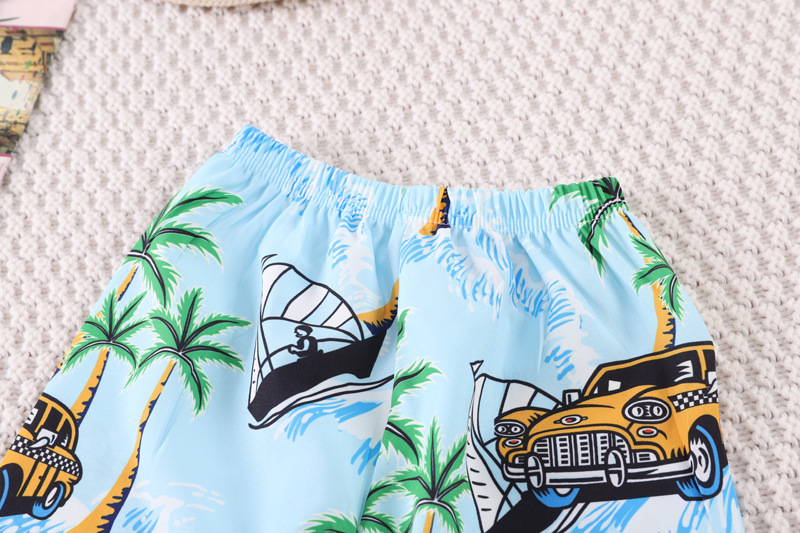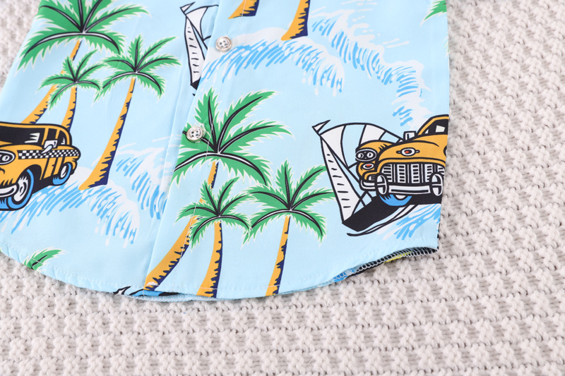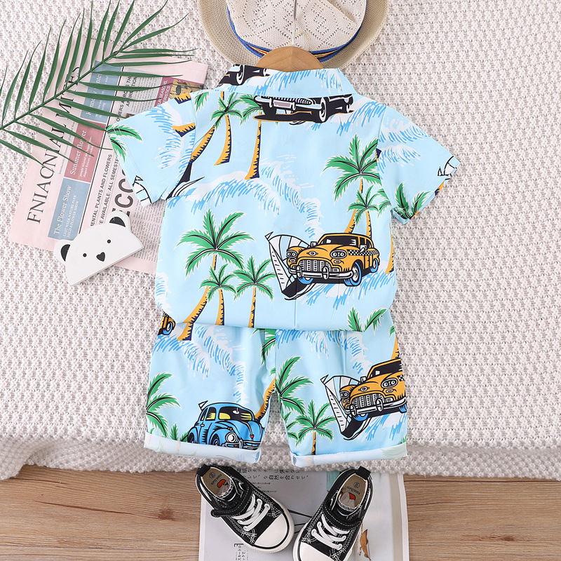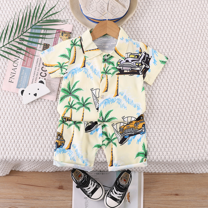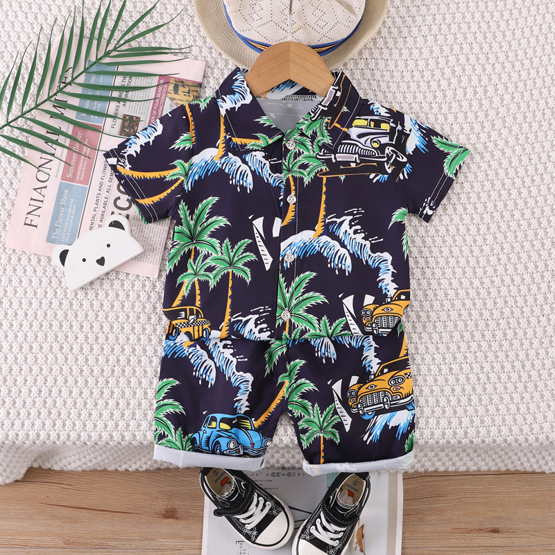 Short-Sleeved Suit Hawaiian Style Beachwear 0-4 Years Old Boys' Shirt and Shorts Two-Piece Set with Cute Cartoon Pattern
