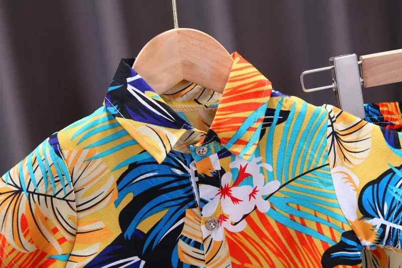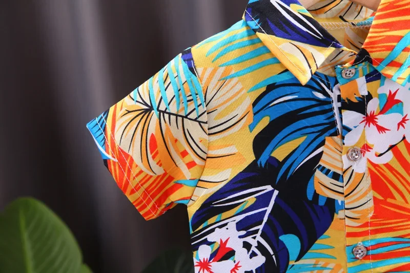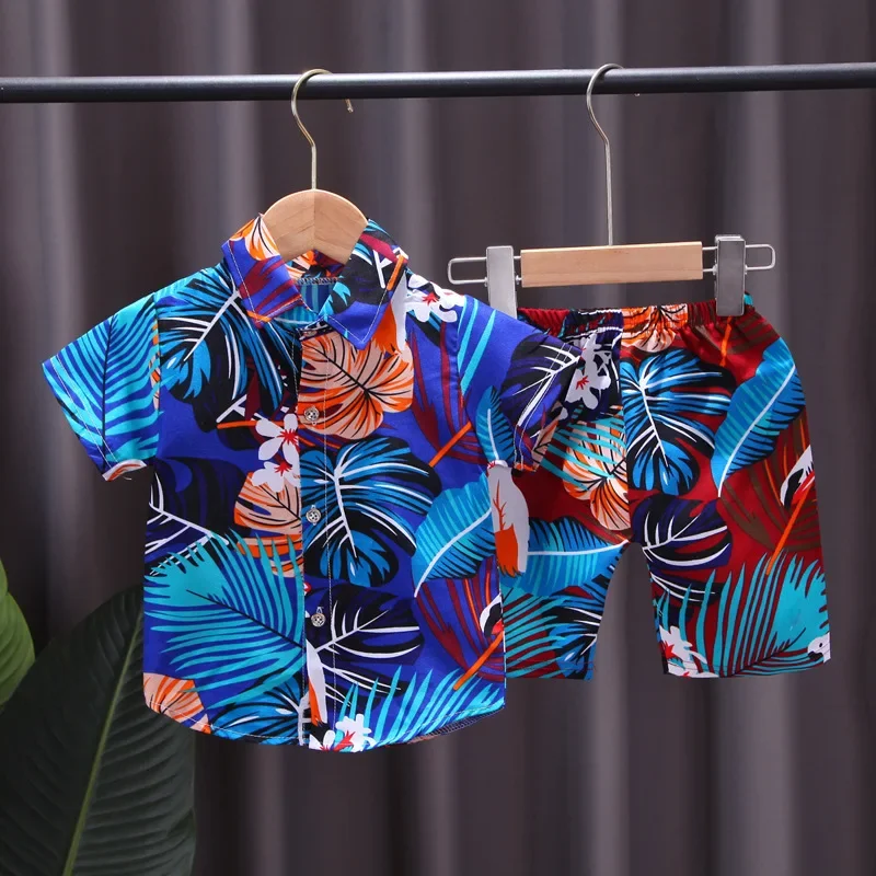 Summer Short-Sleeved Suit for Kidsren Aged 0-4 Years Old, Boys' Printed Shirt 2-Piece Set, Southeast Asian Style Kidsren's Clothing for Boys