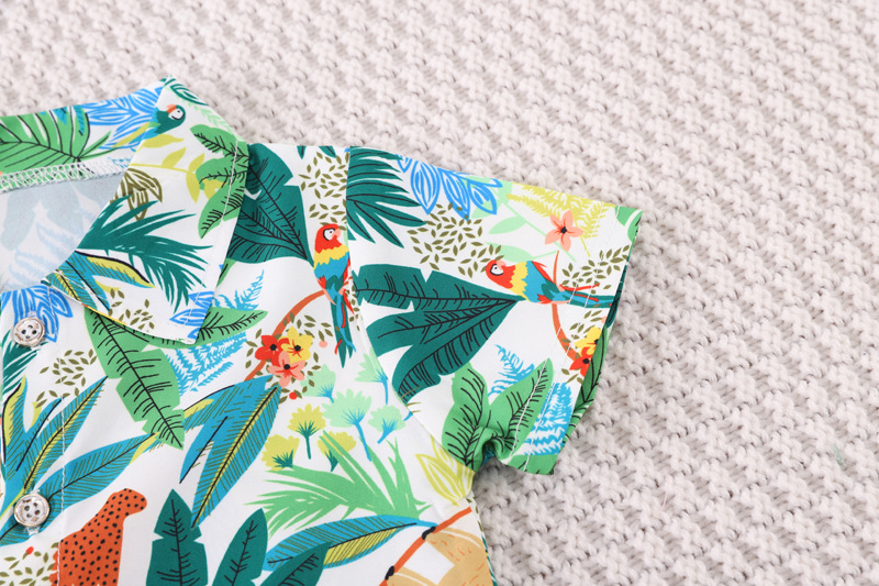 Cross-Border Wholesale Children's Clothing Children's Hawaiian Style Floral Shirt 0-4 Years Old Boys Full Printed Coconut Tree Short-Sleeved 2-Piece Set