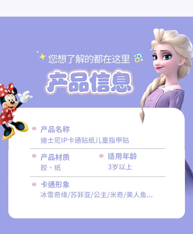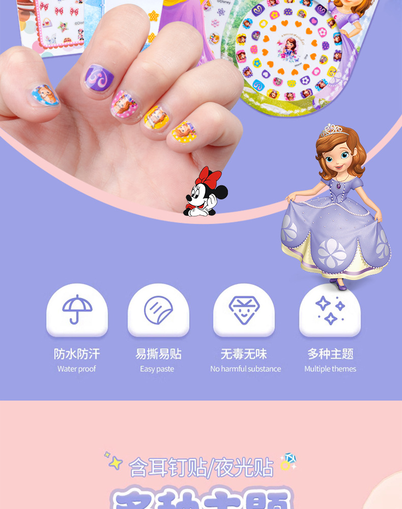 | 3C Configuration Category | Other toys under 14 years old | Color | A suit Mixed 5 Pack (Nail Stickers Ear Stickers) Mickey Sophia Minnie |