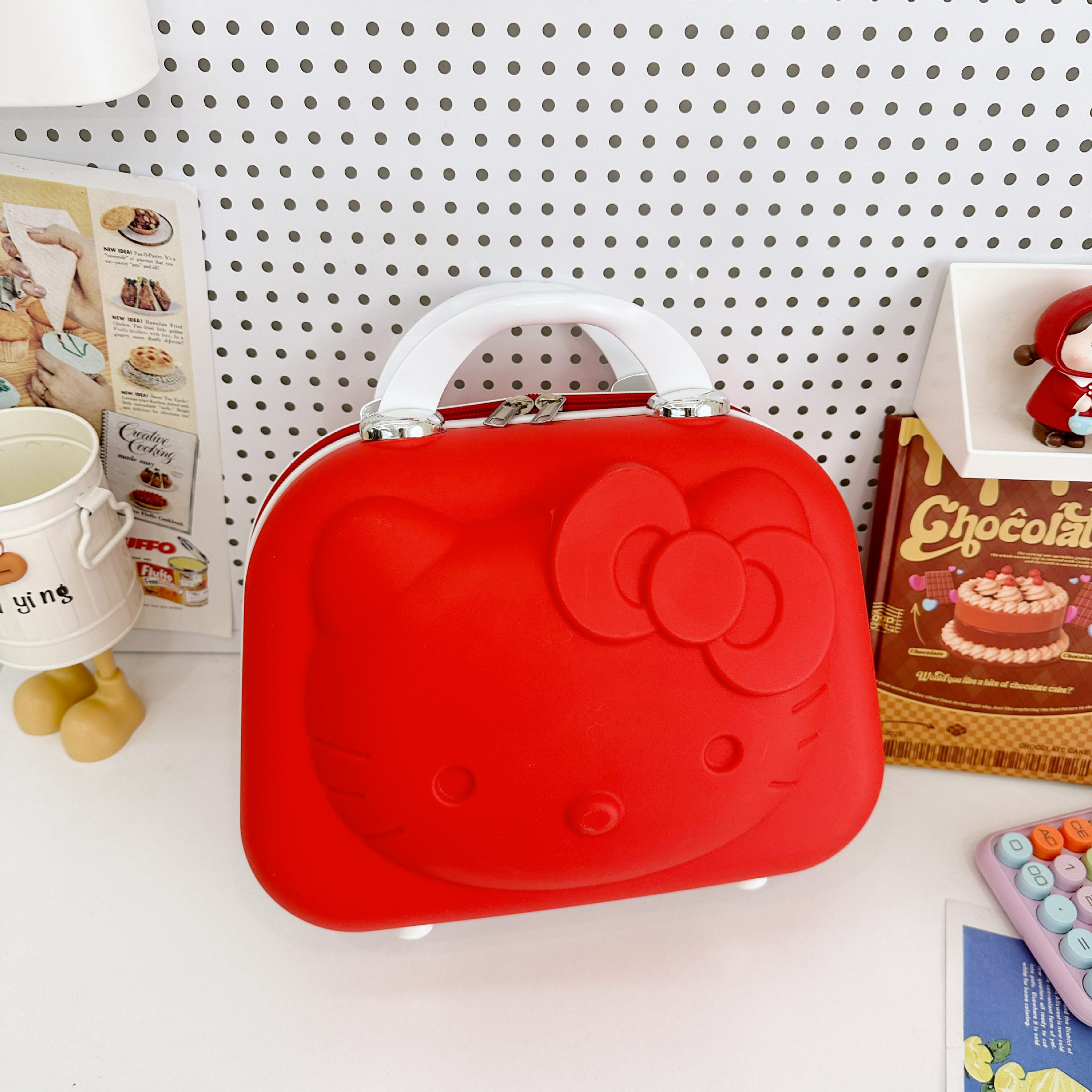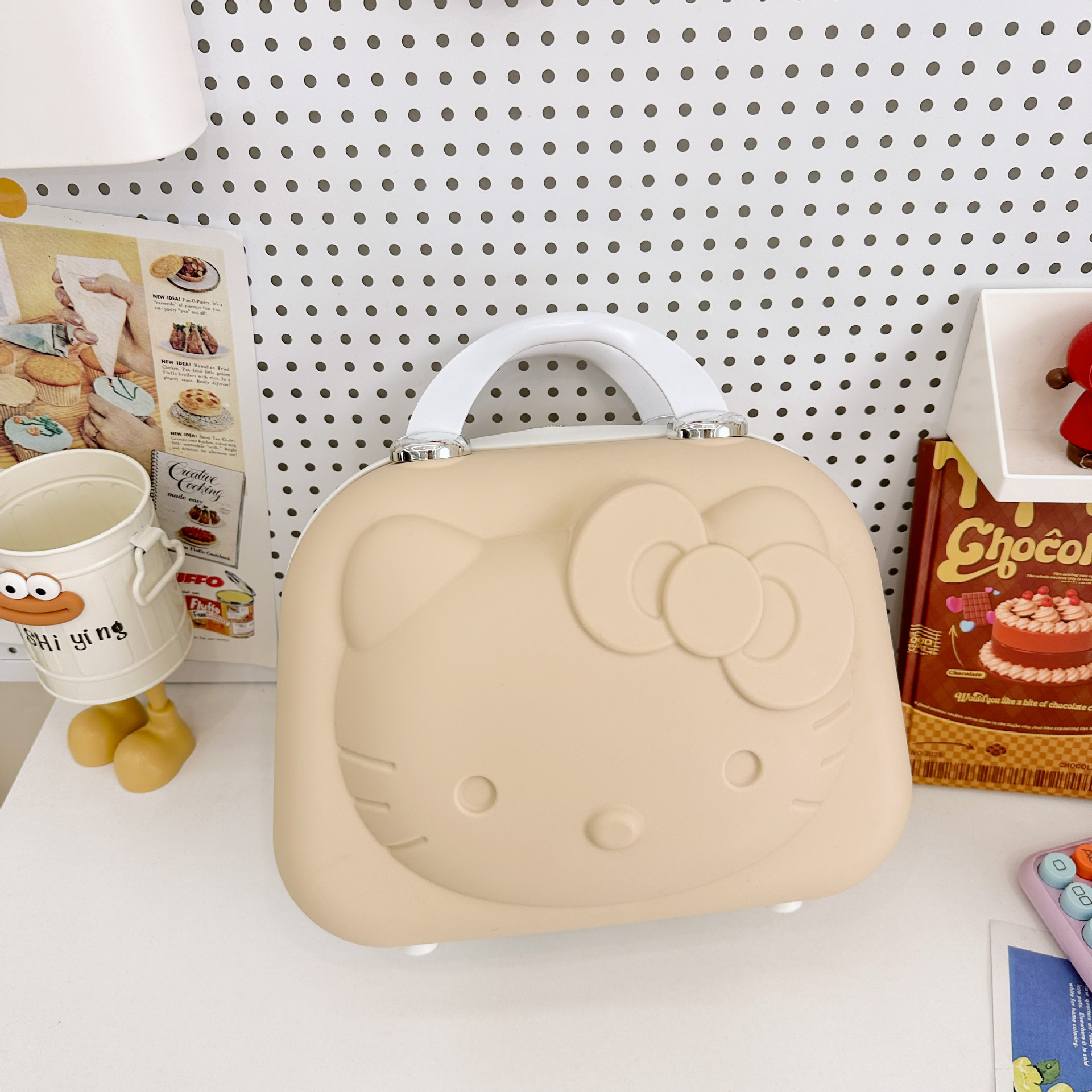 - KT Cat Pattern:The KT Cat pattern adds a playful and unique touch to this makeup box, making it a standout piece in any collection.