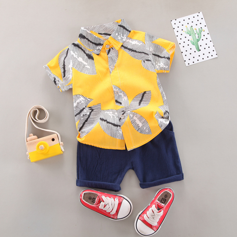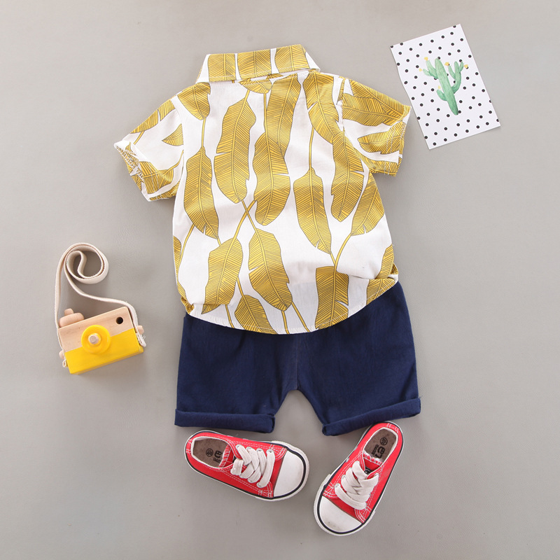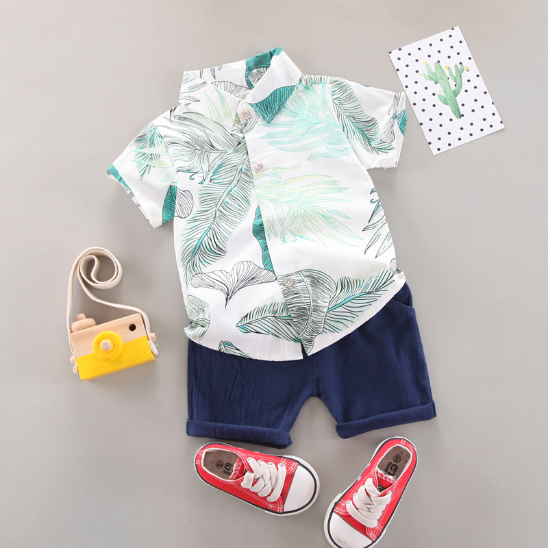 Children's Summer Clothing Set 2025 New Trendy Boys' Printed Short-Sleeved Shirt and Shorts Two-Piece Set Infant Clothing