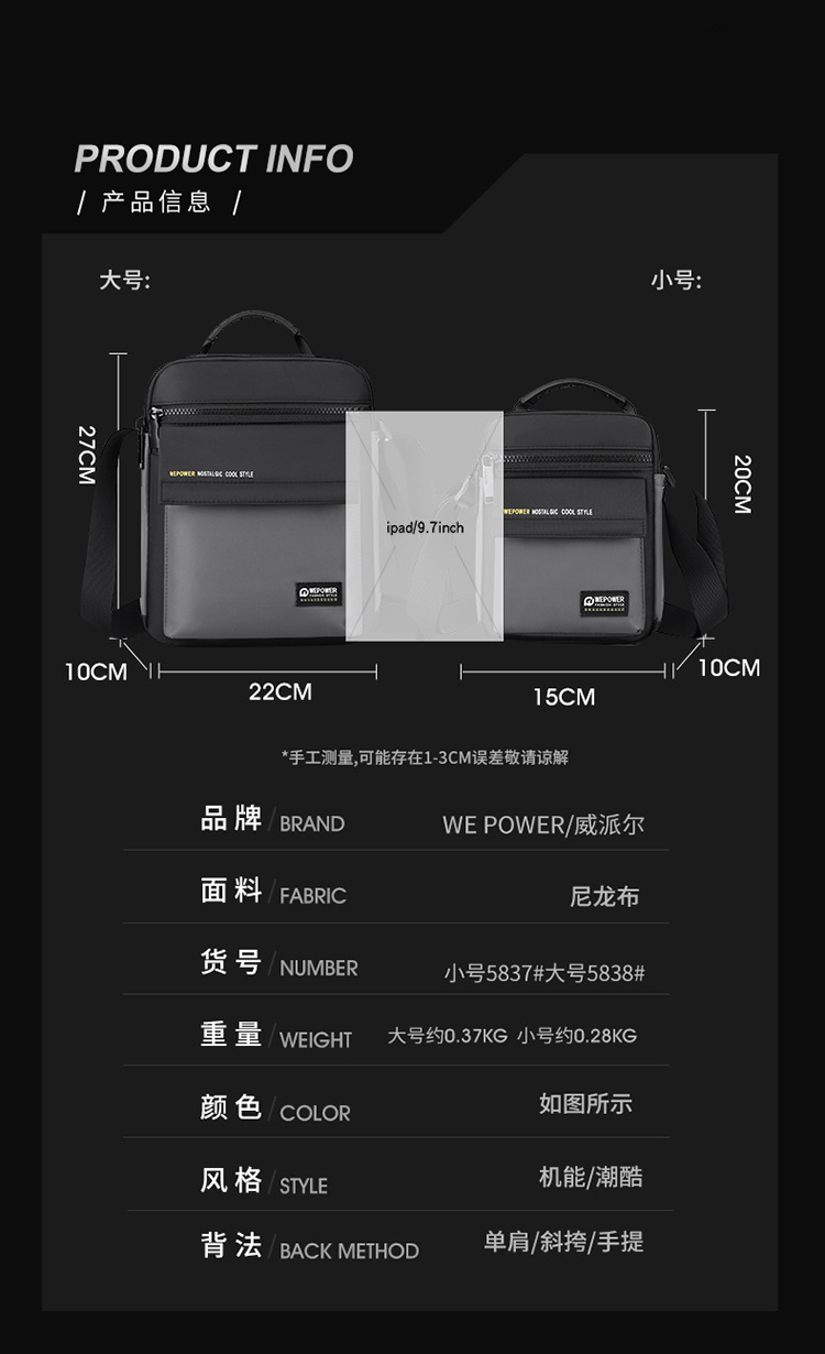 WEPOWER new men's casual simple shoulder bag portable large capacity storage messenger bag business handbag