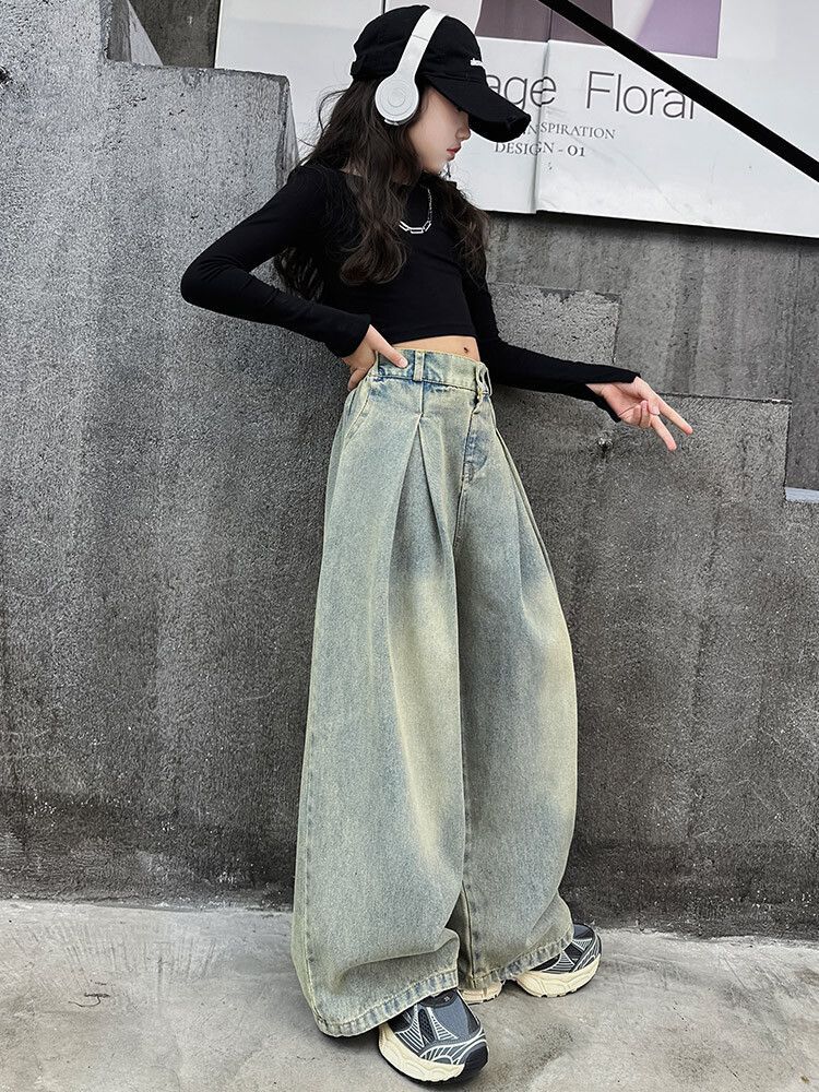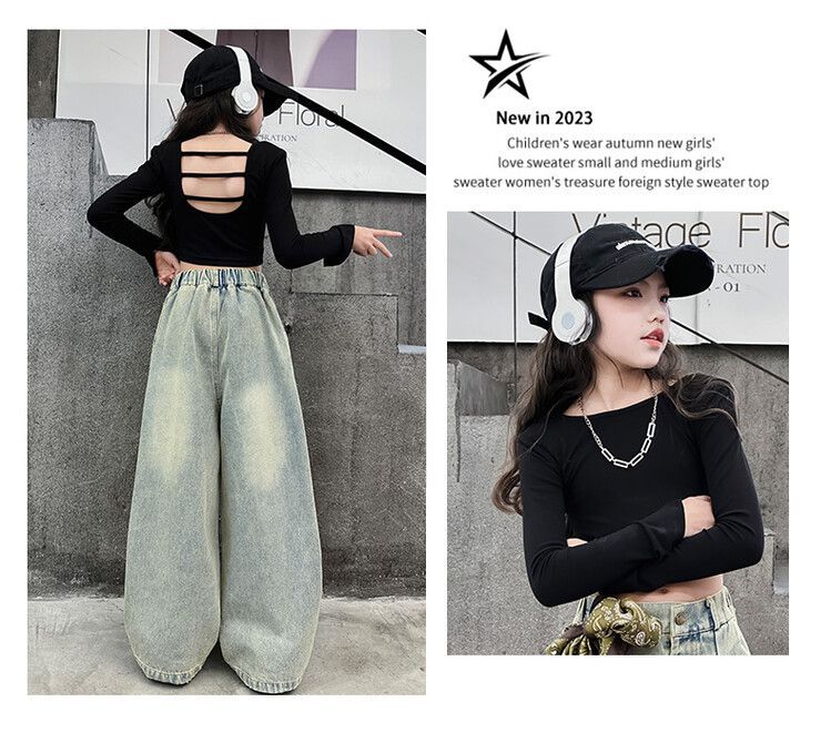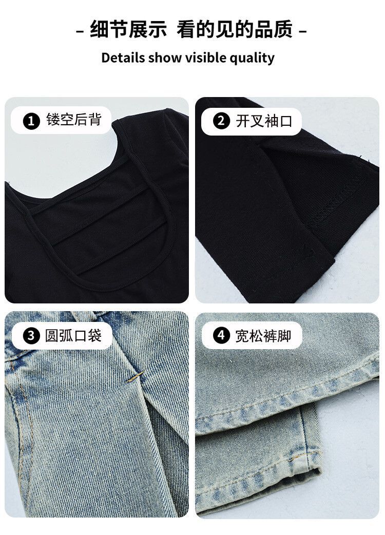 2024 Back Top Korean Style Jeans Two Piece Set Loose