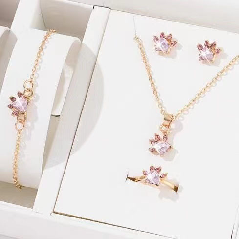 Cross-border new simple cat claw heart-shaped pet footprints necklace stud earrings bracelet ring suit women's jewelry gift