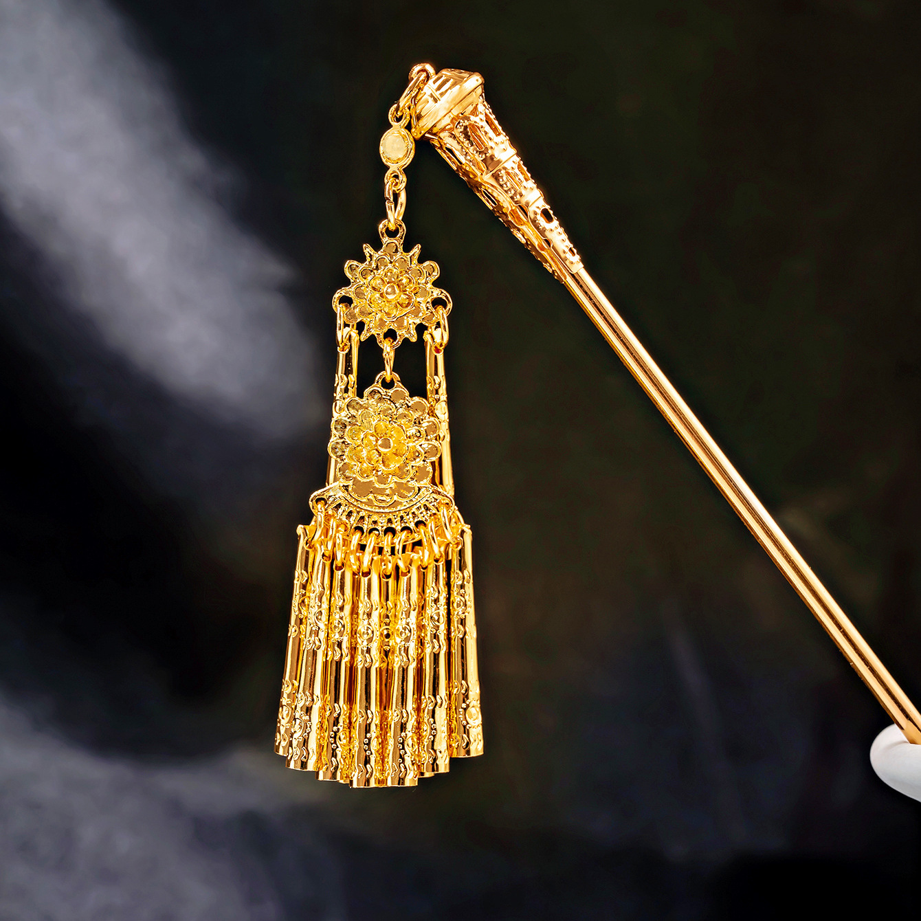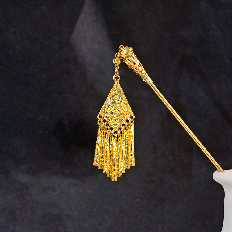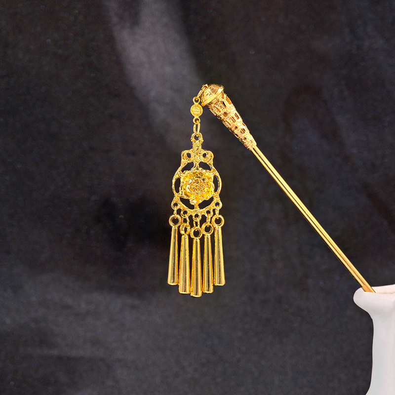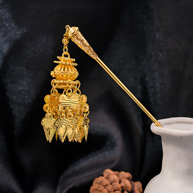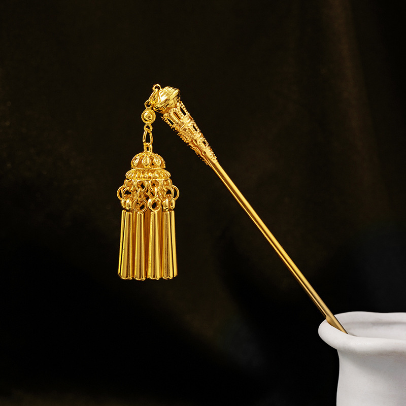 National Tide Ethnic Style Water Drop Leaves Round Hanfu Accessories Hairpin Women's New Chinese Geometric Hollow Tassel Hairpin
