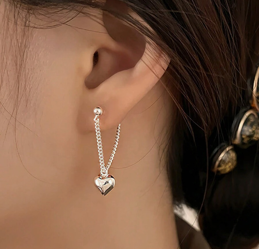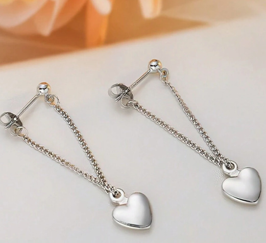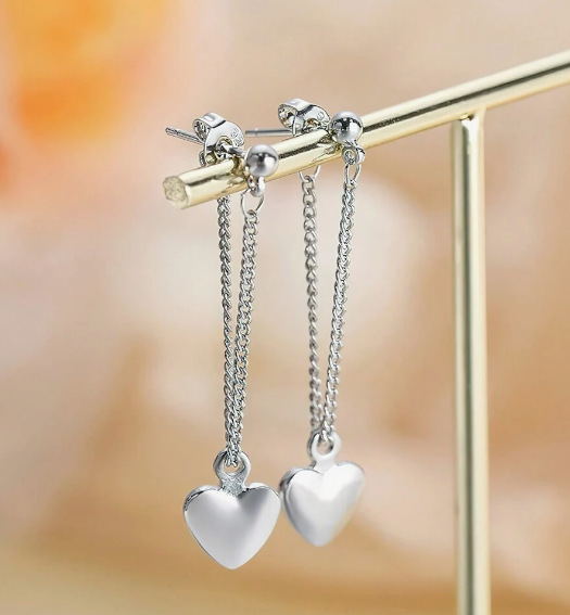 Cross-Border Hot-Selling Heart-Shaped Earrings for Women, Simple Heart-Shaped Earrings, Valentine's Day Long Tassel Earrings, Trendy Earrings, Gift