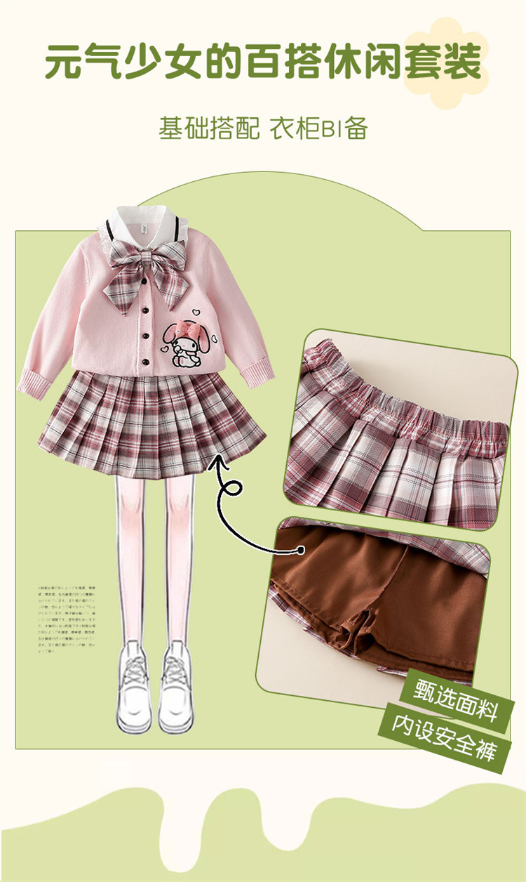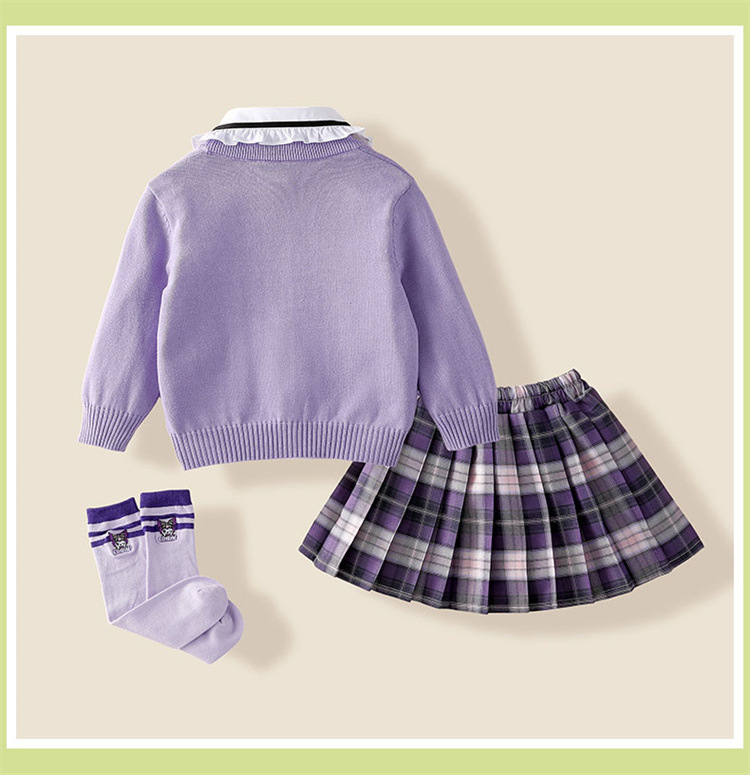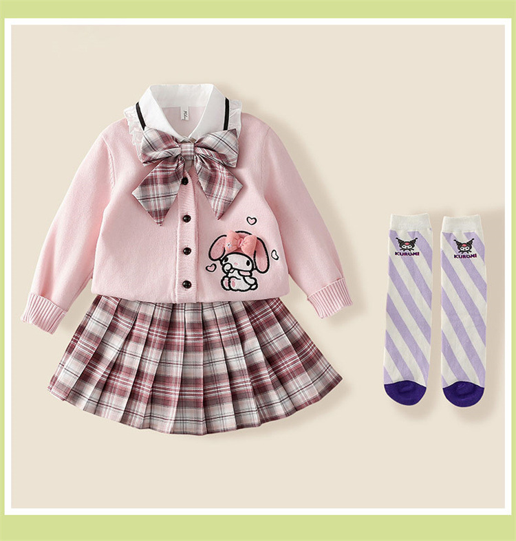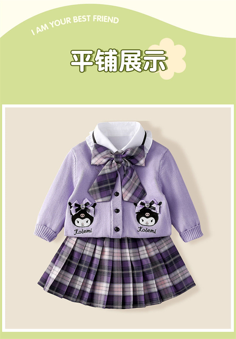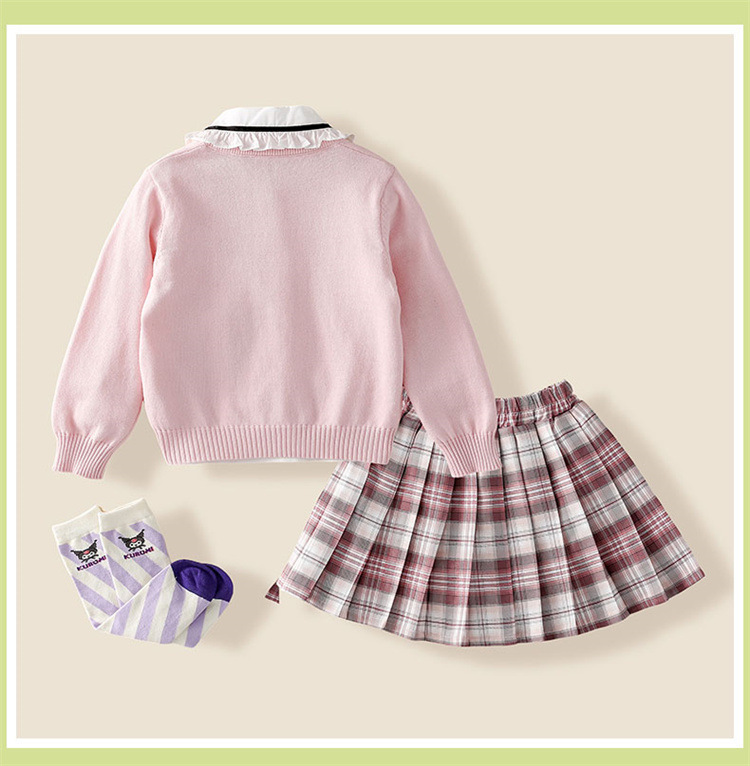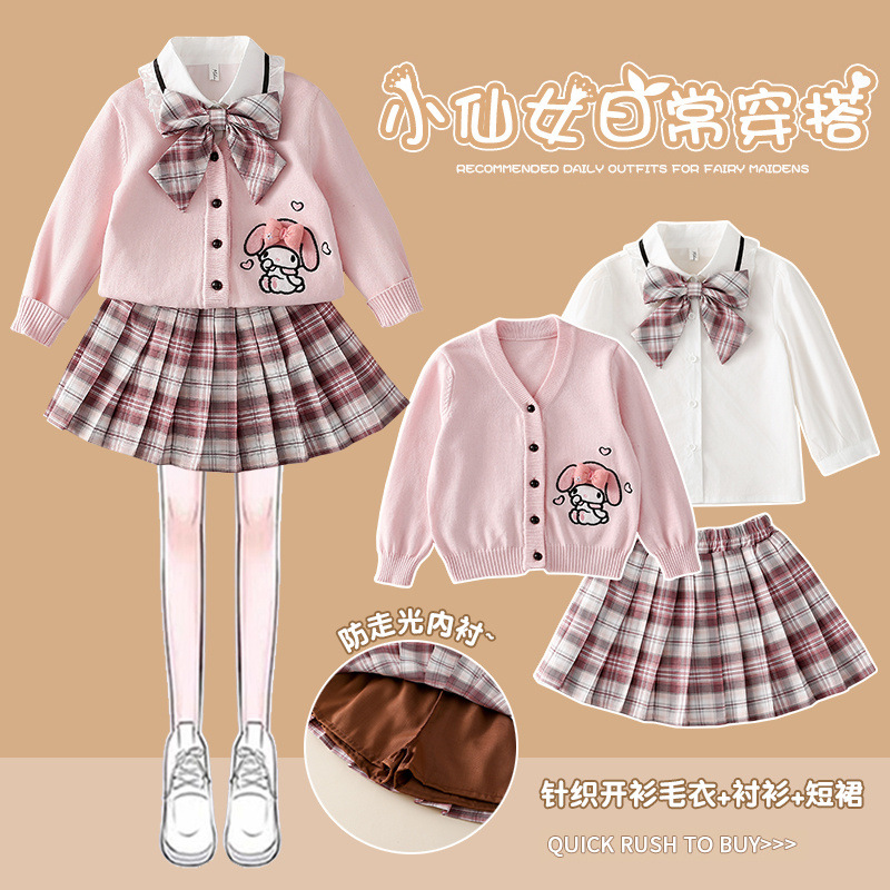 Girls' coolomi jk suit spring 2024 New preppy style knitted cardigan pleated skirt three-piece skirt