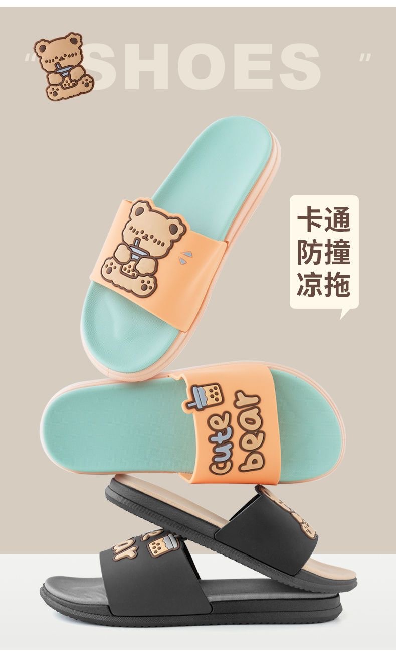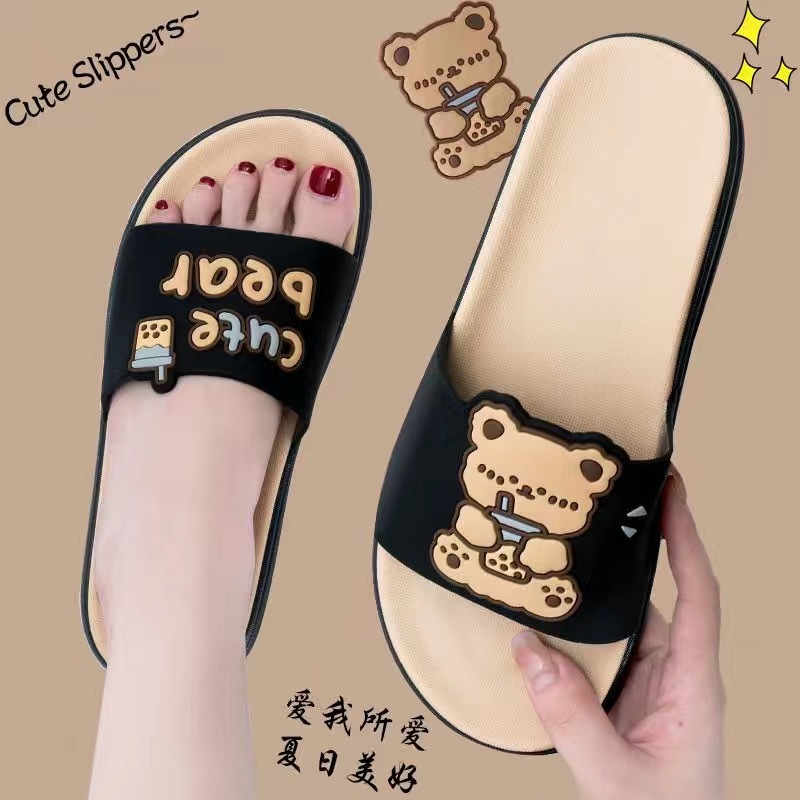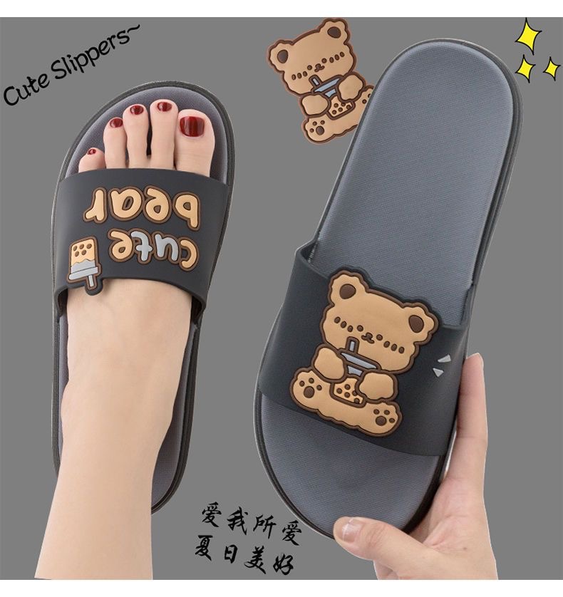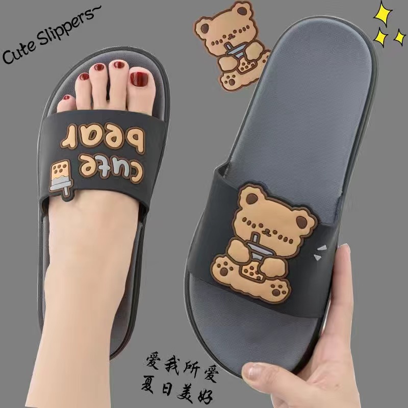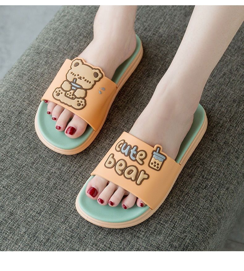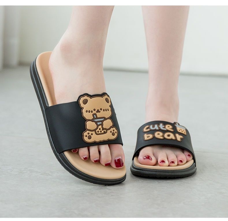 Summer New Internet Celebrity Cute Milk Tea Bear Non-slip Home Use Thick Bottom Indoor Outgoing Trendy Beach Sandals and Slippers for Women