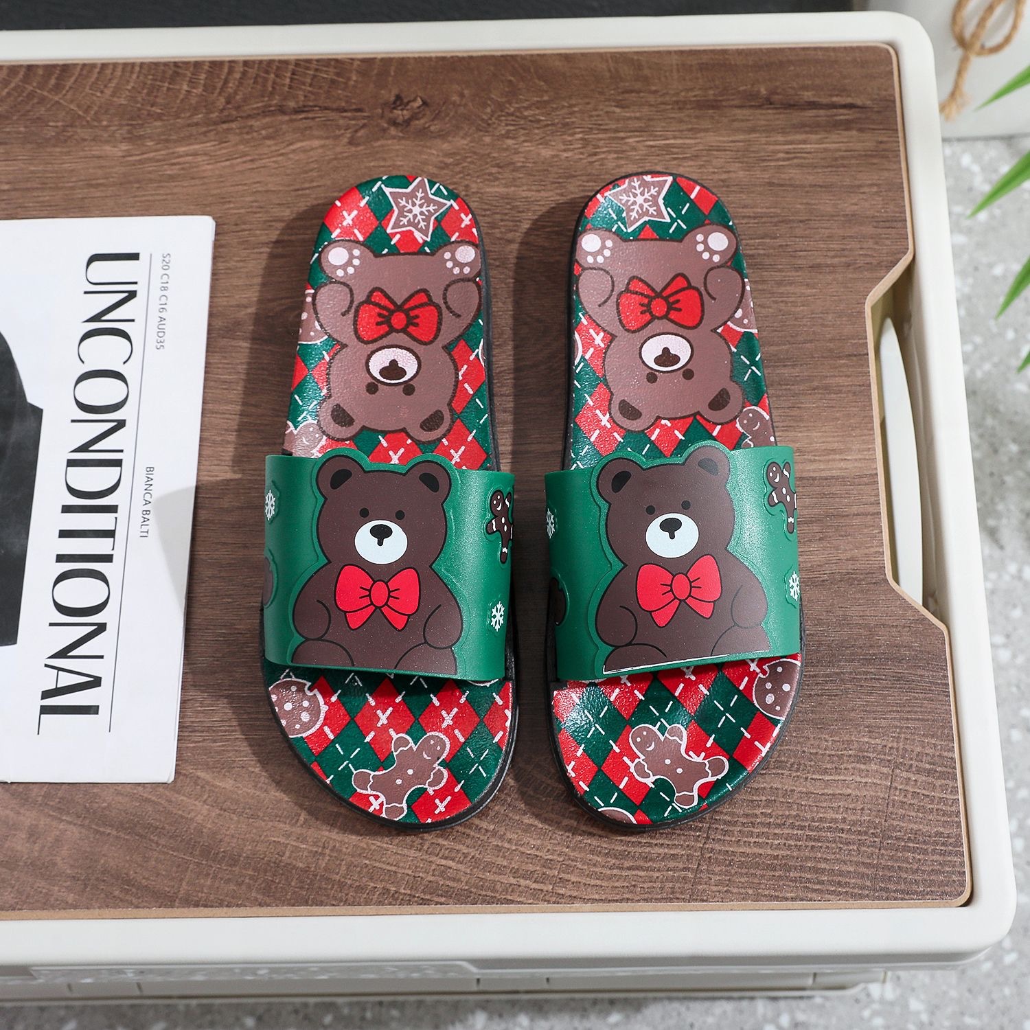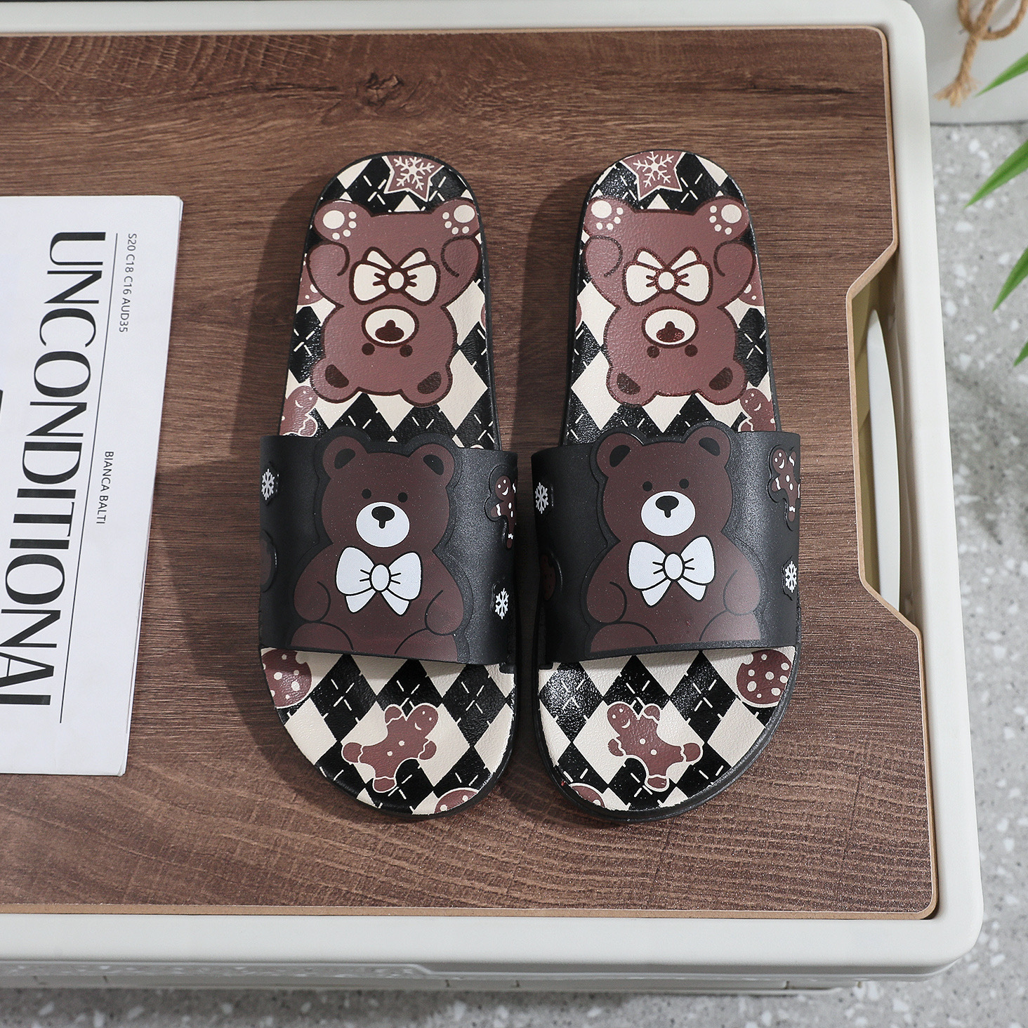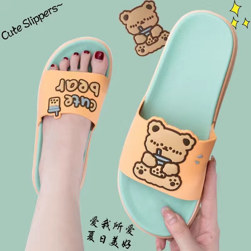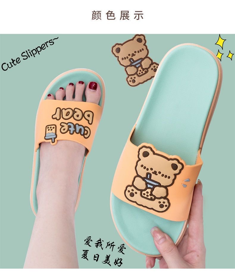 Summer New Internet Celebrity Cute Milk Tea Bear Non-slip Home Use Thick Bottom Indoor Outgoing Trendy Beach Sandals and Slippers for Women