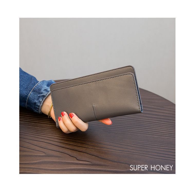 Ins European and American Simple Long Wallet Women's Pu Leather 2024 New Elegant Buckle Multi-Card Slot Soft Leather Wallet