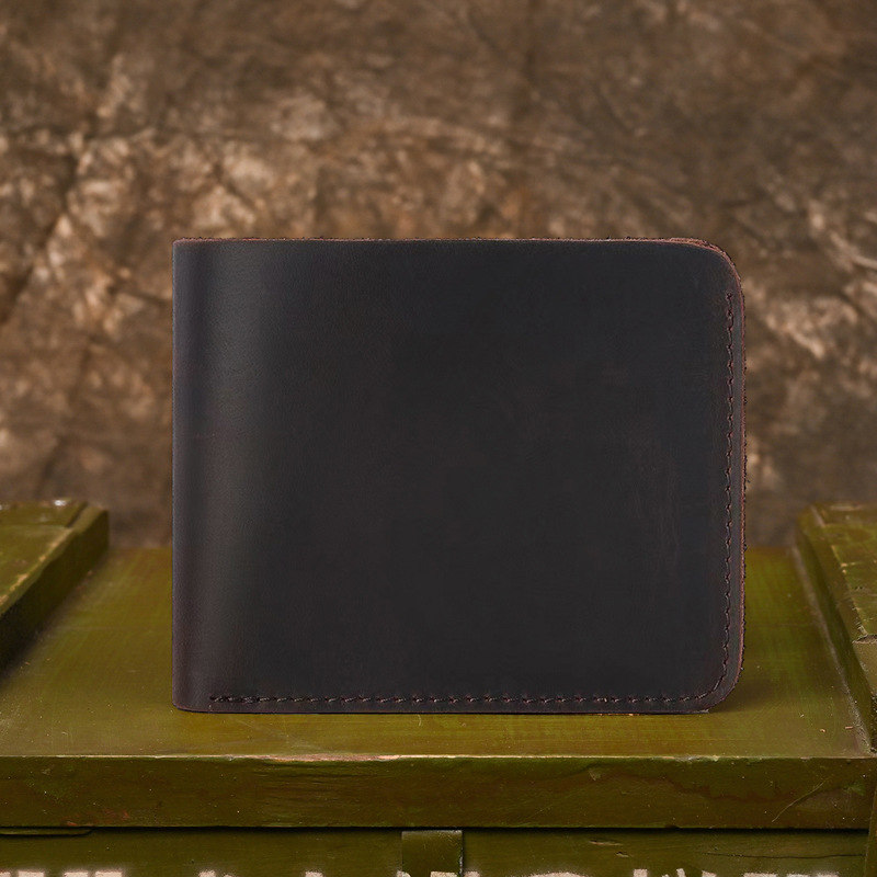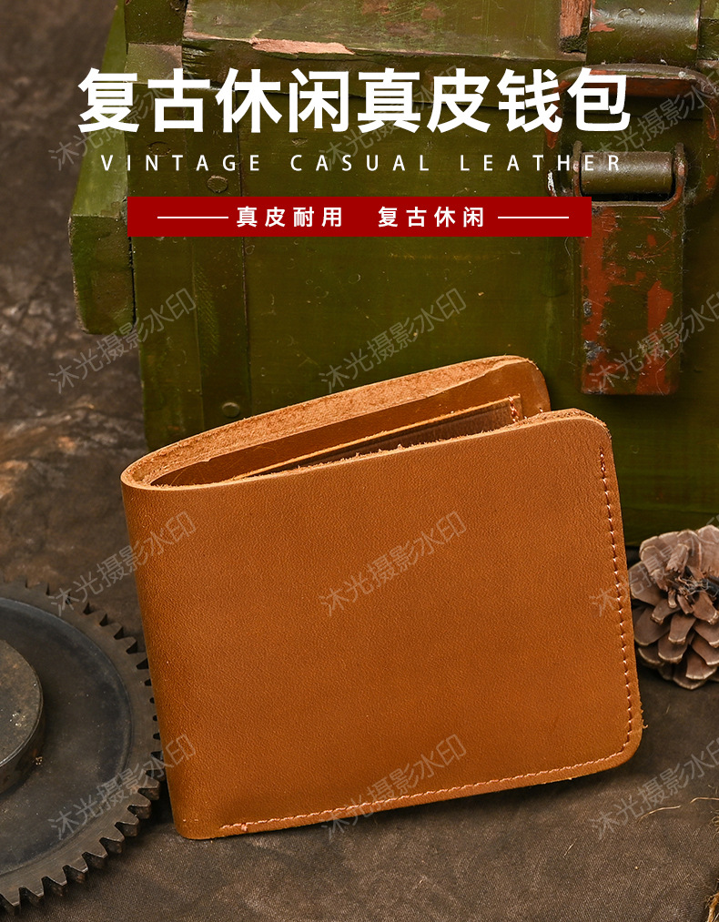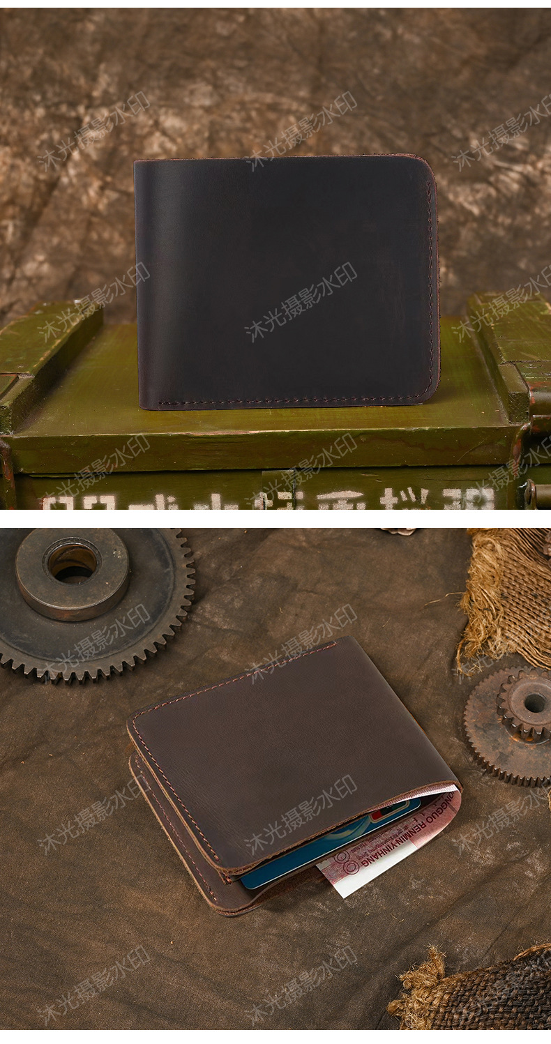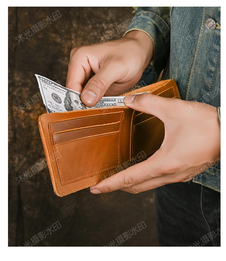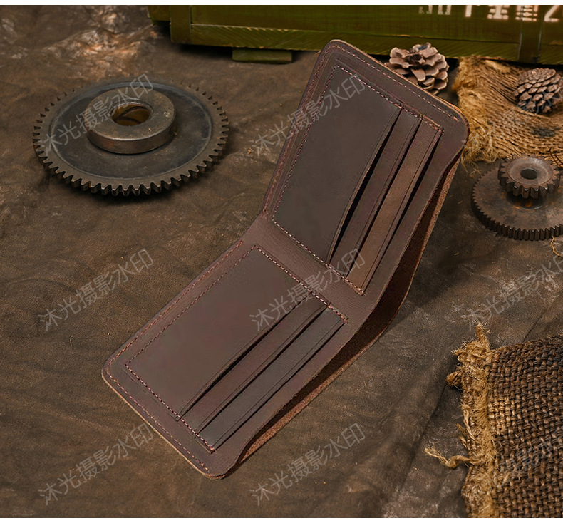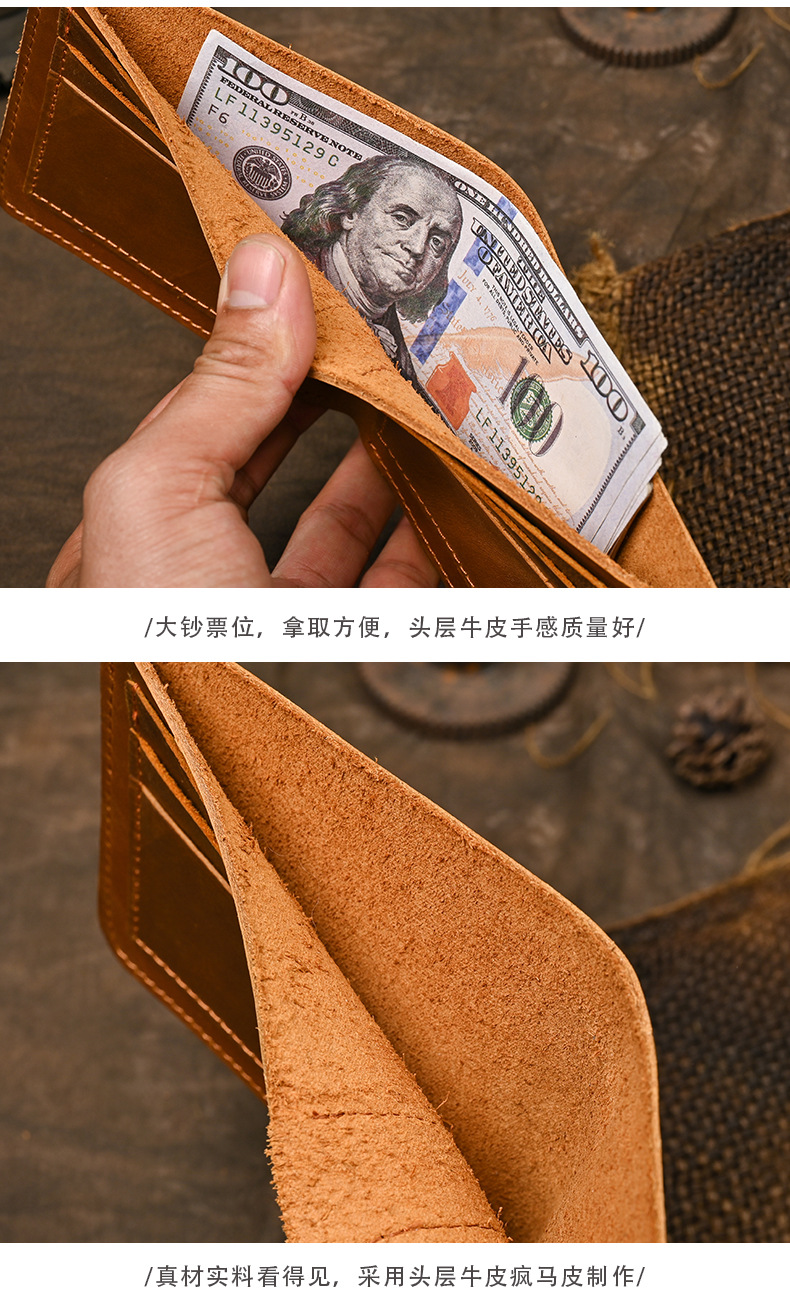 Cross-border Explosions Vintage Handmade Leather Wallet Horizontal Crazy Horse Cowhide Silver Bag Casual Simple US Money Wallet Wholesale