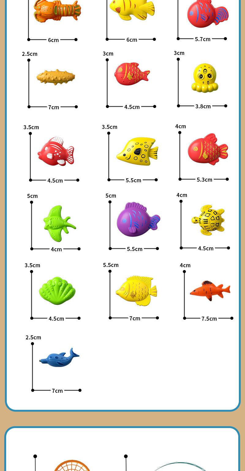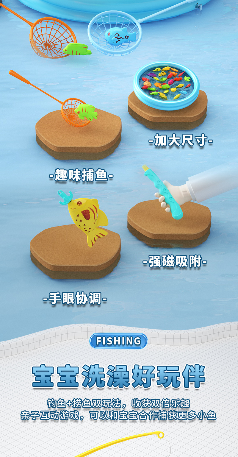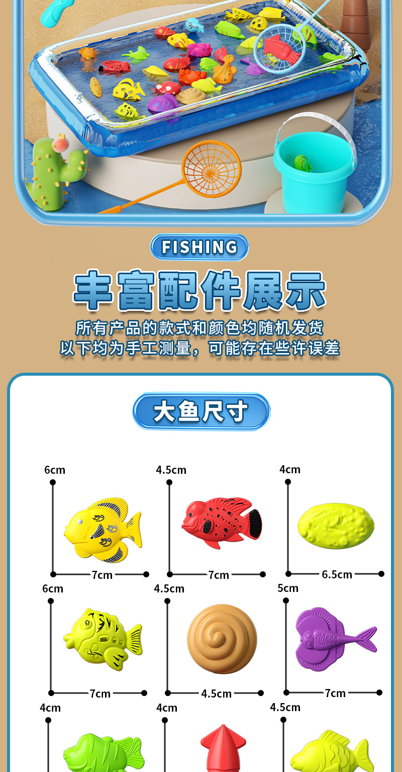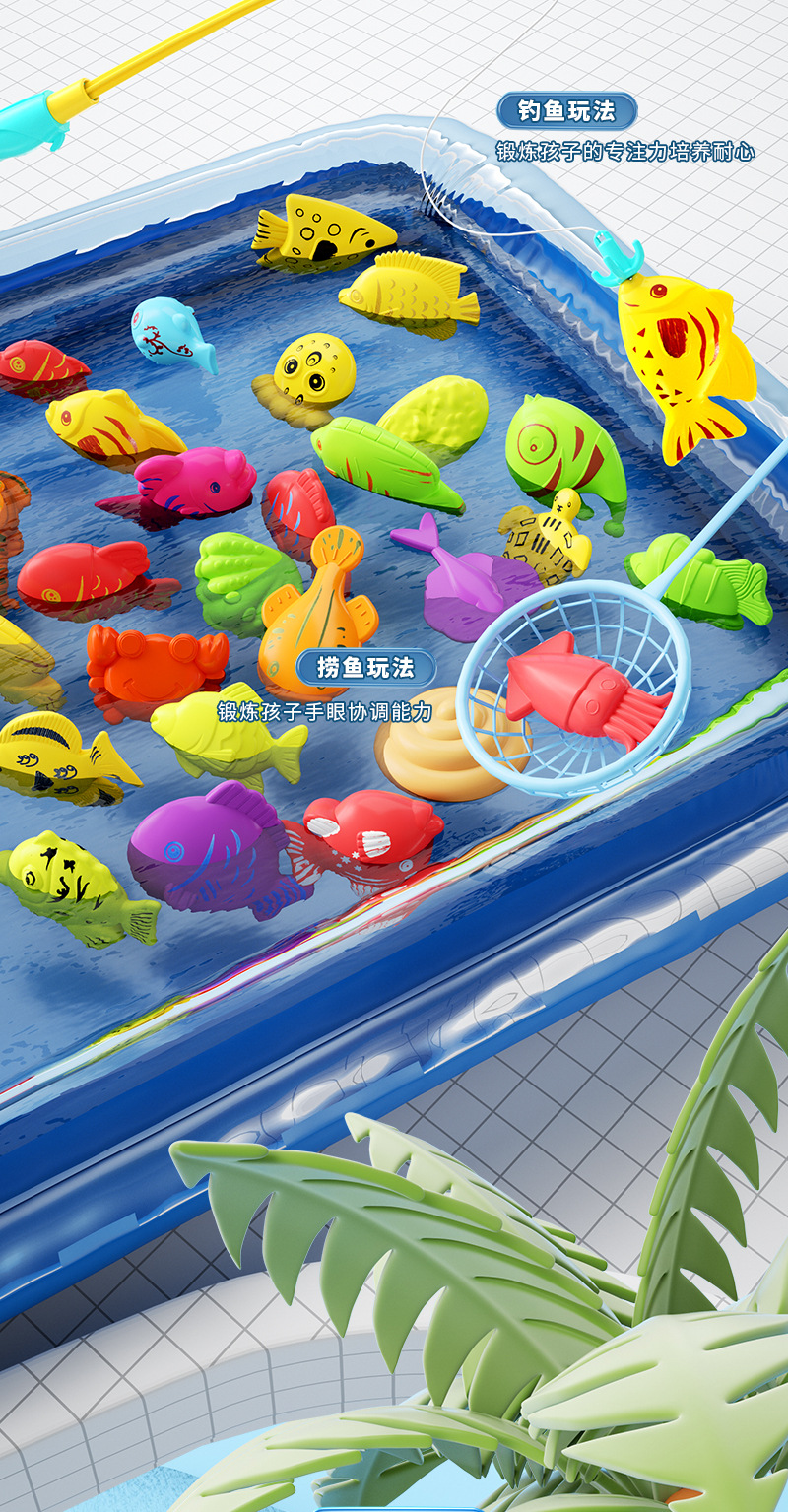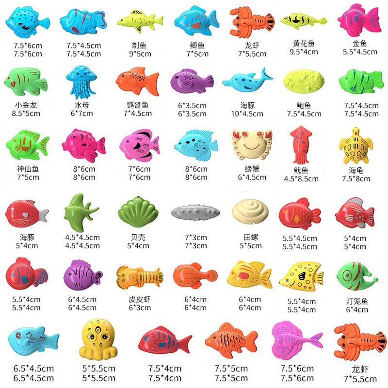 | Applicable age | Children (3-6 years old) | Colour | Trial opp bag - 8-piece set (6 fish + 1 fishing rod + 1 net) |