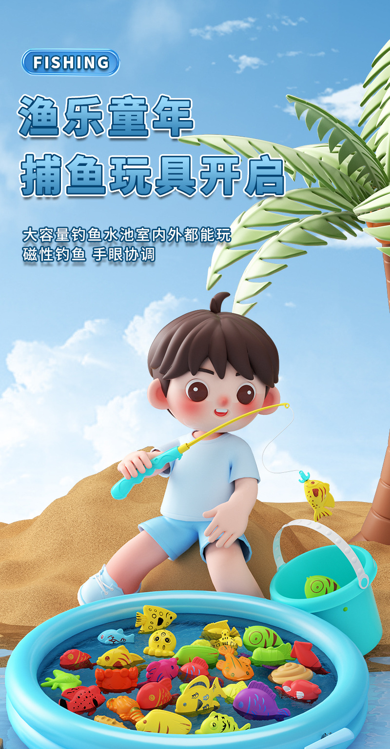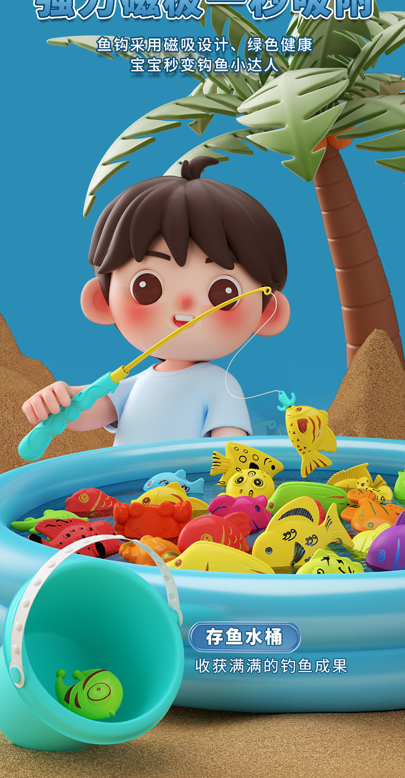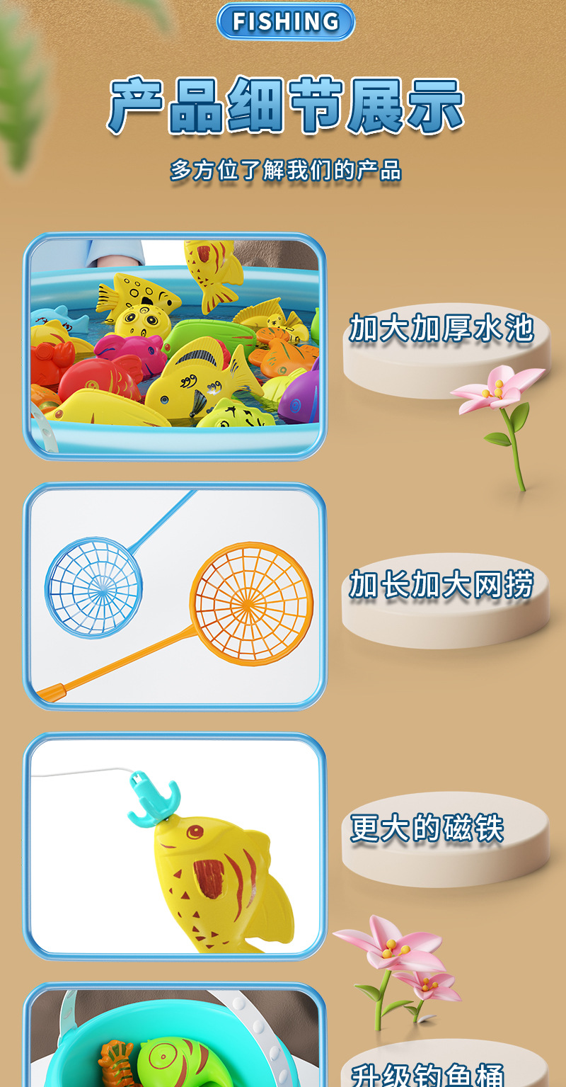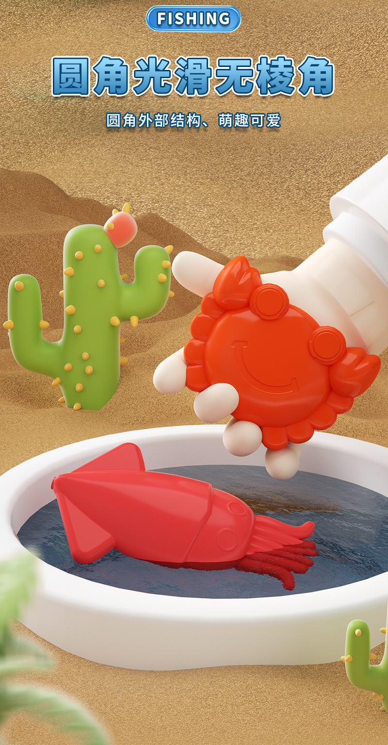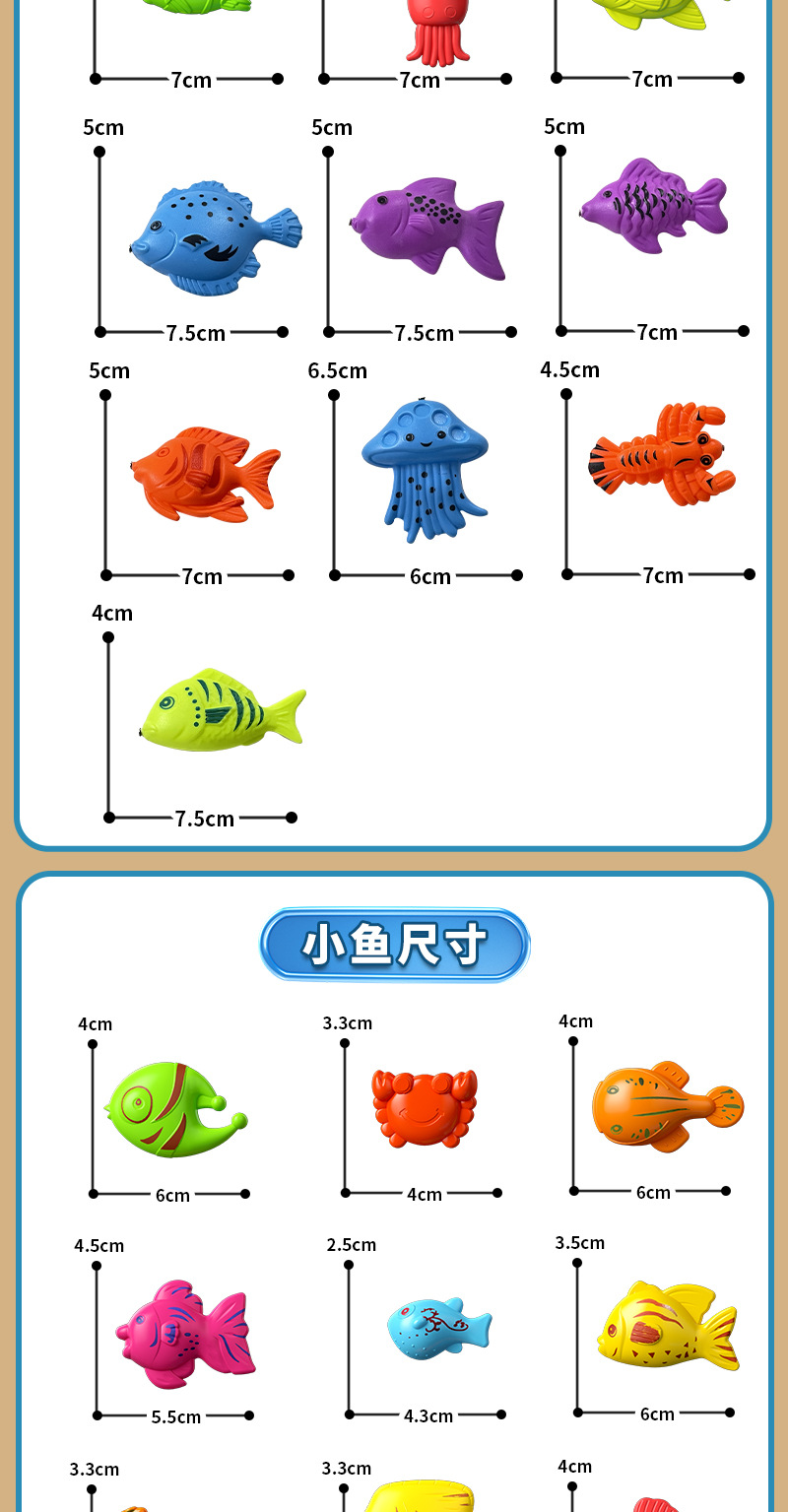 | Applicable age | Children (3-6 years old) | Colour | Trial opp bag - 8-piece set (6 fish + 1 fishing rod + 1 net) |