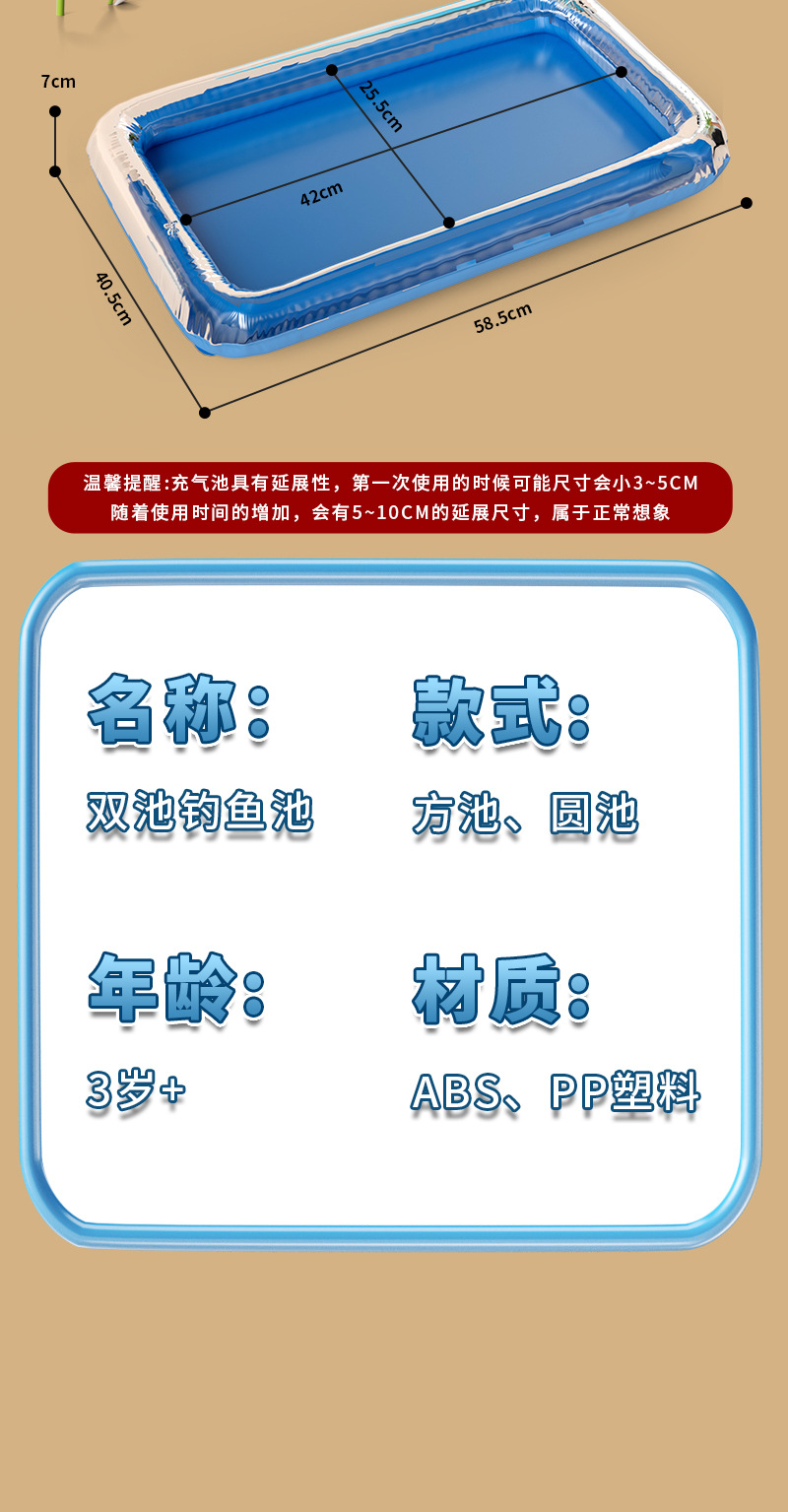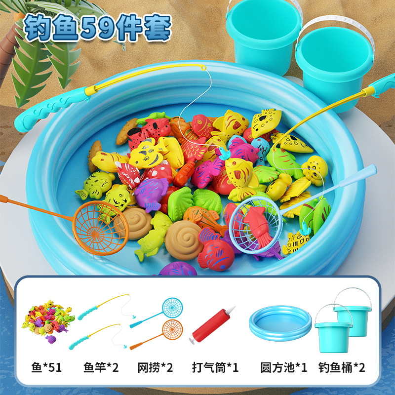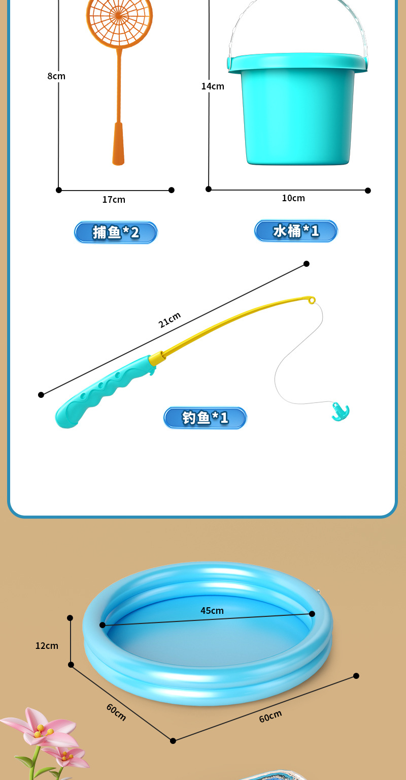 | Colour | Luxurious double-layered large round pool - 57-piece set (51 fish + 2 fishing rods + 2 nets + 1 pump + 1 large round pool) - 31 | Colour | Luxurious double-layered large round pool - 59-piece set (51 fish + 2 fishing rods + 2 nets + 1 pump + 1 large round pool + 2 fishing buckets) - 33 |