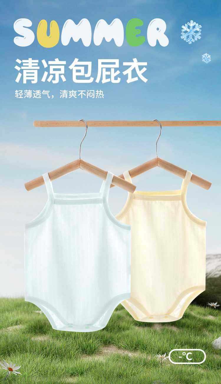 Baby's Sling Bag Fart Clothes Pure Cotton Summer Thin Men's and Women's Treasure Sleeveless One-piece Clothes Princess Summer Triangle Ha-ha Clothes