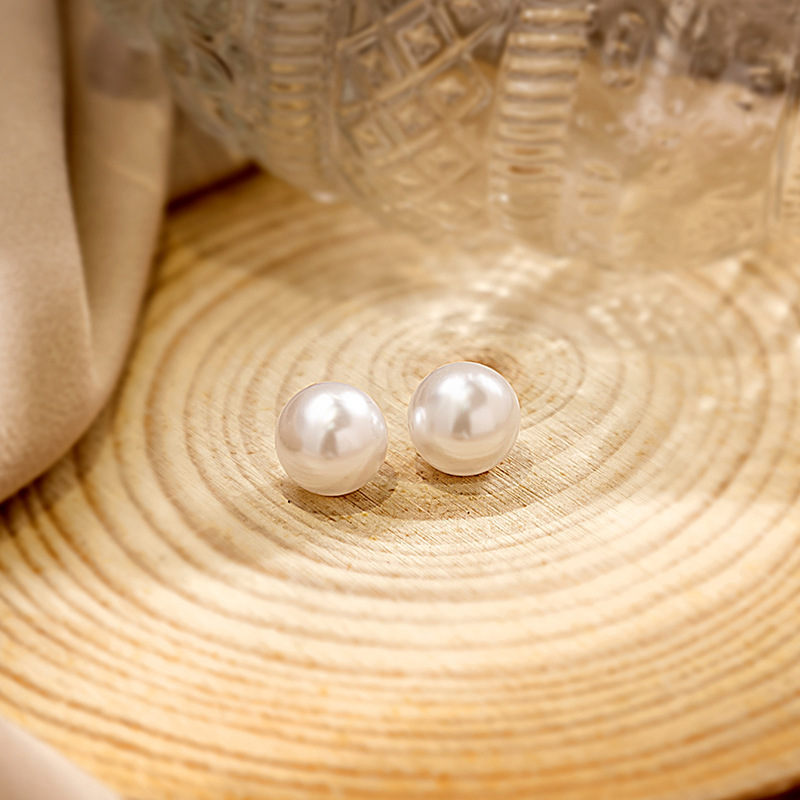 Silver Needle Light Luxury Elegant High-end Sense Geometric Round Pearl Earrings New Simple Pure White All-match Pearl Earrings