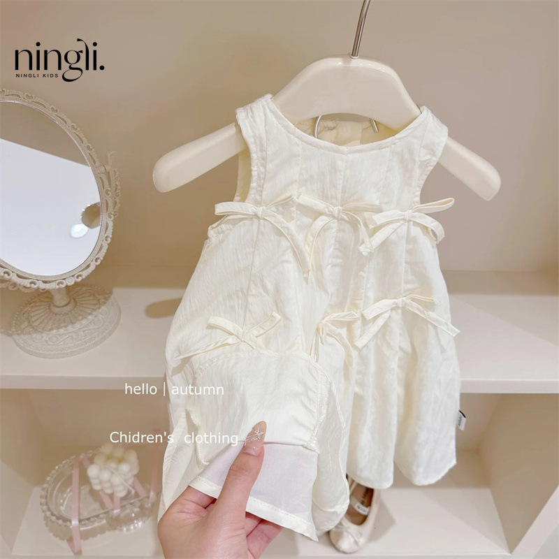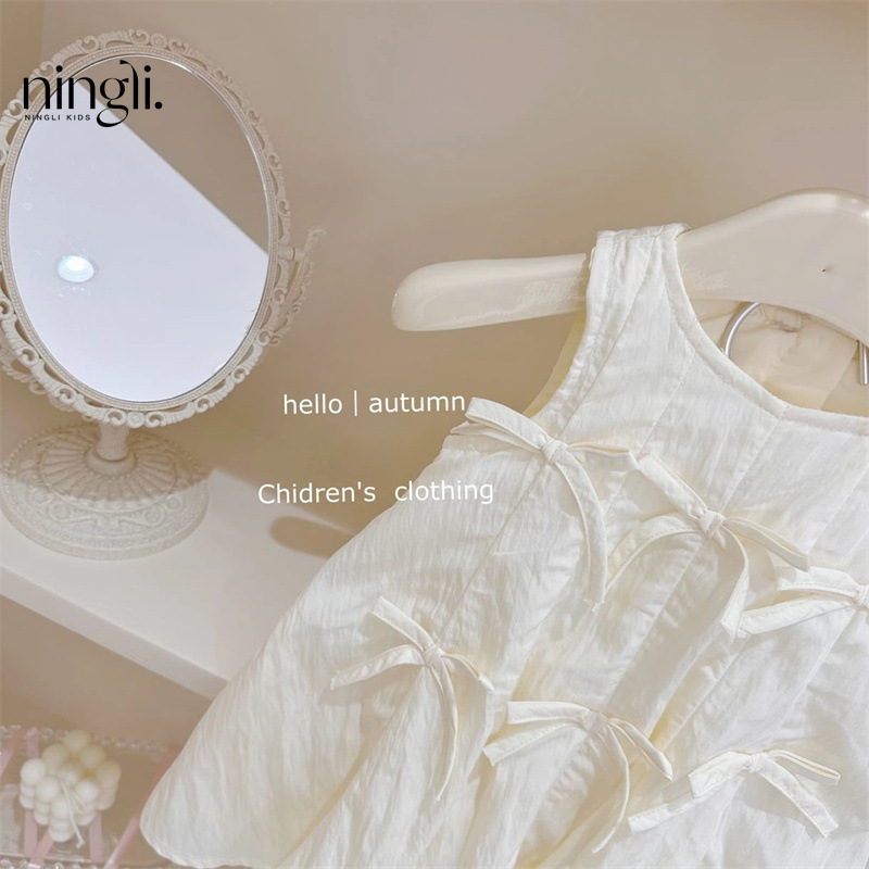 Ningli Girls' Bow Dress 26 Summer New Korean Style Kidsren's White Lantern Dress Ballet Style Vest Dress