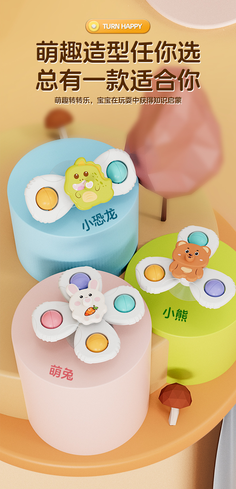 Children's Sucker Swivel Toy Fun Animal Swivel Top Ring Baby Bathroom Play Cross-border