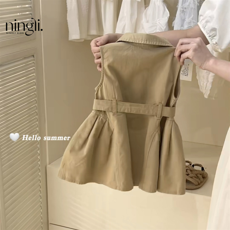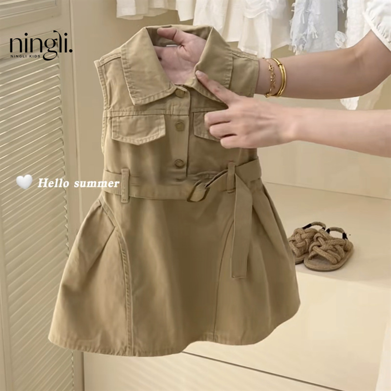 Lime Korean Children's Wear Summer New Girls' Sleeveless dress Baby Fashion Design Sense Workwear Skirt Vest Skirt