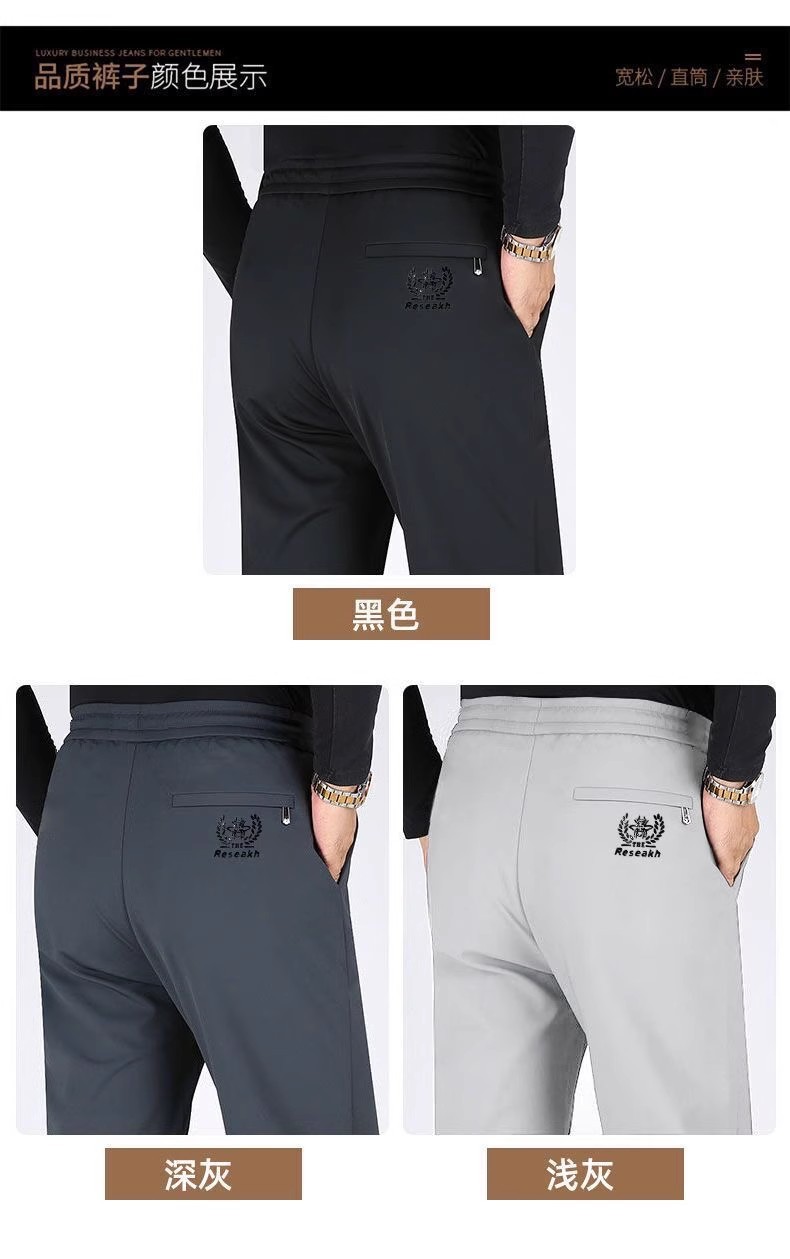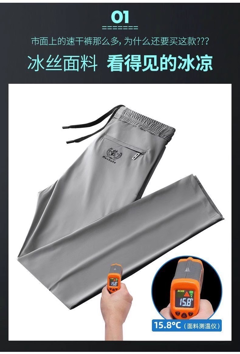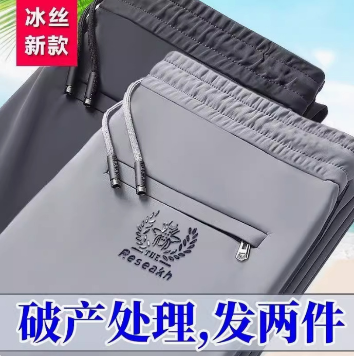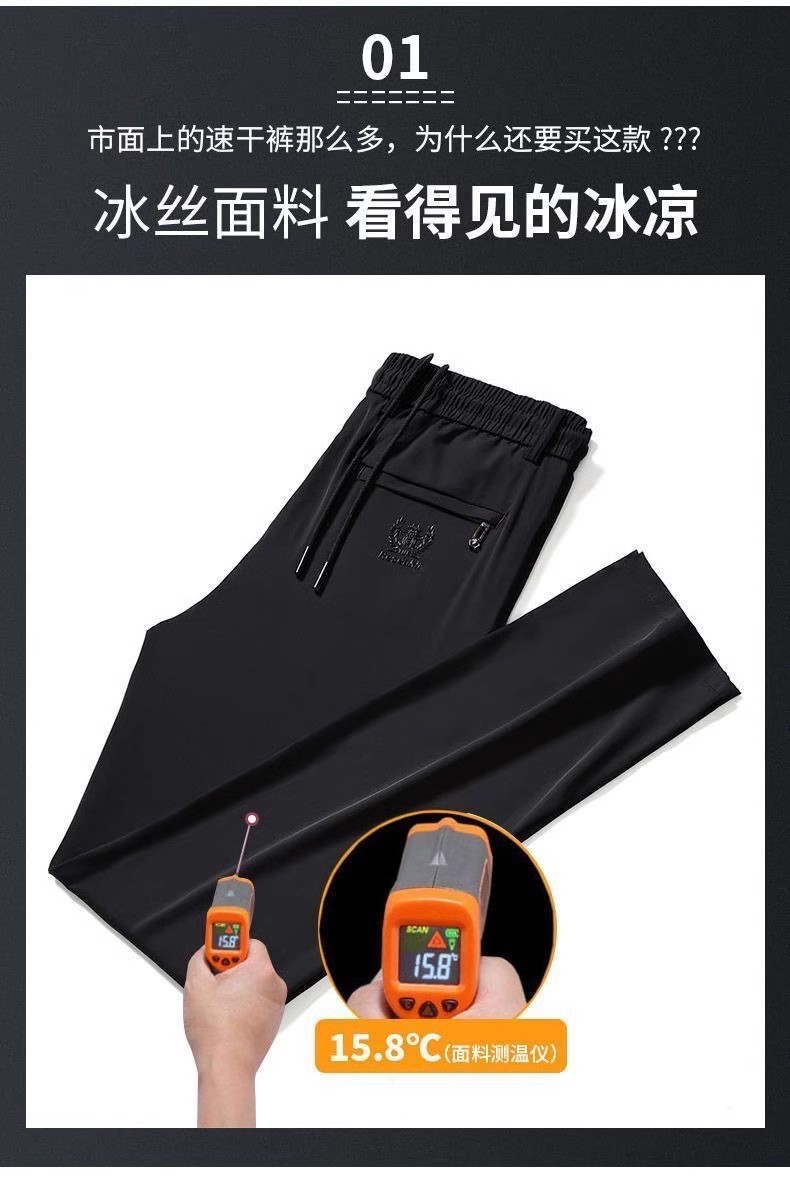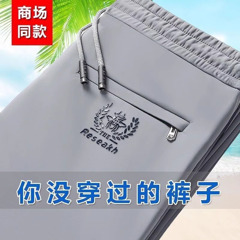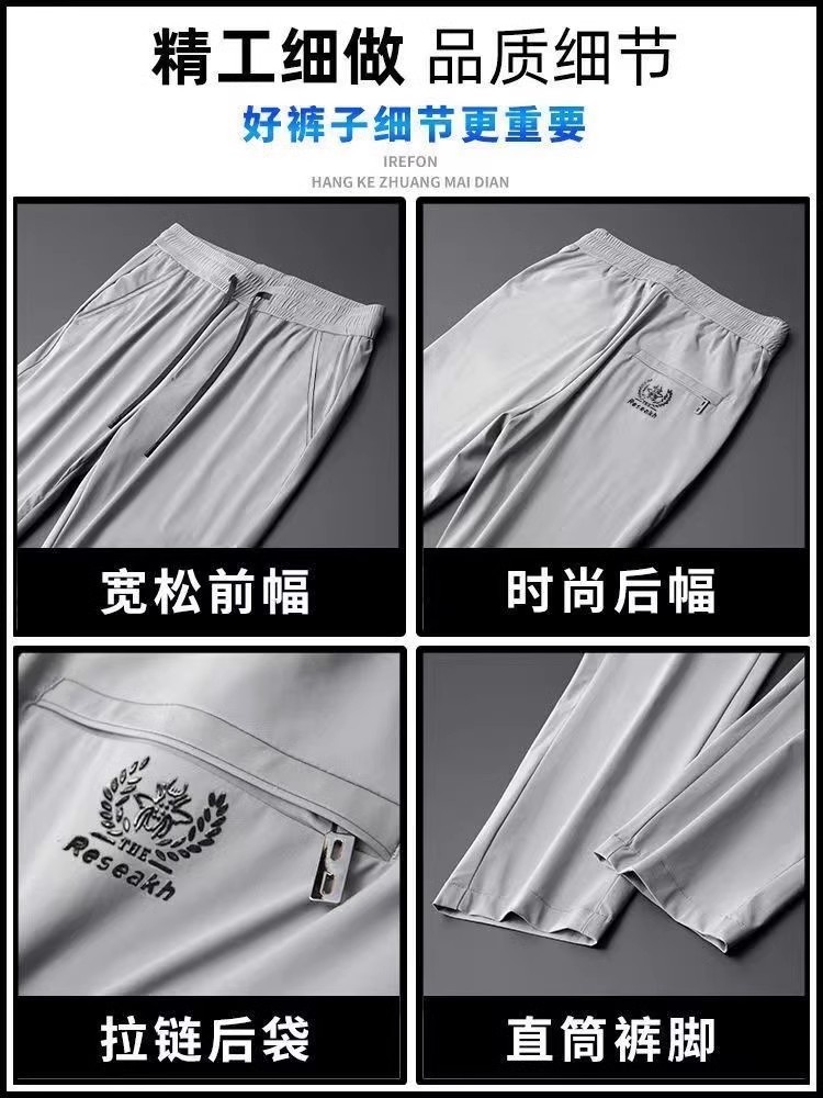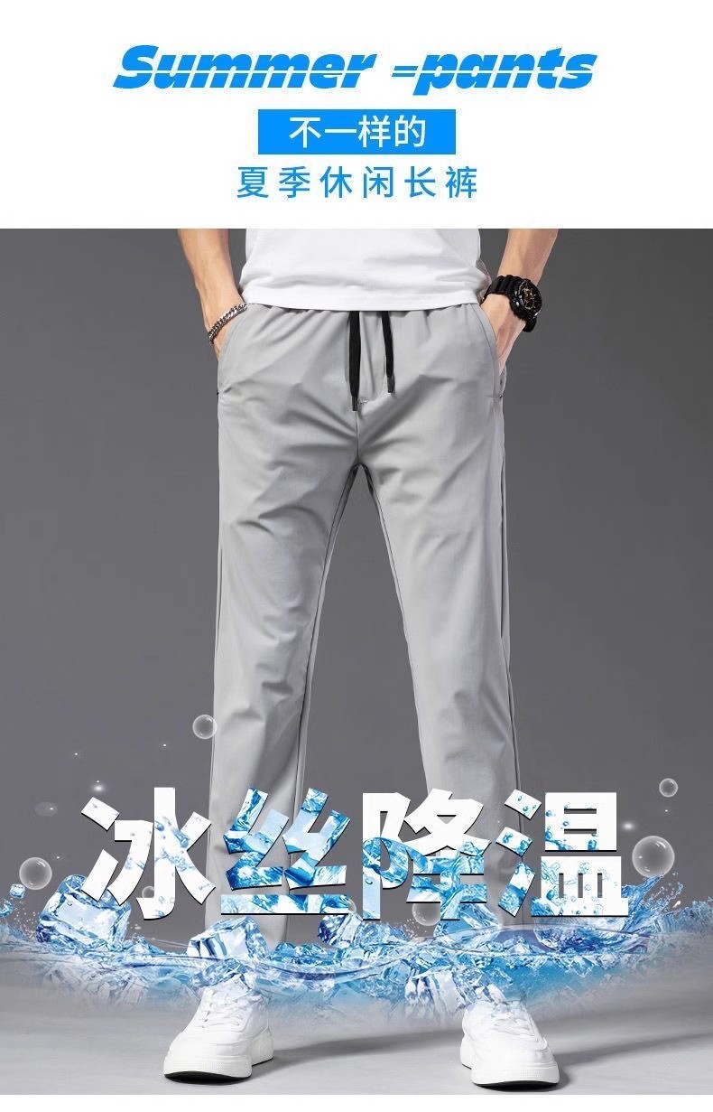Summer Ice Silk Pants Men's Elastic Casual Pants Men's Loose Sports Thin Quick-drying Straight Pants Men's Sports Pants