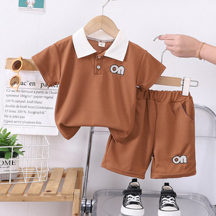 Mengyao Summer Boys Suit 2024 New Baby Southeast Asia Wholesale Small and Medium Children Beach Shirt Two-Piece Set