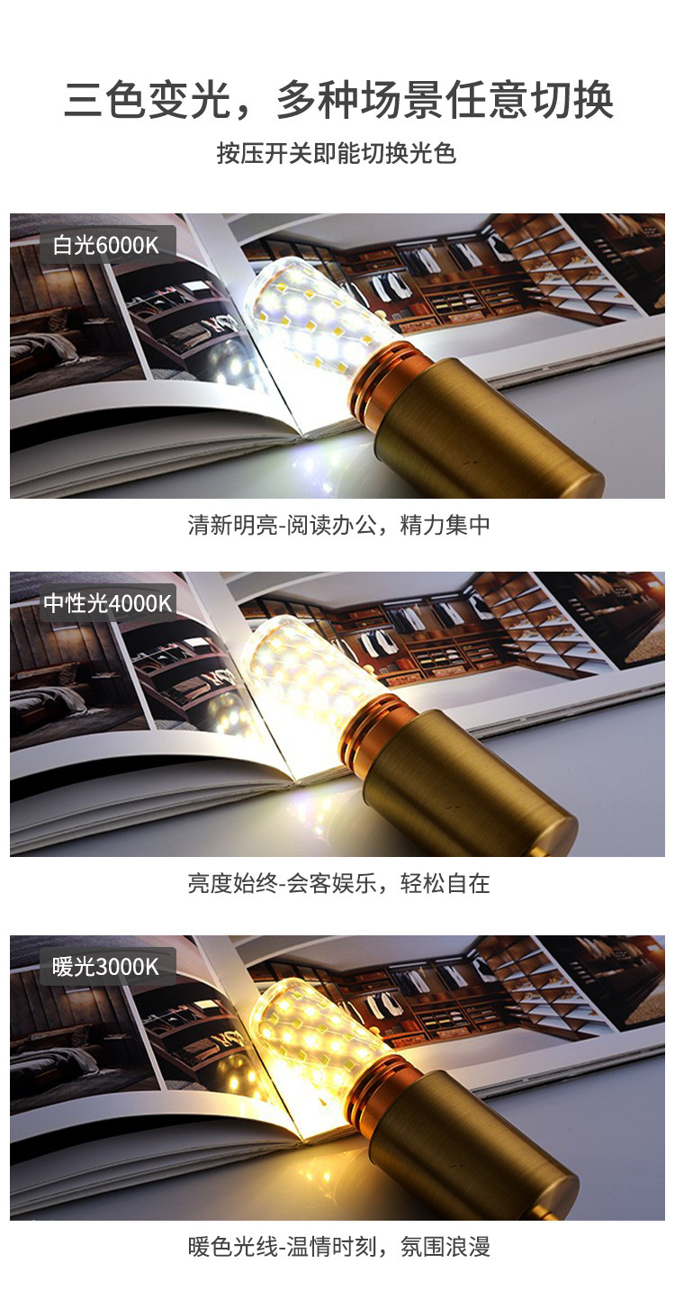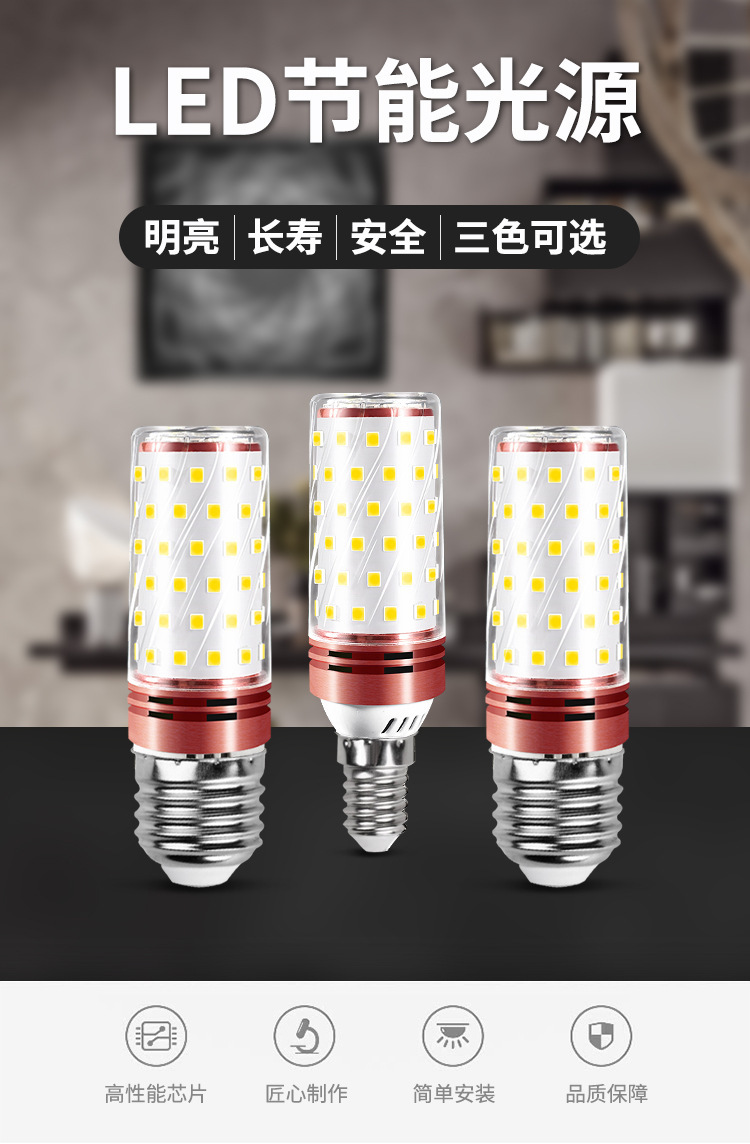 WholEsalE lEd Bulb E27 Corn Lamp E14 ScrEw 220V HousEhold EnErgy-saVing ThrEE-color Dimming 12w Bald HEad Strong 16w