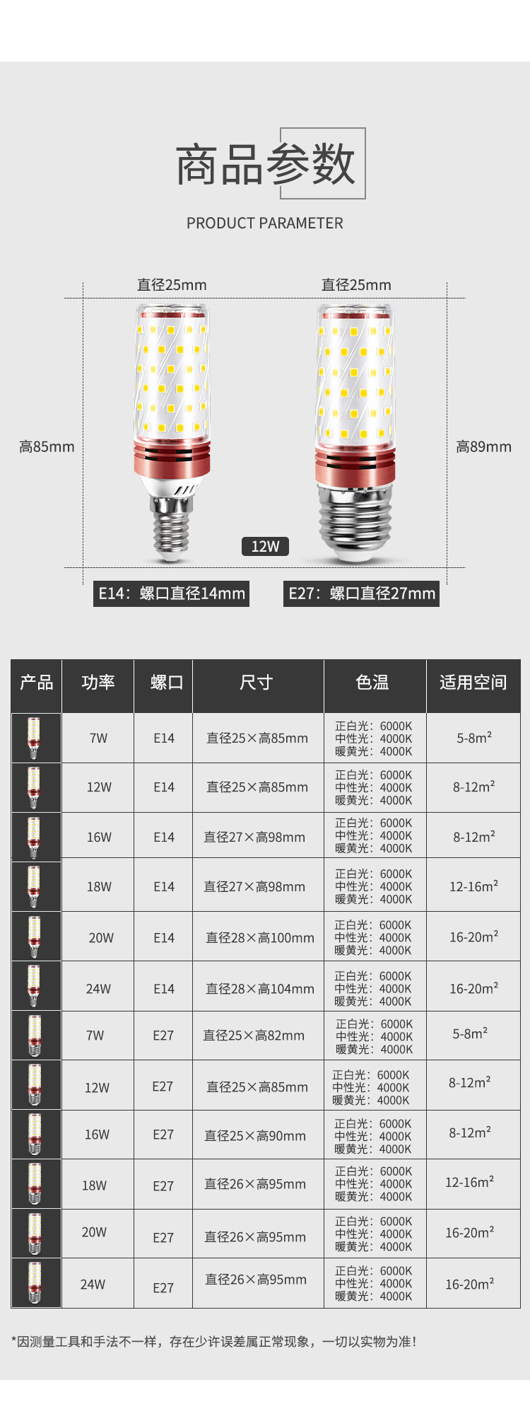 | Power | 24W constant currEnt modEl-E27 scrEW corn lamp | Power | 24W constant currEnt modEl-E14 scrEW corn lamp |