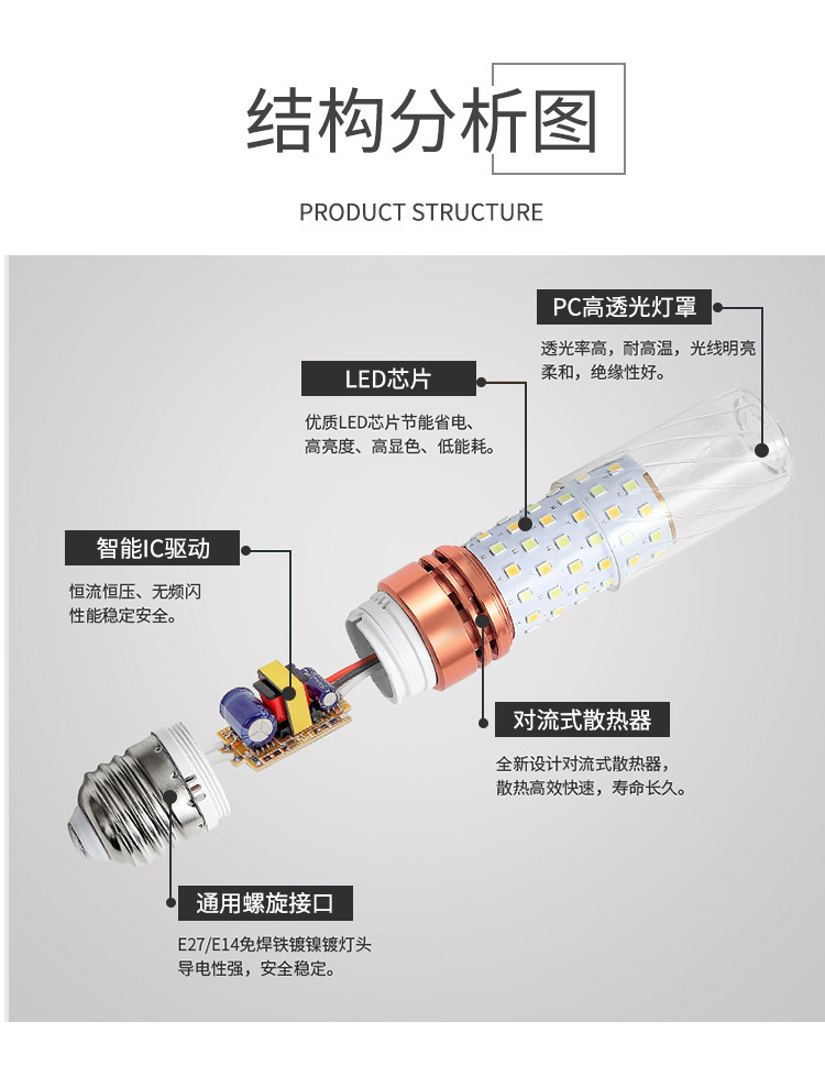 | Power | 7W constant currEnt modEl-E27 scrEW corn lamp | Power | 12W high display modEl-E14 scrEW corn lamp |