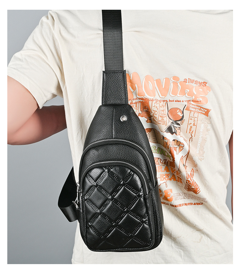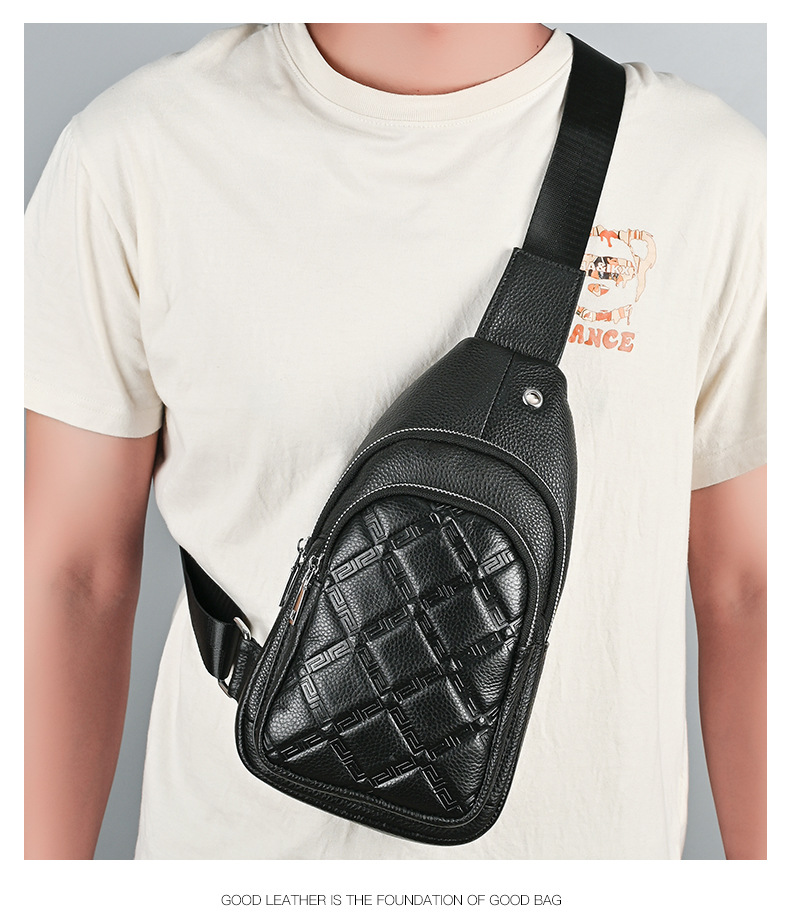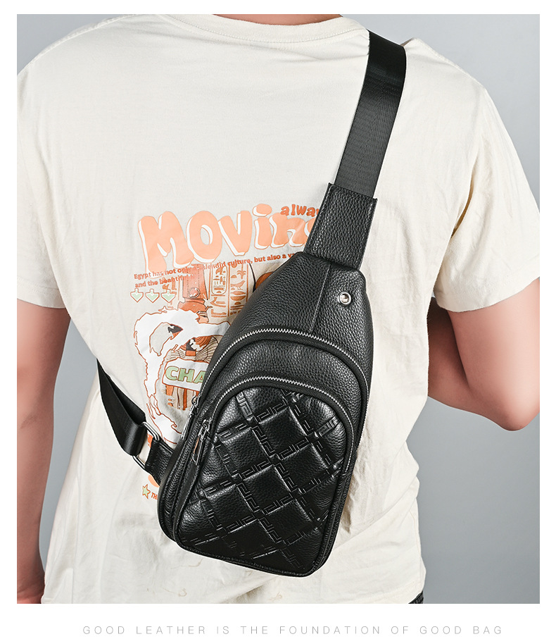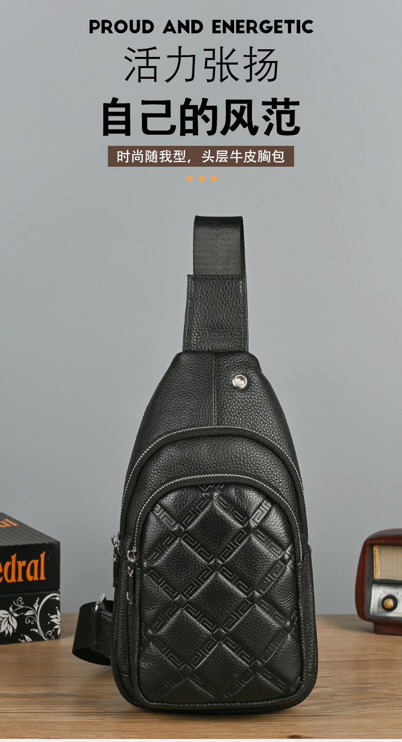 New Men's Genuine Leather Chest Bag Collection Personalized Men's Sports Crossbody Bag Large Capacity Top Layer Cowhide Shoulder Bag