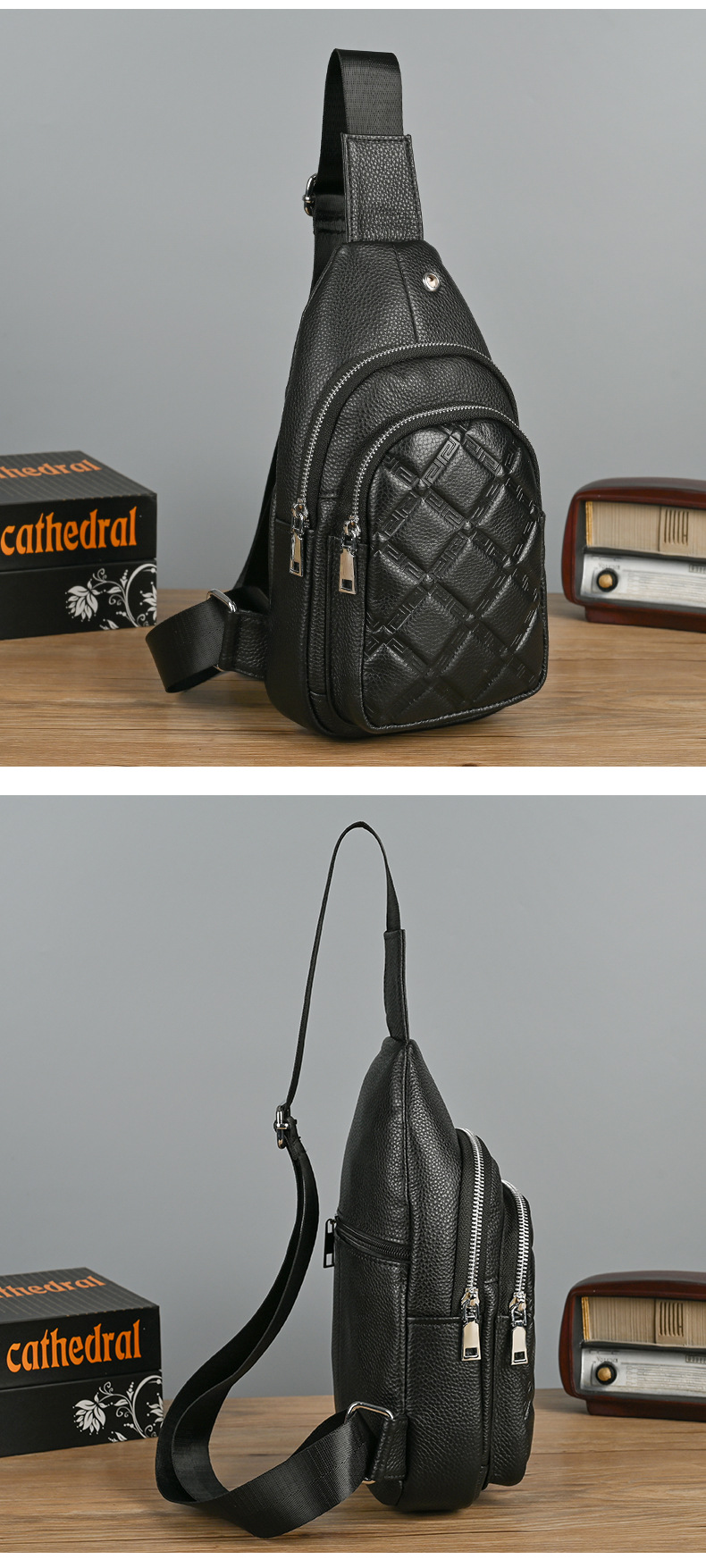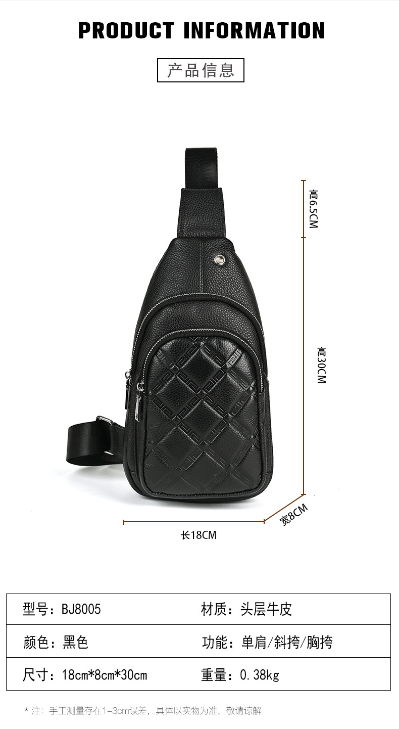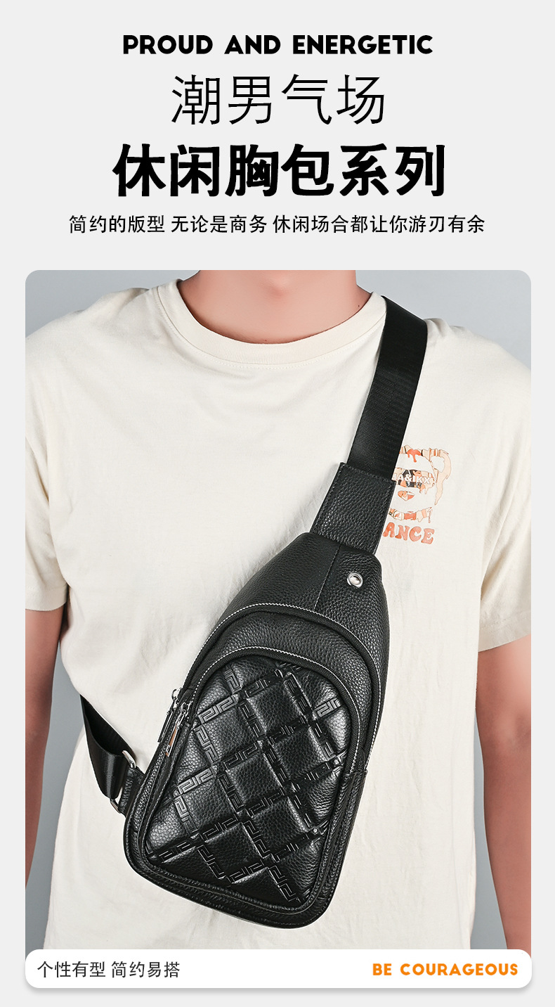 New Men's Genuine Leather Chest Bag Collection Personalized Men's Sports Crossbody Bag Large Capacity Top Layer Cowhide Shoulder Bag