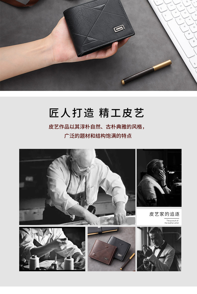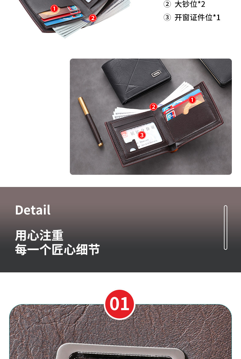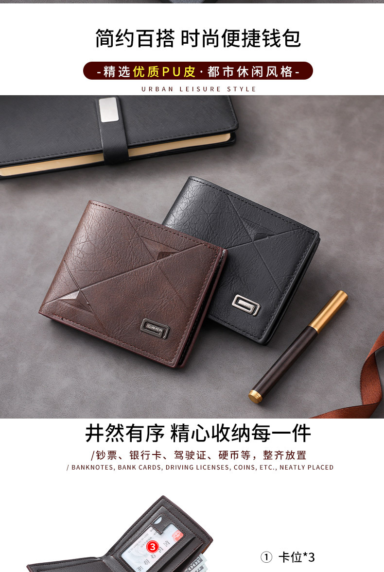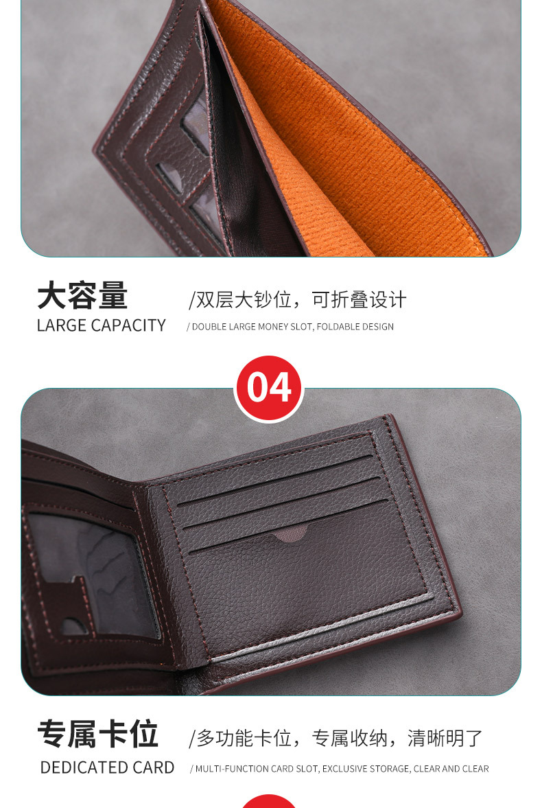 Factory Direct Sales Men's Wallet Multi-Functional Business Casual Storage Large Capacity Waterproof Card Holder Cross-Border Supply Portable