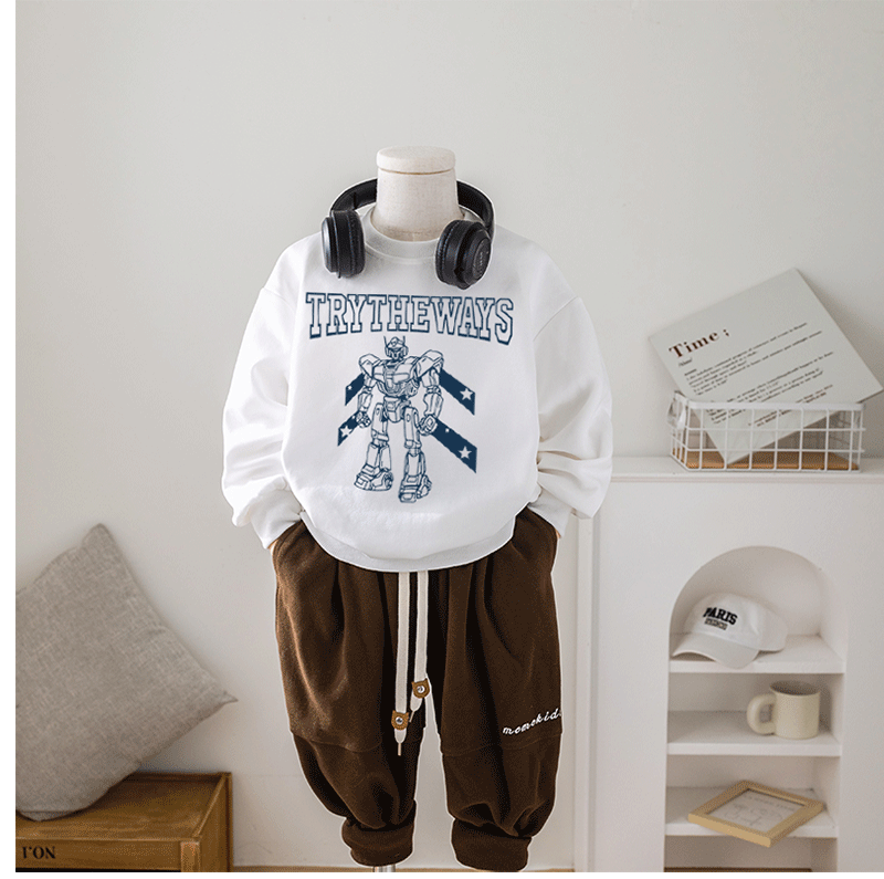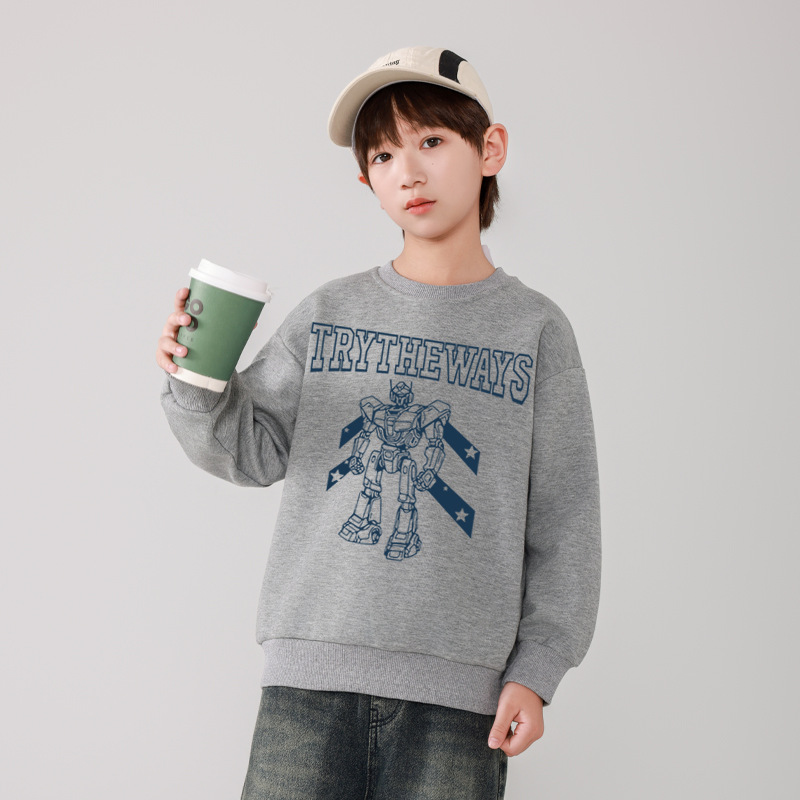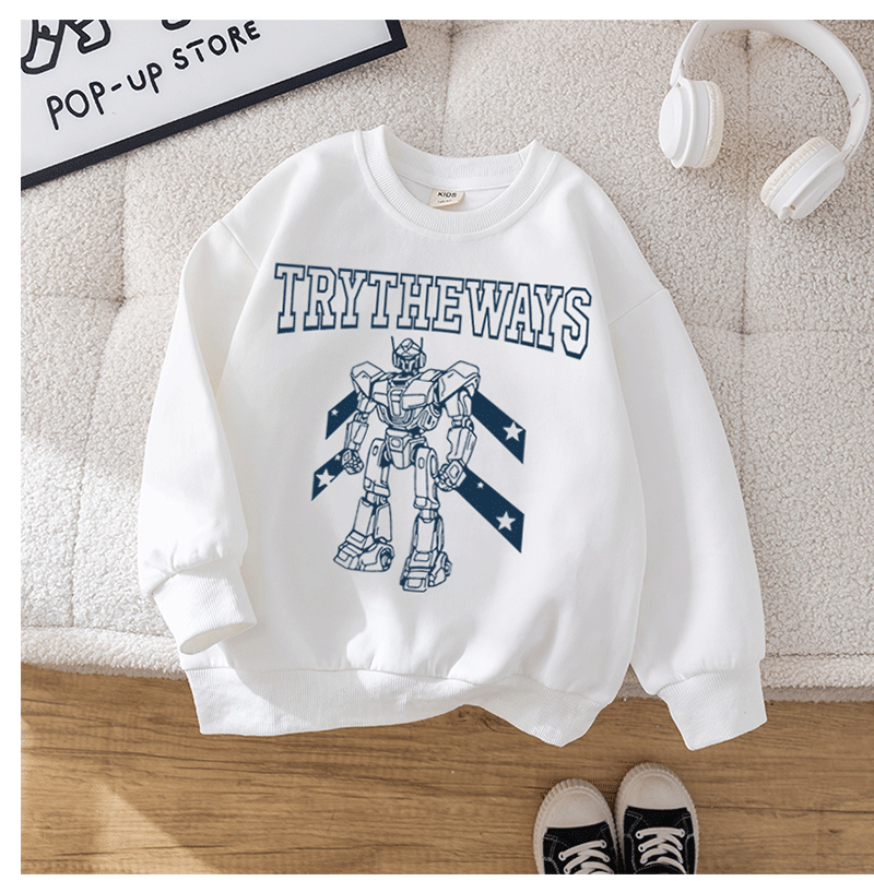 Wholesale boys' sweater cartoon robot long sleeve new spring and autumn middle and large children's round neck bottoming shirt children's top