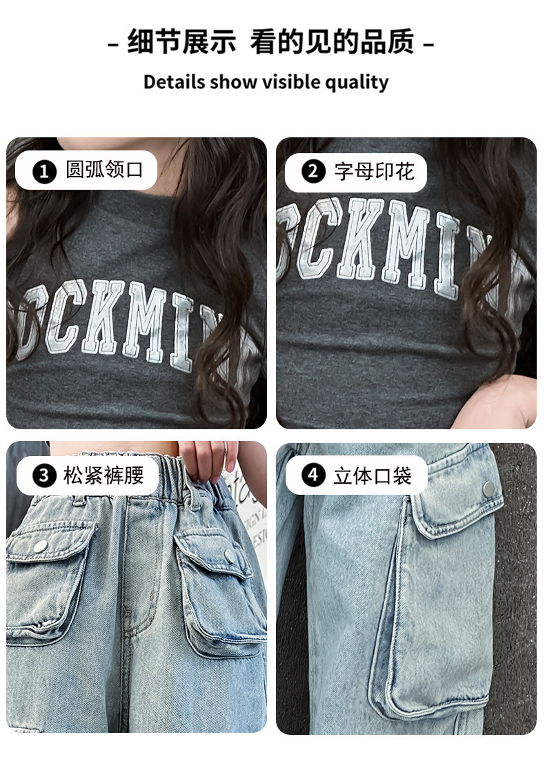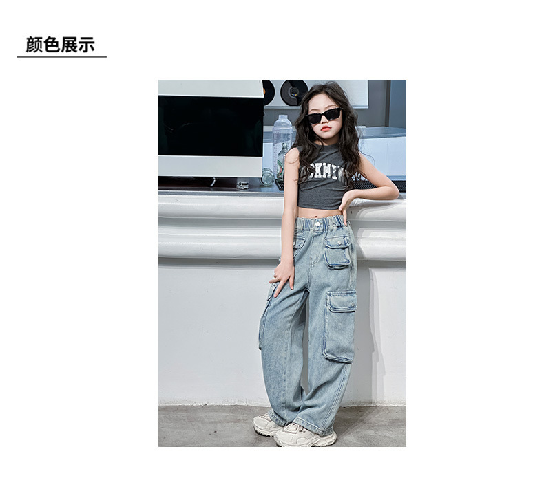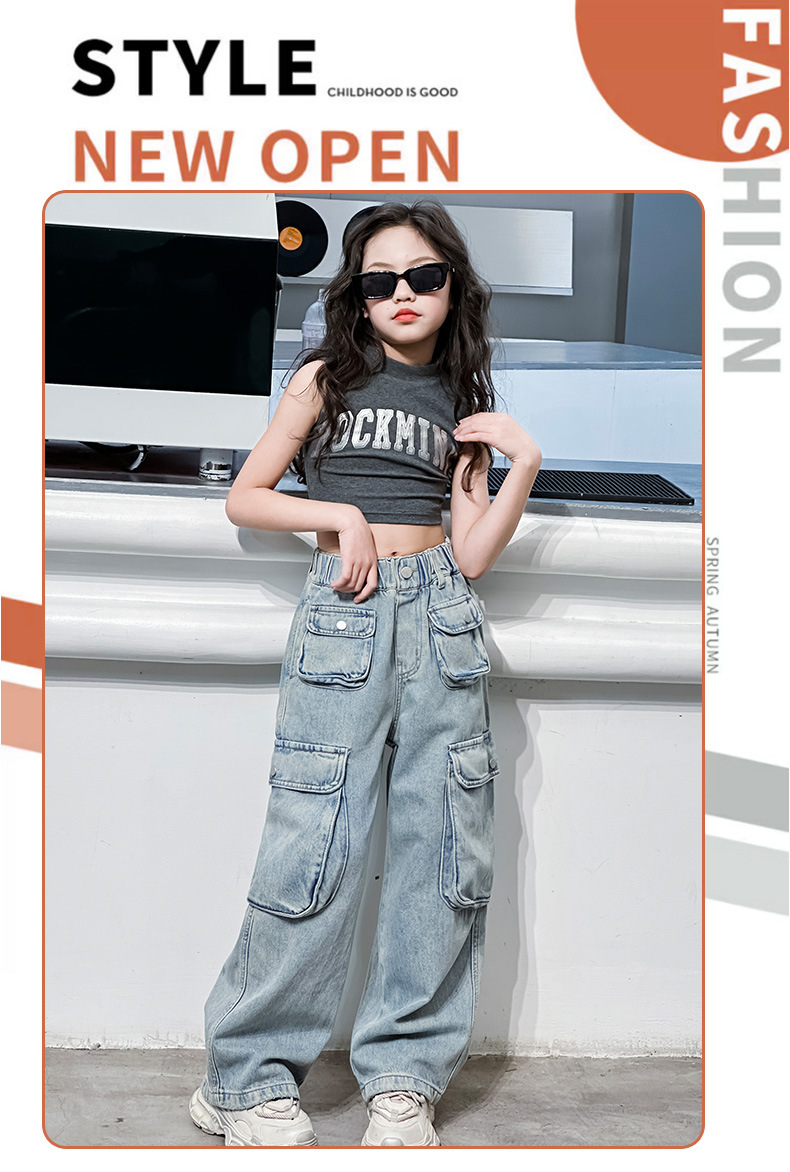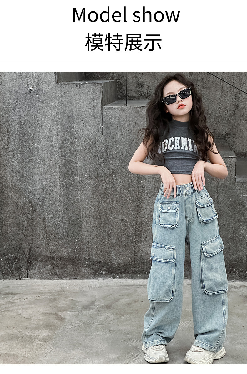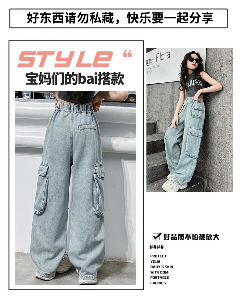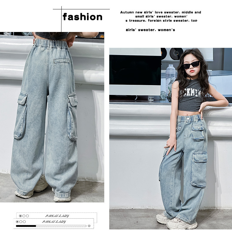 . Girls Work Jeans Summer Children's Clothing 2025 Children's Straight-Leg Pants Korean Style Trendy Cool Loose Wide Leg Pants