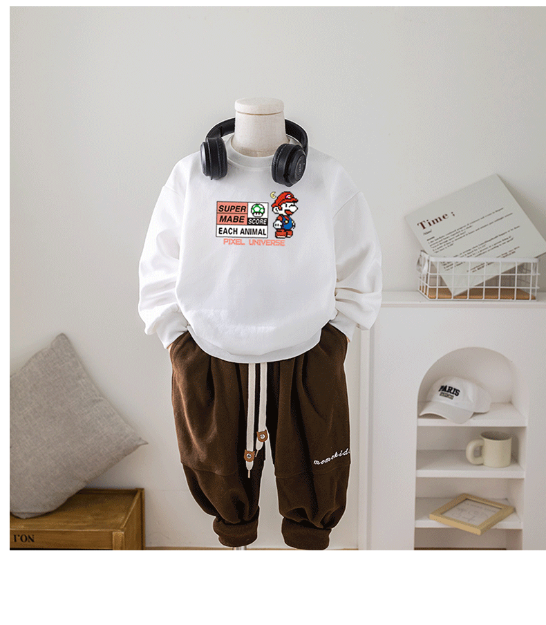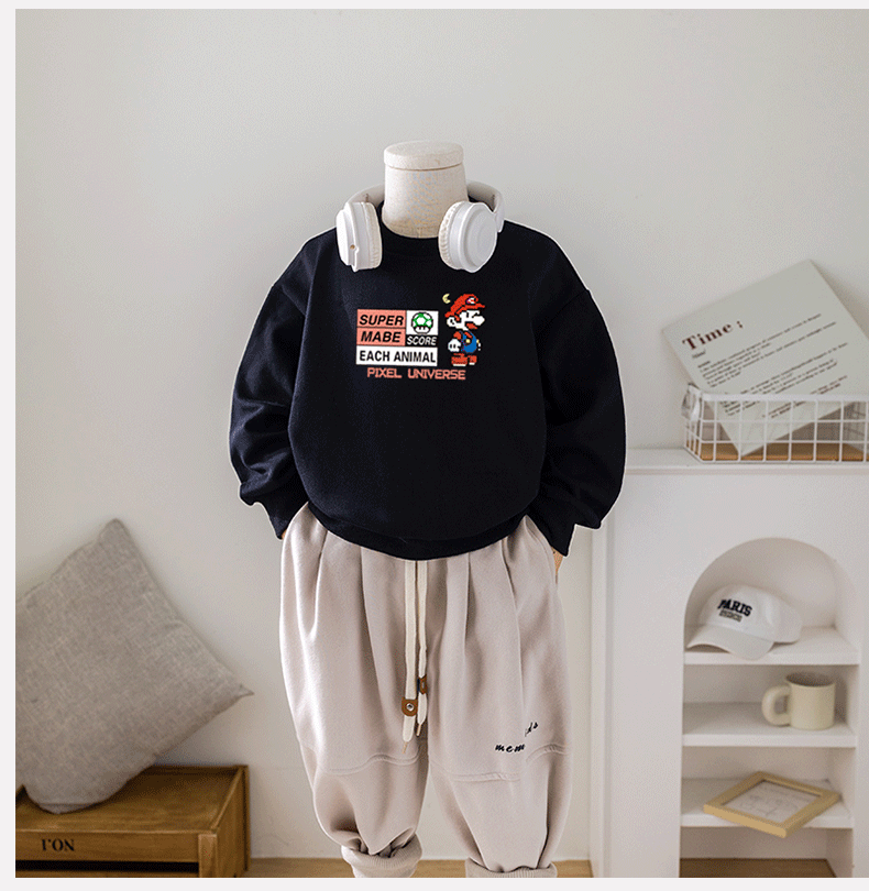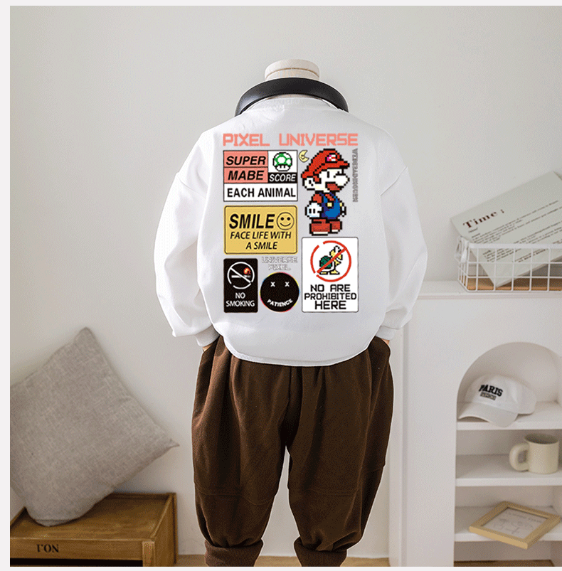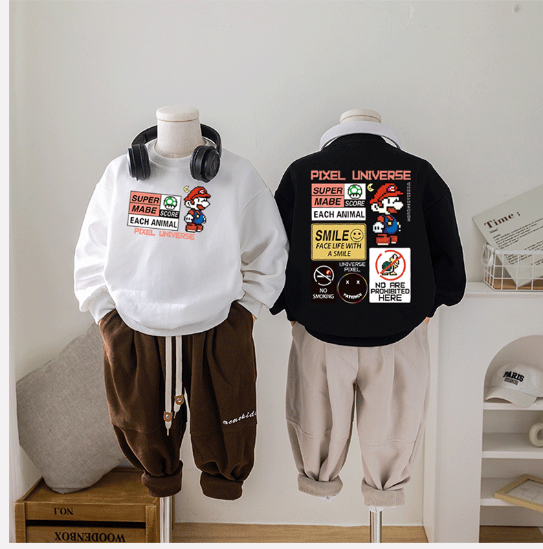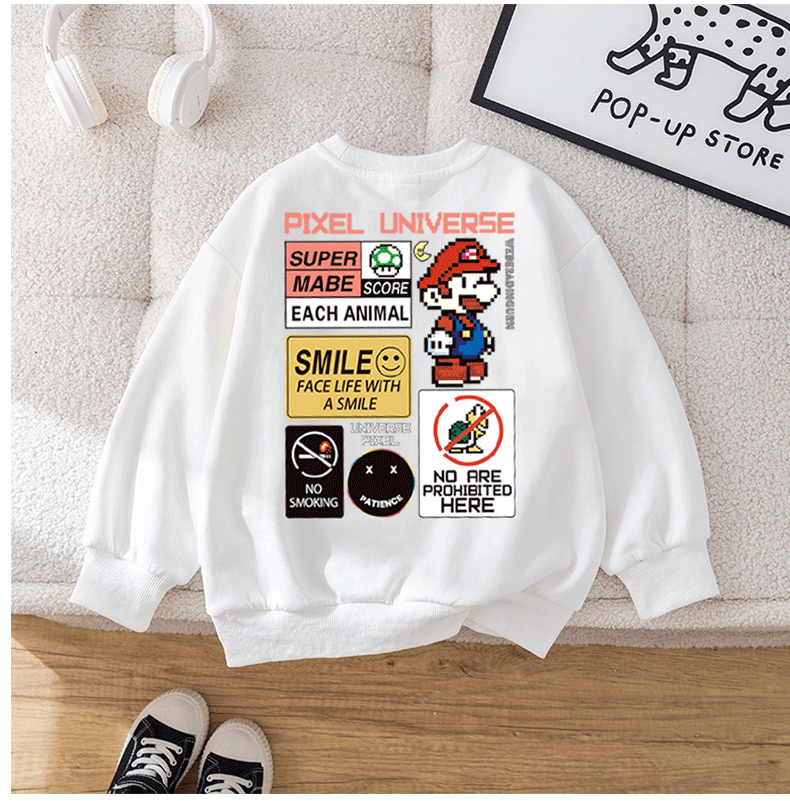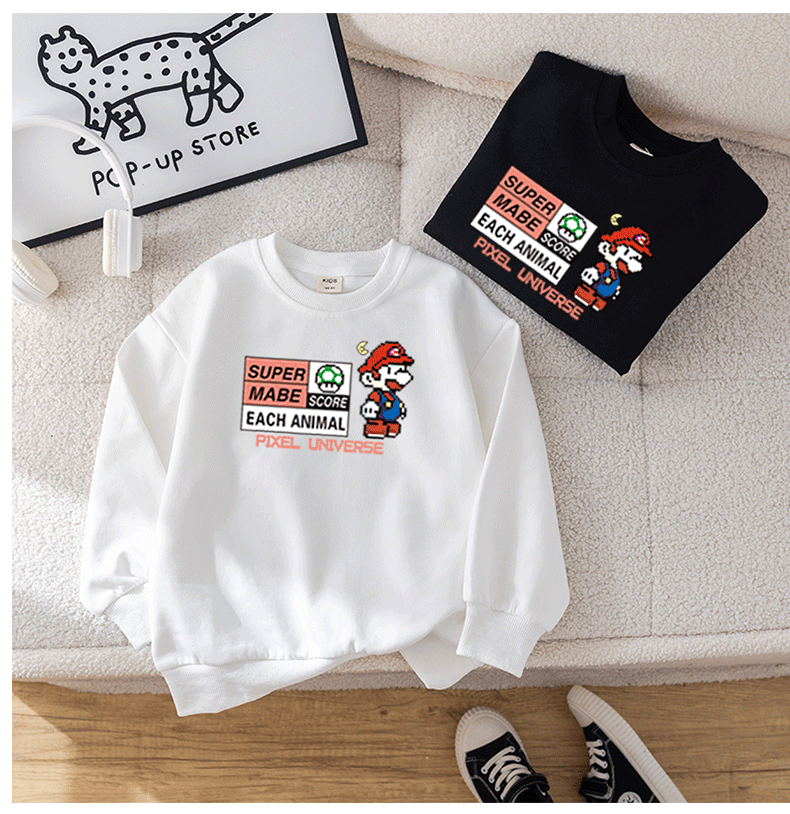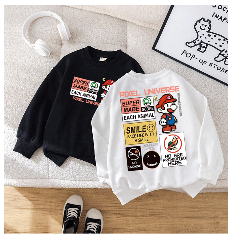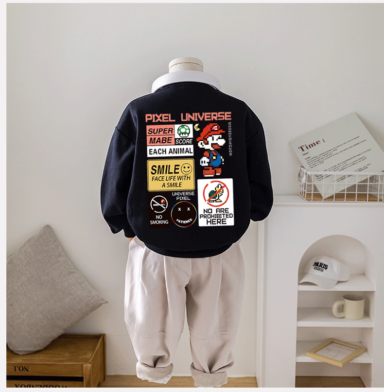 Chao Brand Boys' Sweatshirt Super Mario Spring and Autumn New Cartoon Big Children's Butch Handsome Jacket Factory Wholesale