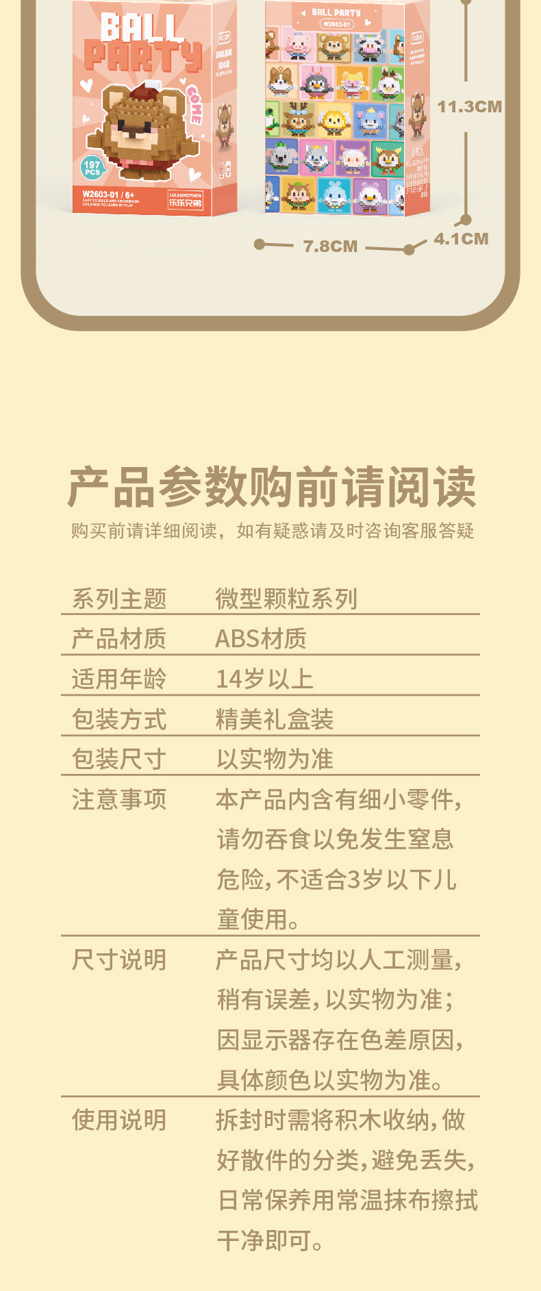 | Color | Vv2603-03 little monkey/199pcs [color box] | Color | Vv2603-04 cow/209pcs [color box] |