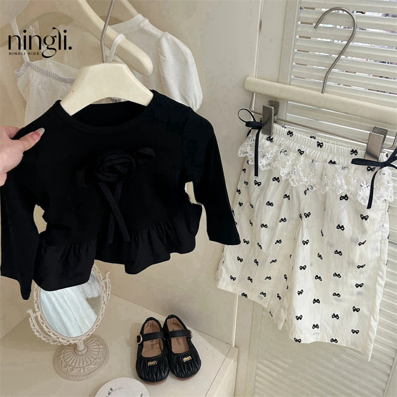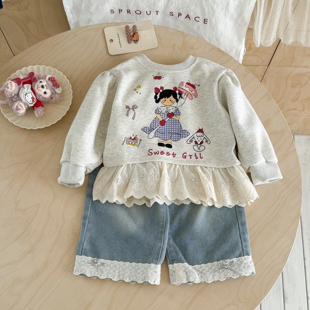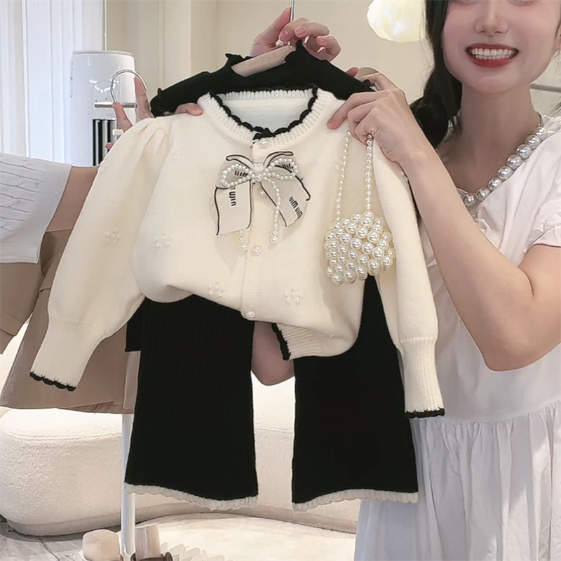 Lime Girl's Spring suit Autumn Korean Style Baby Girl's Chanel Style Sweater Jacket Loose Flared Pants Two-piece Set