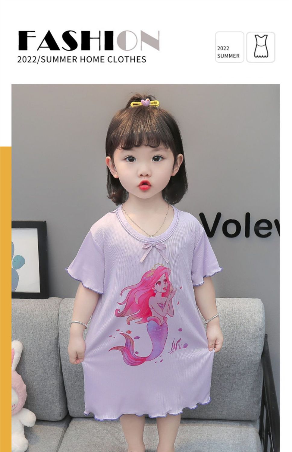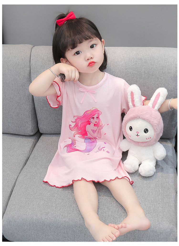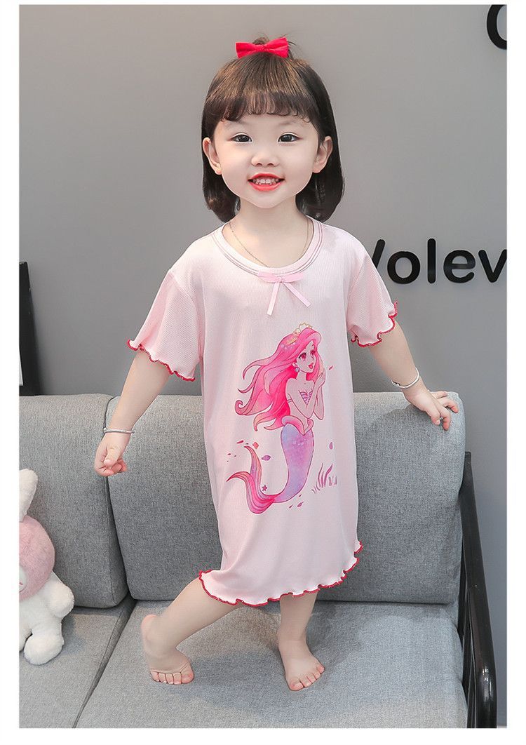 Women's Junior Nightdress Children's Pajamas Summer Thin Cool Girls Mermaid Princess Skirt Ice Silk Home Clothes