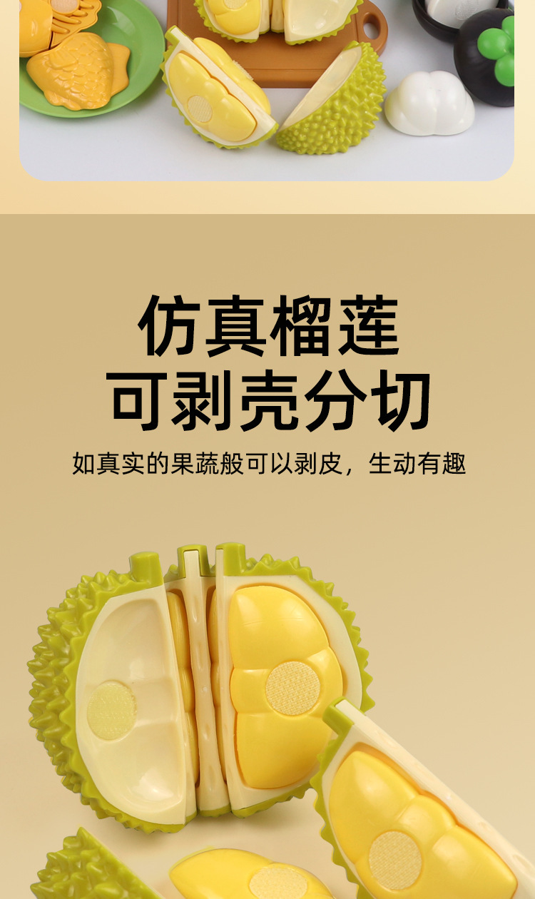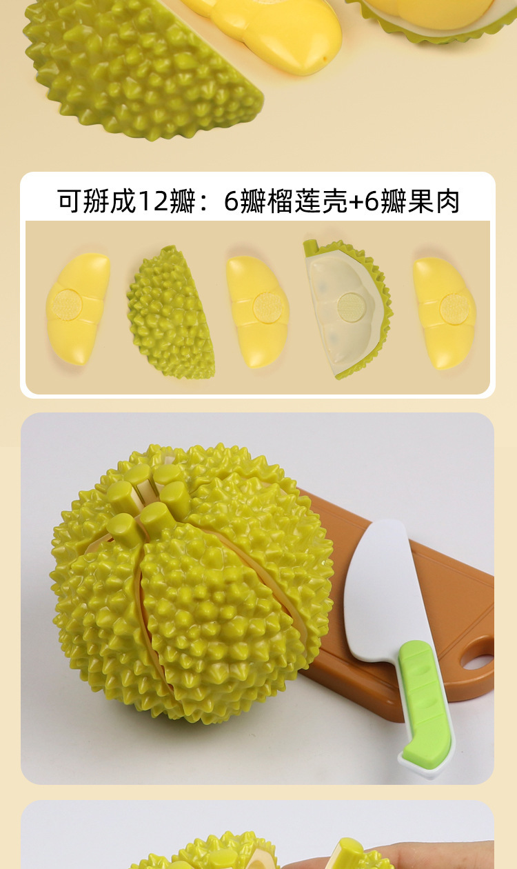 High-grade Peelable Children's Fruit Chicing Toy Simulation Durian Vegetable Kitchen Peelable Play Toy
