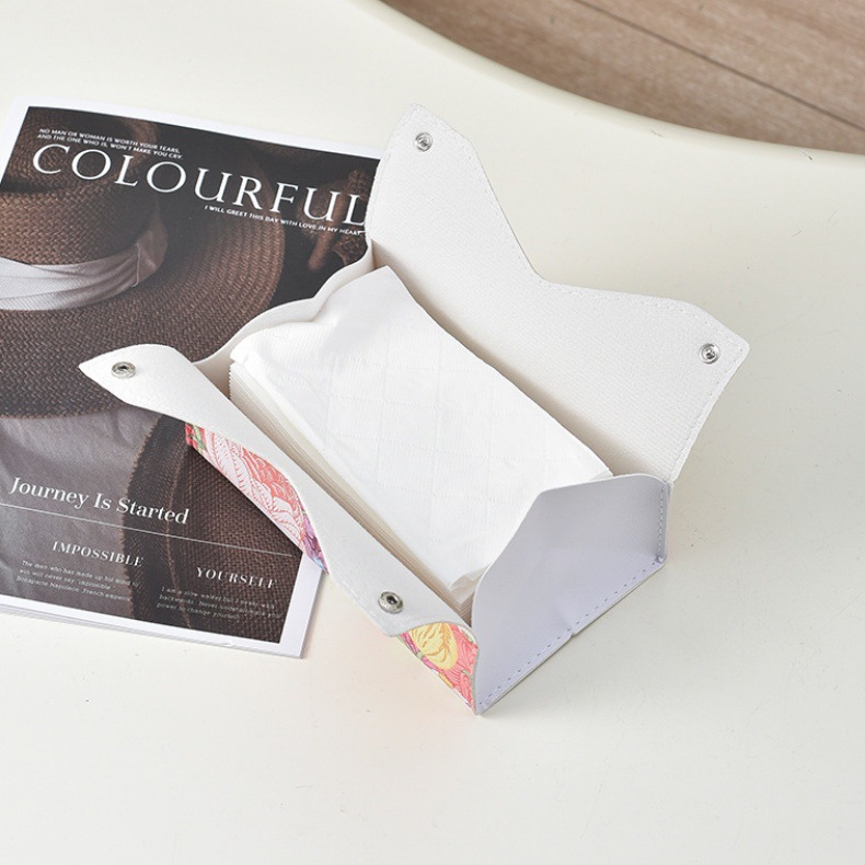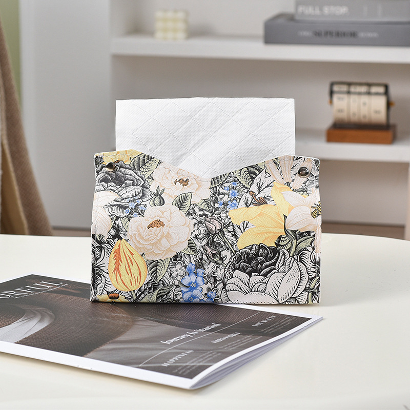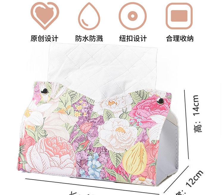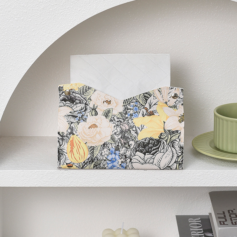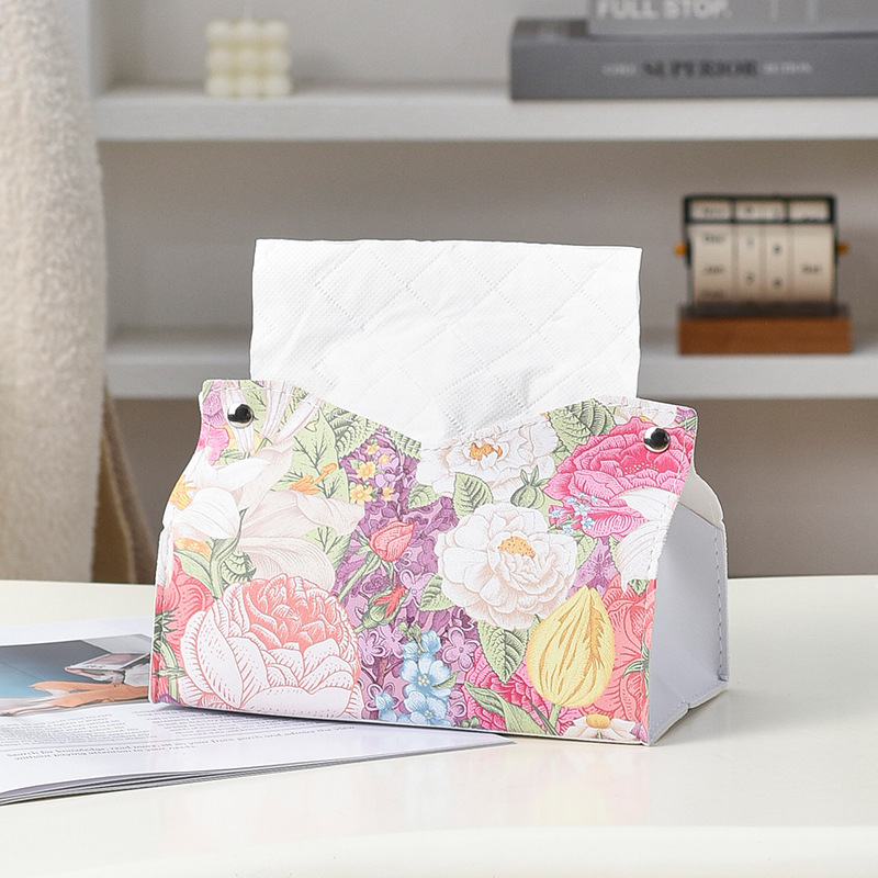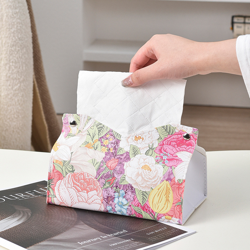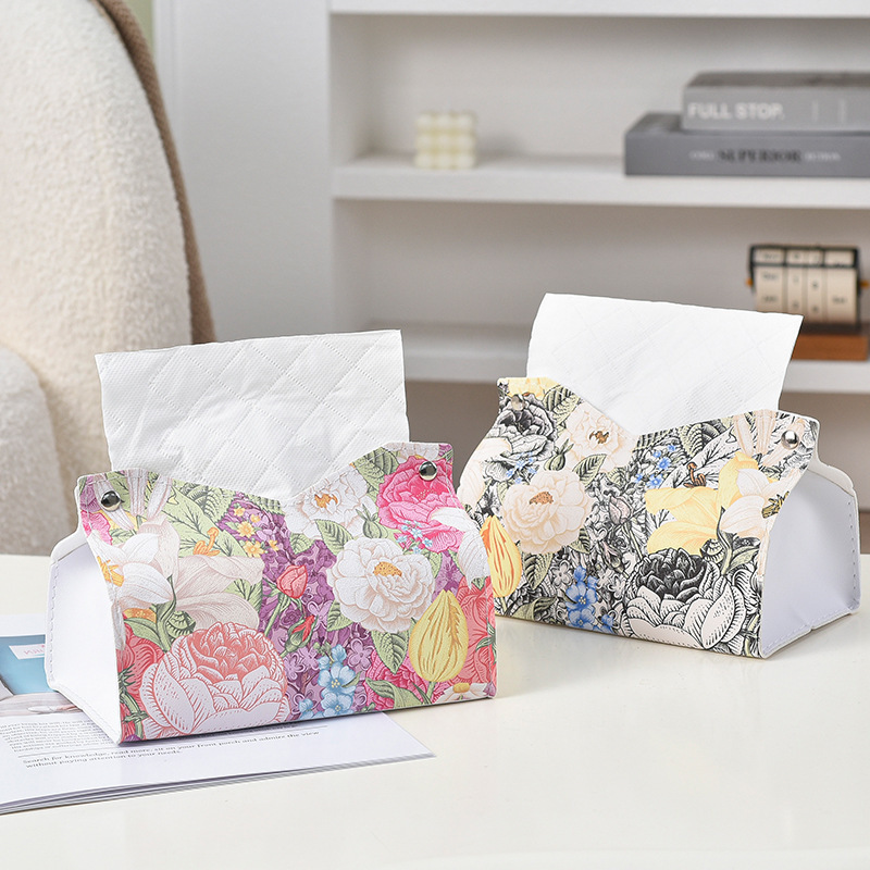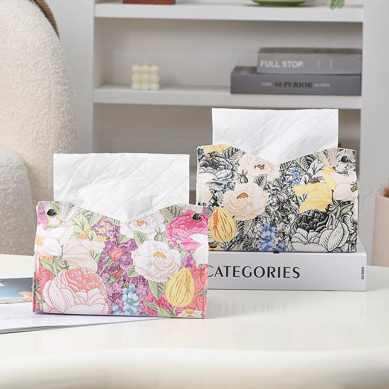 New Ins Oil Painting Flower Leather Tissue Box Living Room Paper Box Household Hotel Creative Paper Napkin Storage