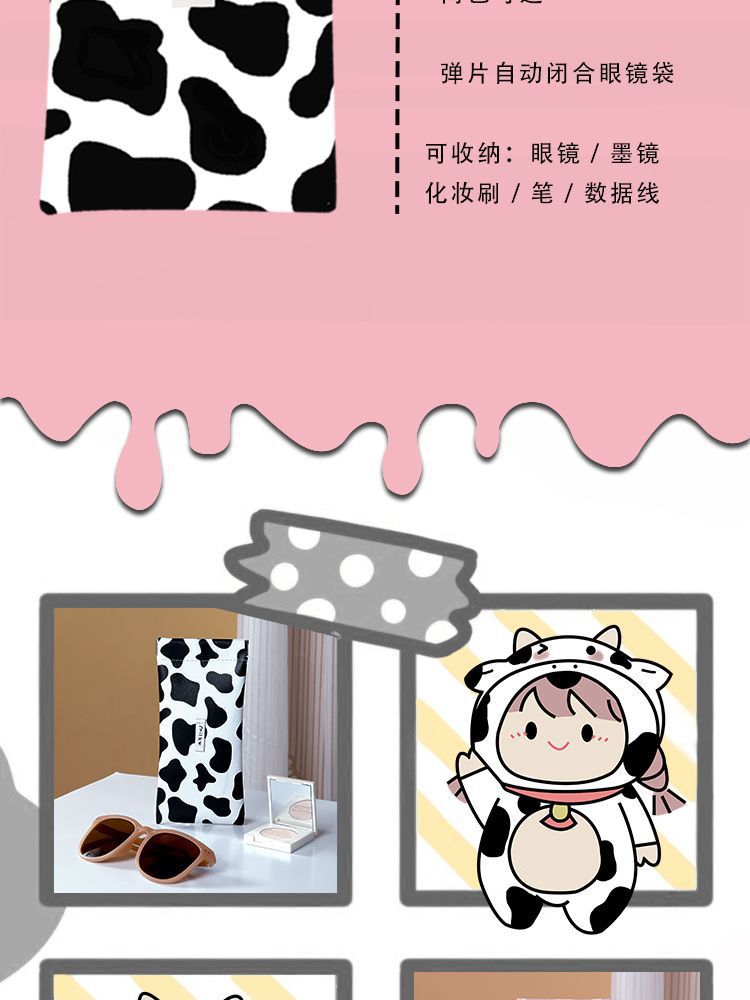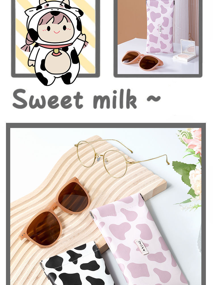 Glasses Bag Sunglasses Sunglasses Women's Portable Storage Set Cute Cartoon Cow Cute Style Fresh Style Portable Glasses Case
