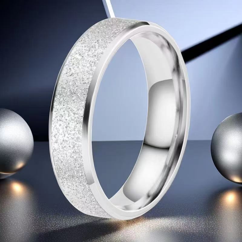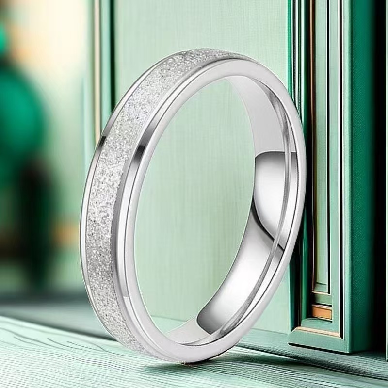 2MM frosted titanium steel ring fashion European and American light luxury stainless steel ring cross-border fashion jewelry does not fade