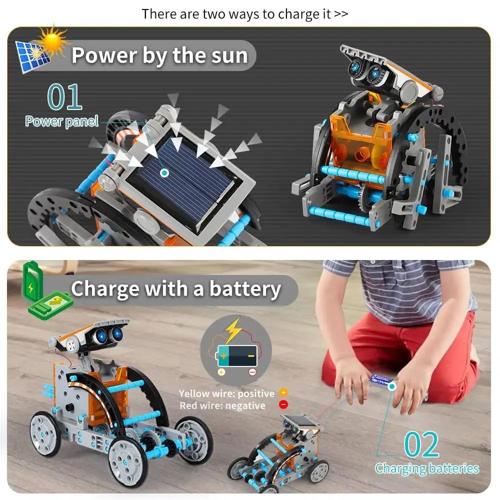- 12-in-1 Versatility : This solar robot model offers 12-in-1 versatility, allowing for endless exploration and learning opportunities.