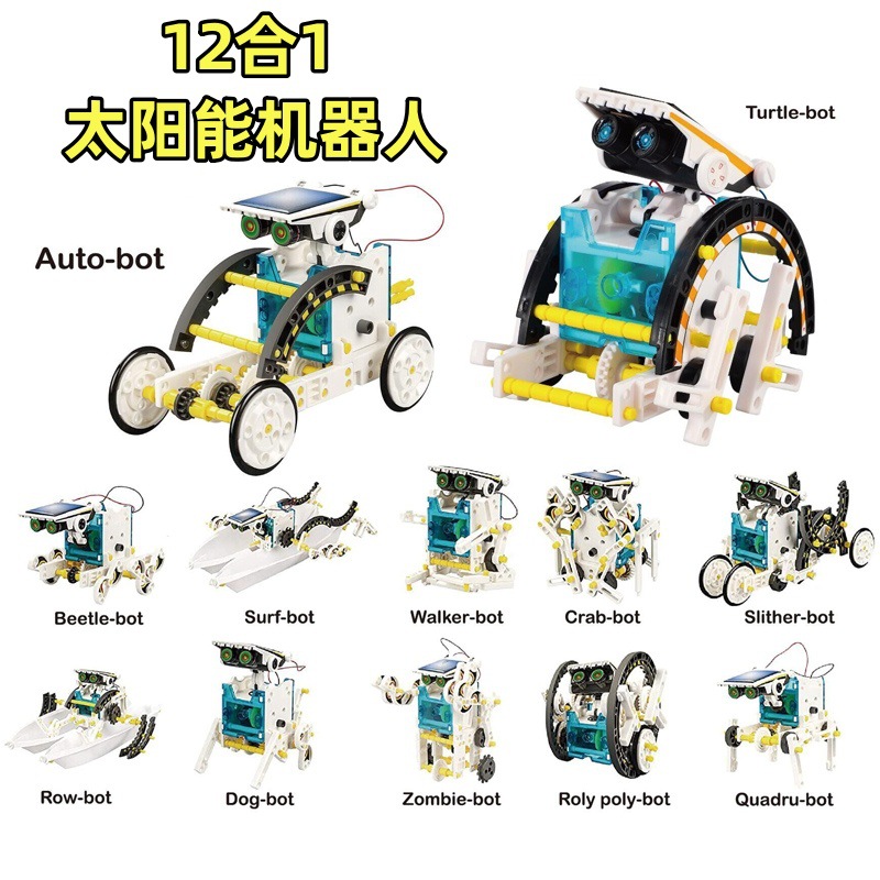 Cross-border scientific experiment 12-in -1 solar robot lunar exploration fleet robot model assembled toy