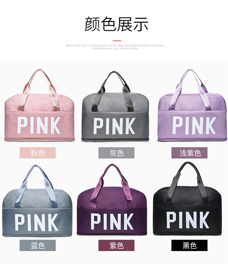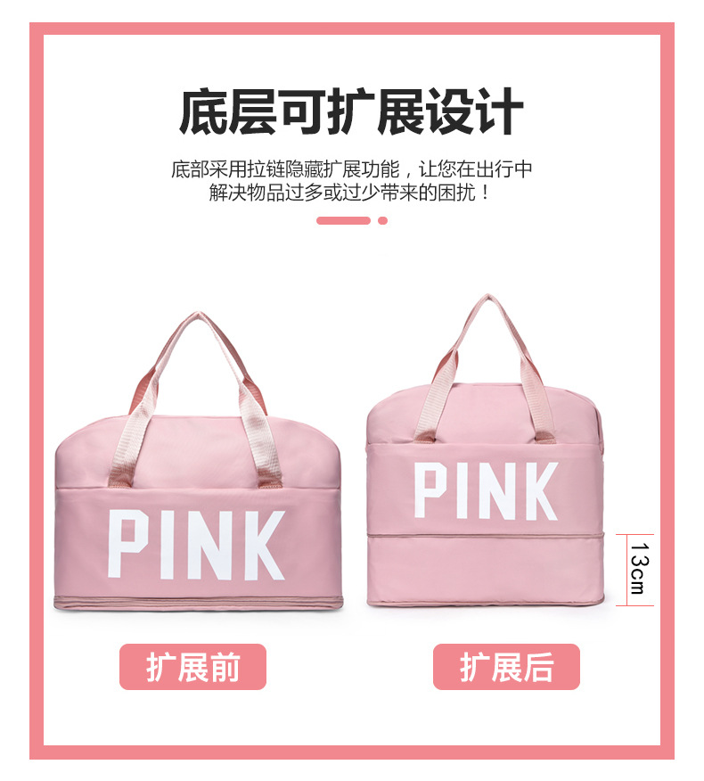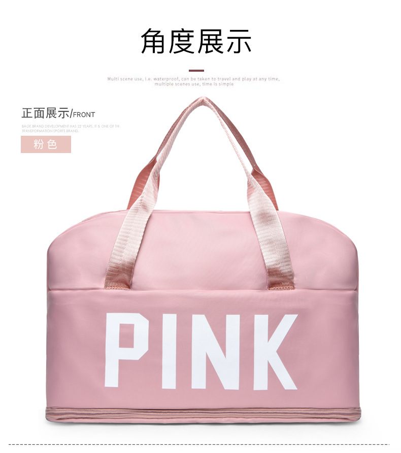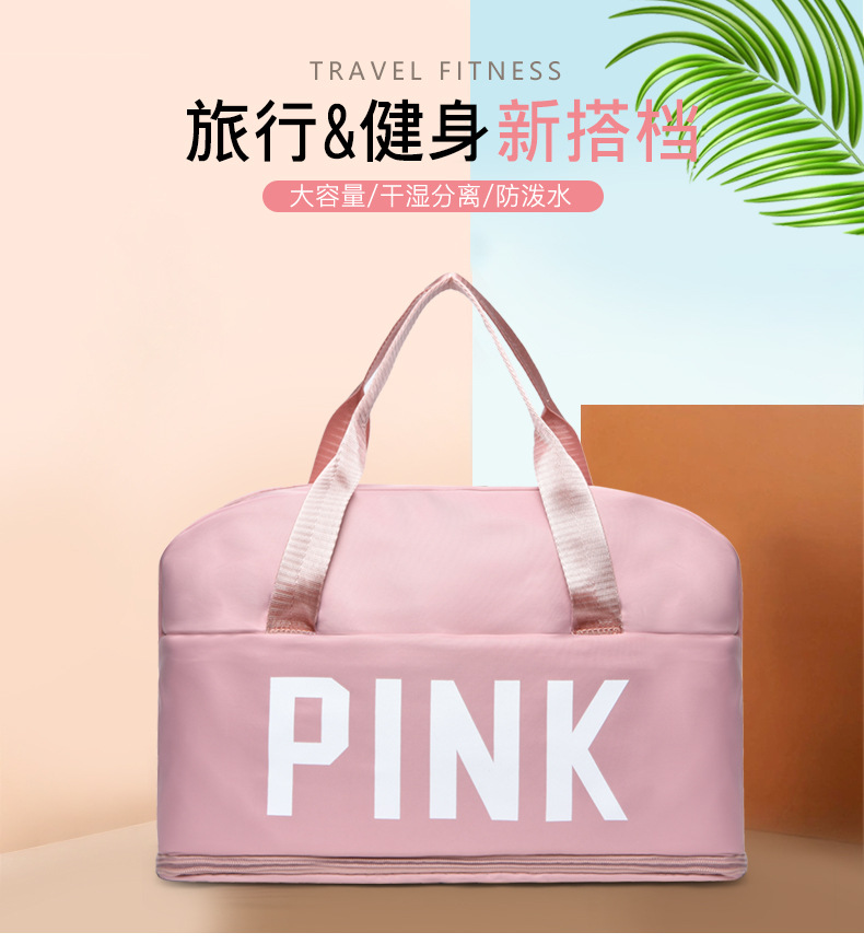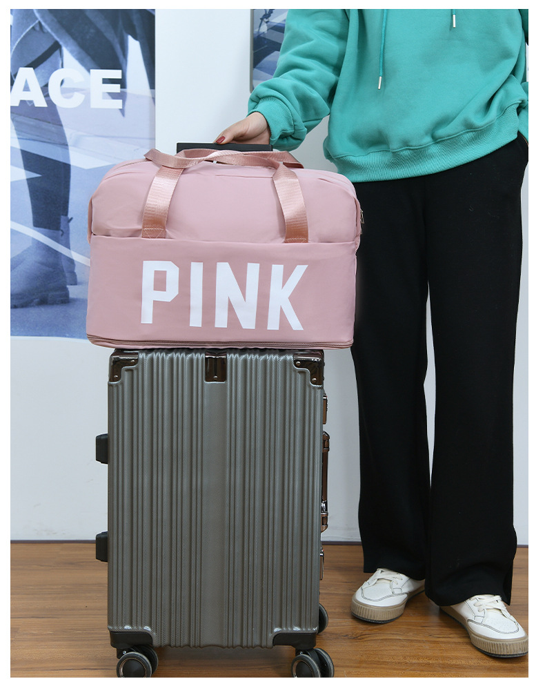 PINK Letters Travel Handbag Waterproof Tote Bag Travel Large Capacity Multifunctional Duffel Bag External Travel Accessories
